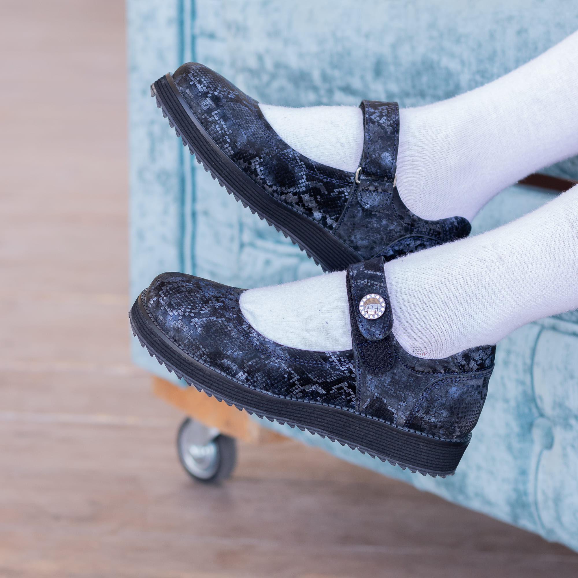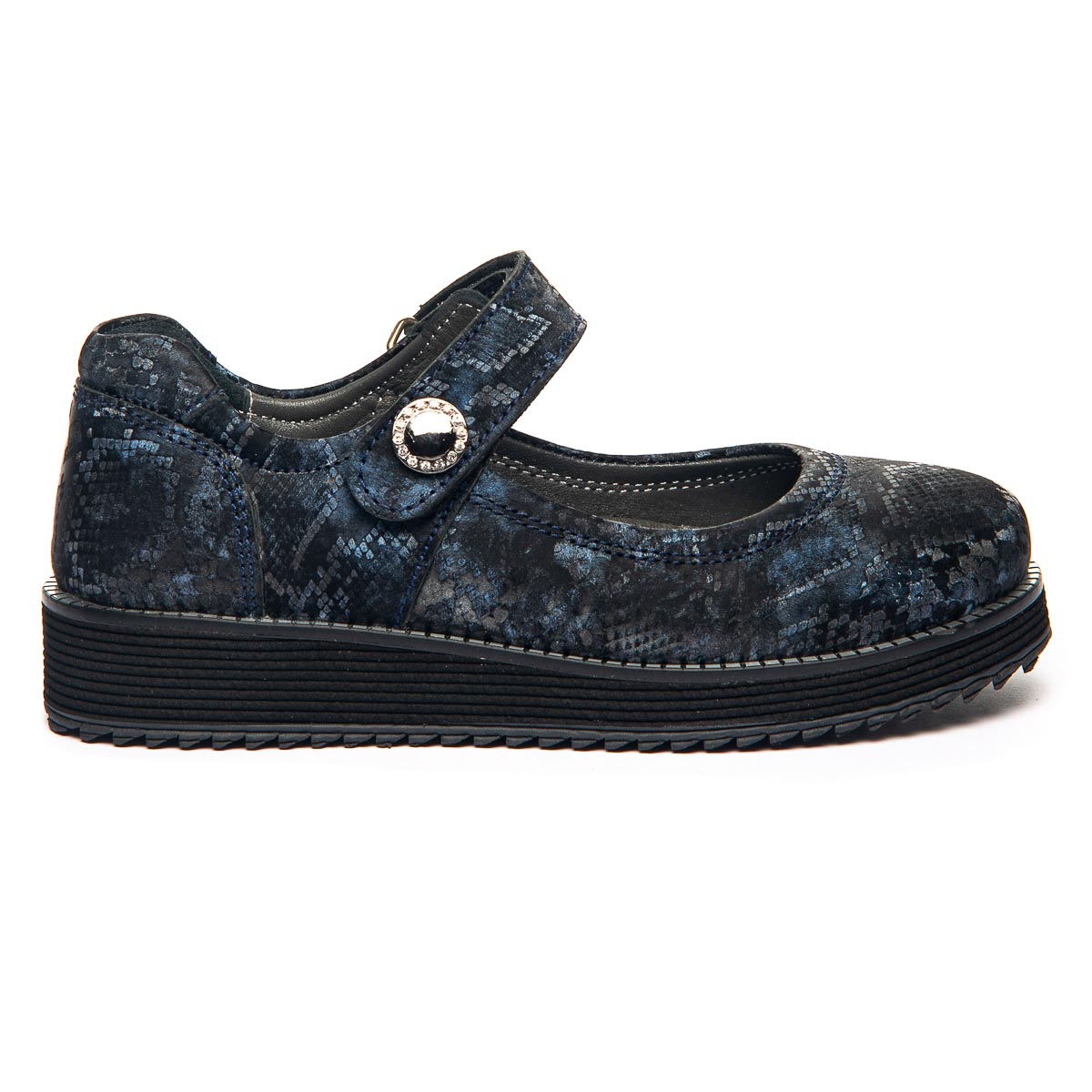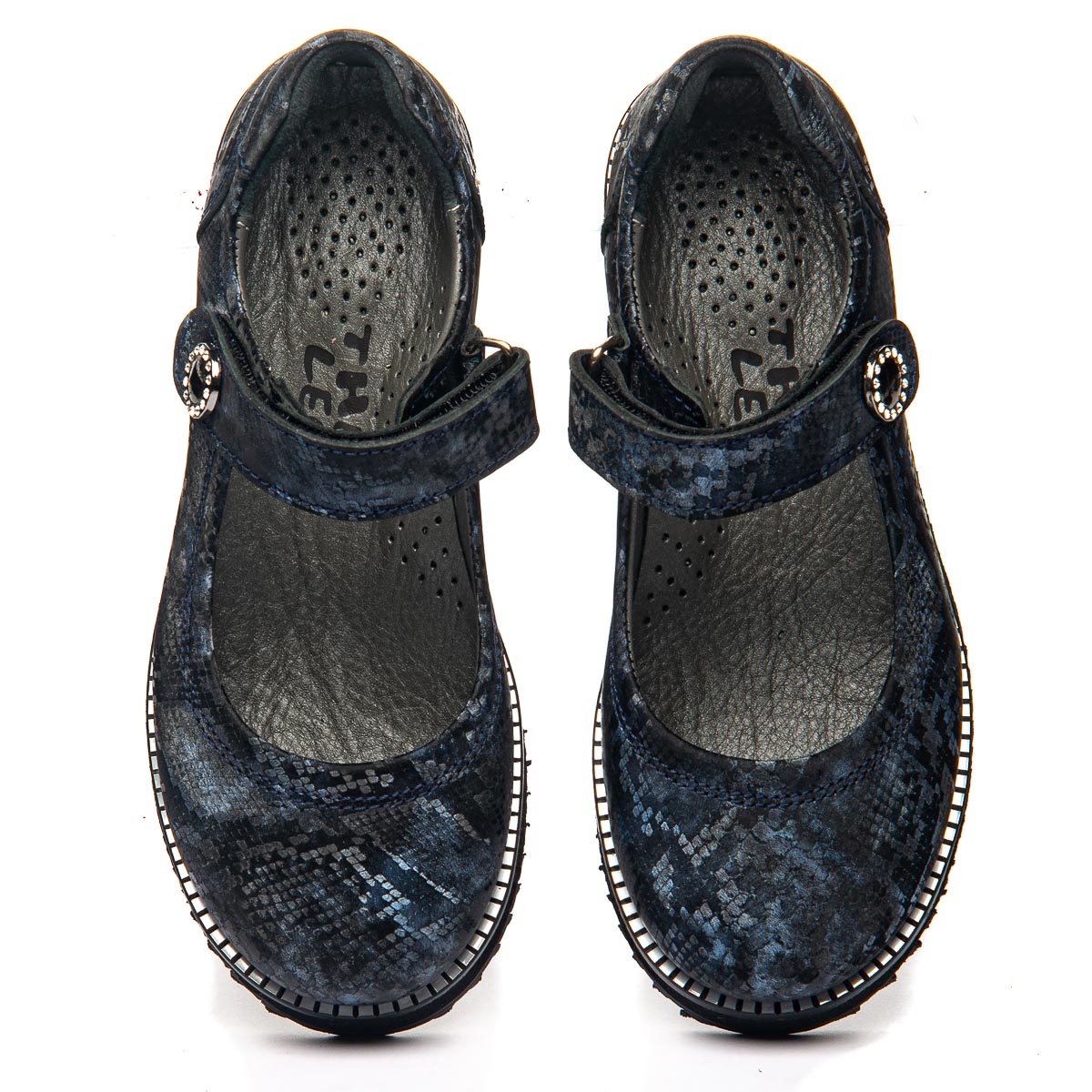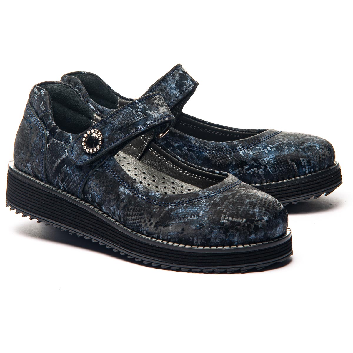 Эти кожаные туфли украшены чрезвычайно элегантным рисунком, вдохновленным голубым мрамором. Легкая EVA подошва обеспечивает отличную амортизацию, а анатомическая стелька снижает нагрузку на стопу, делая каждый шаг комфортным. Изысканный рисунок на обуви делает эти туфли изящным произведением, которым может похвастаться не каждая девочка.