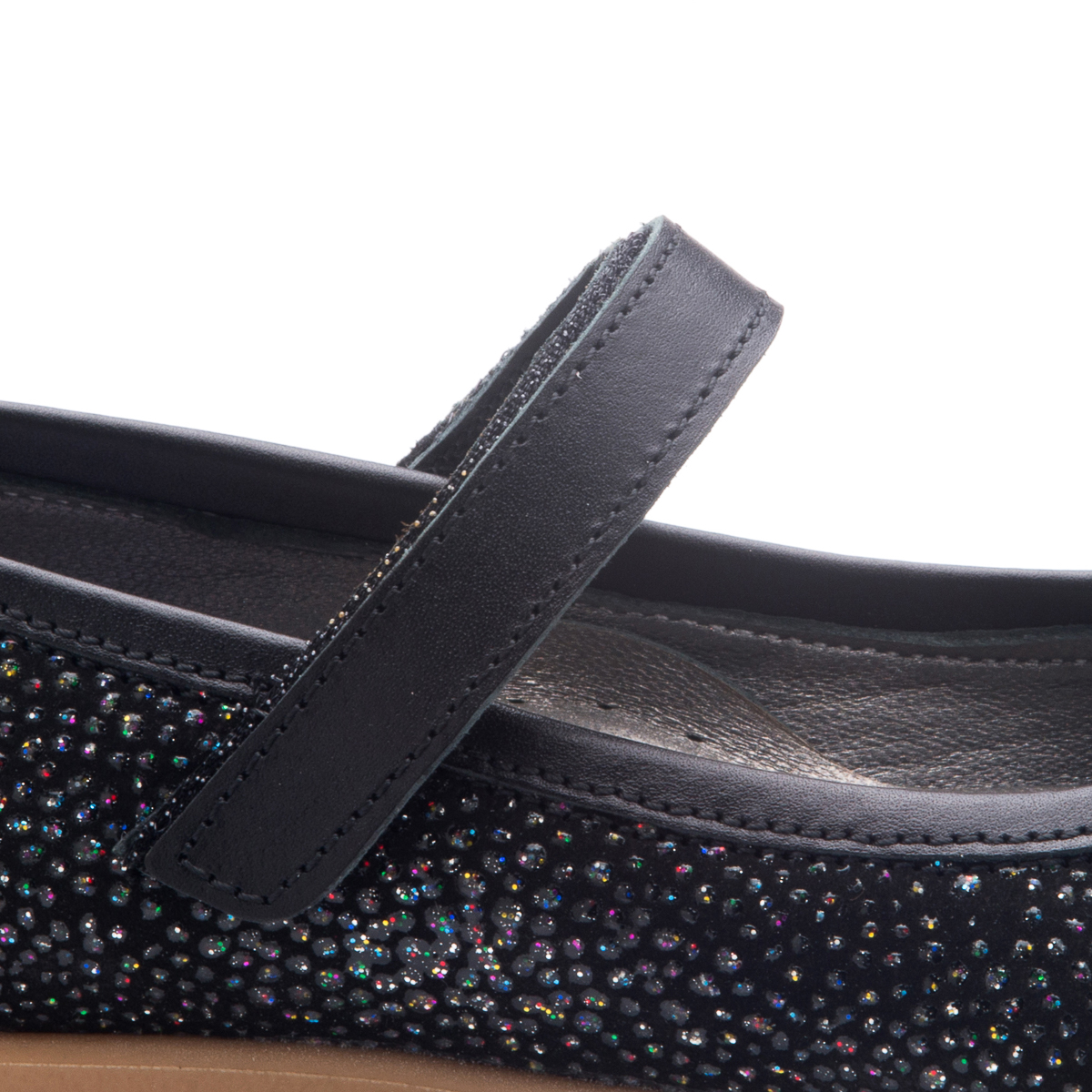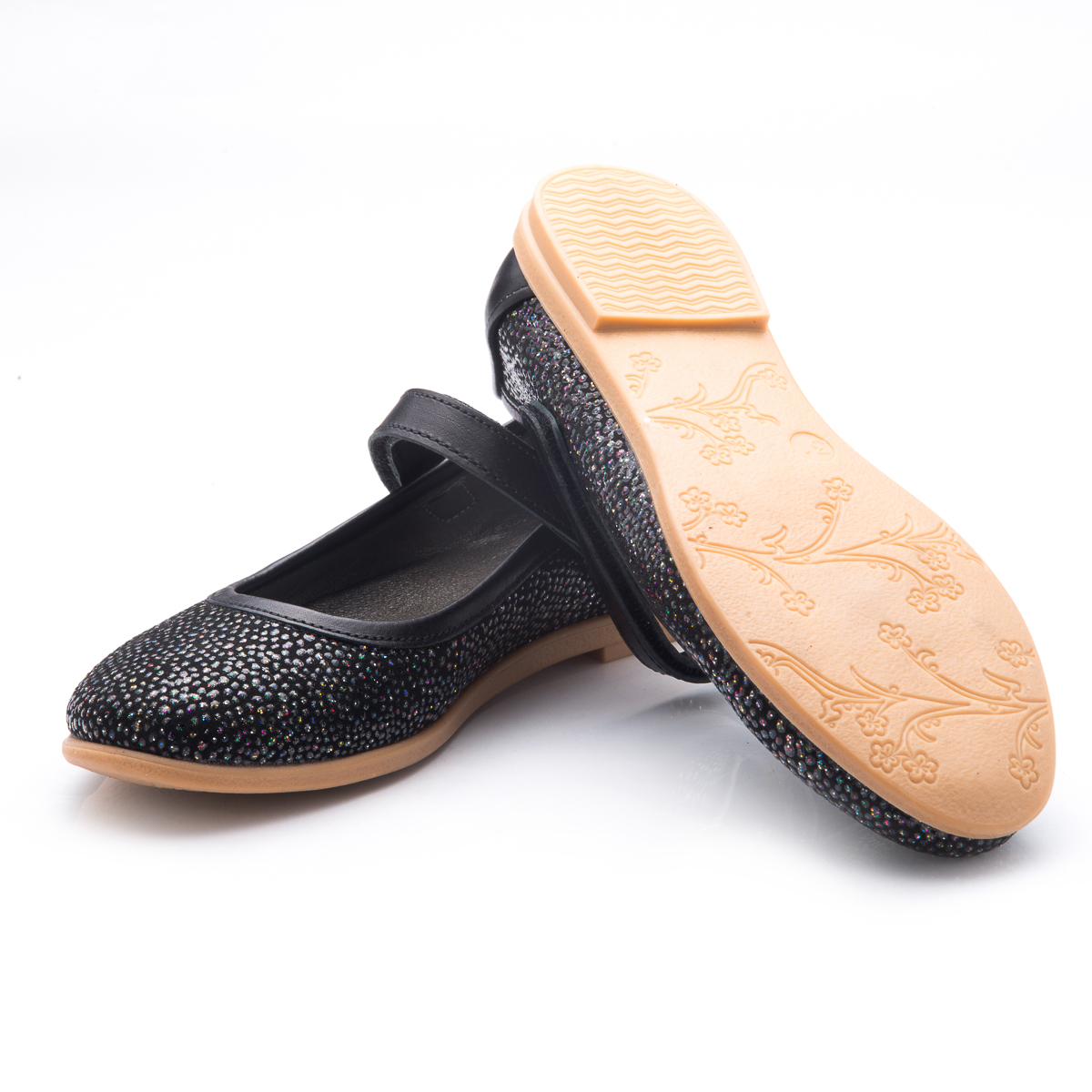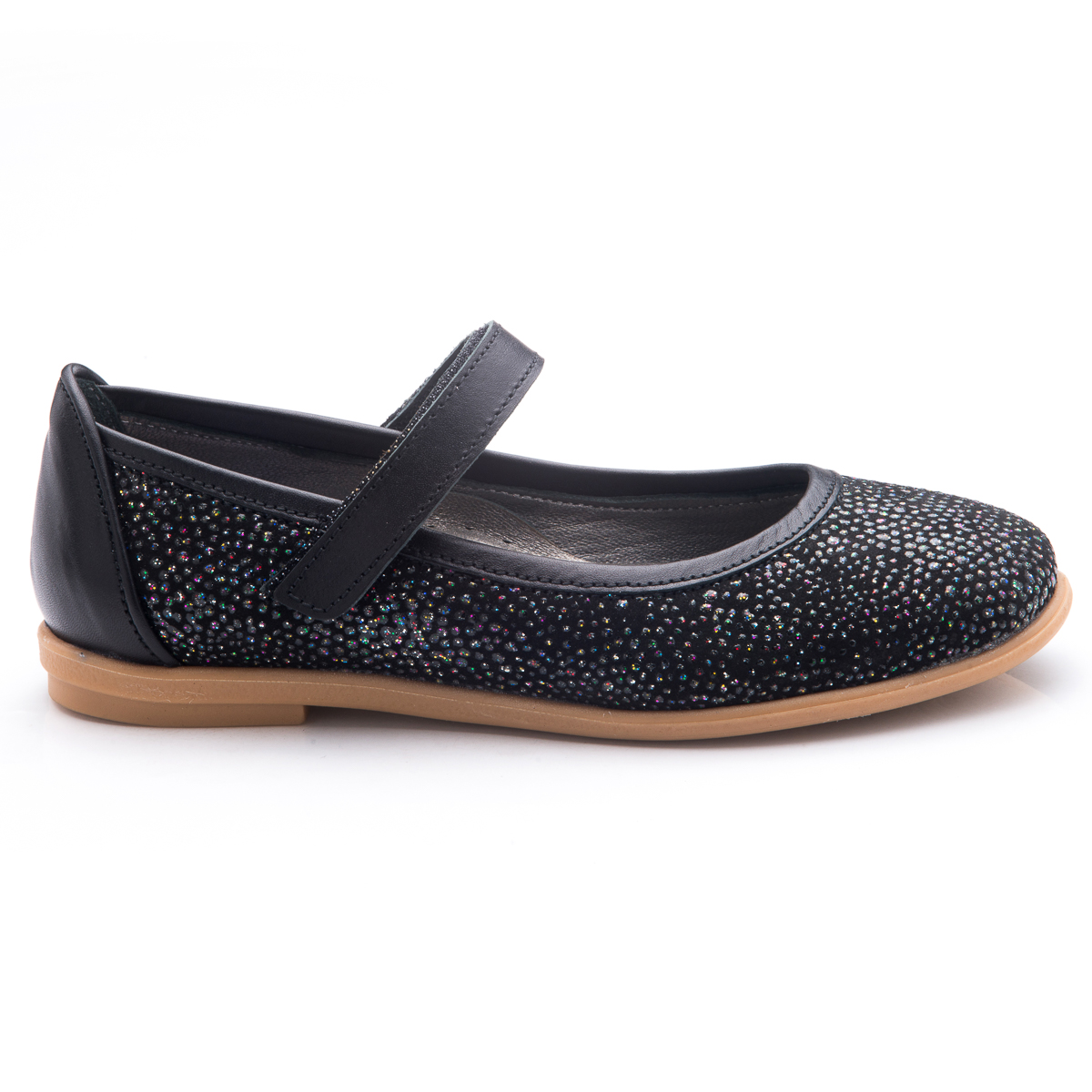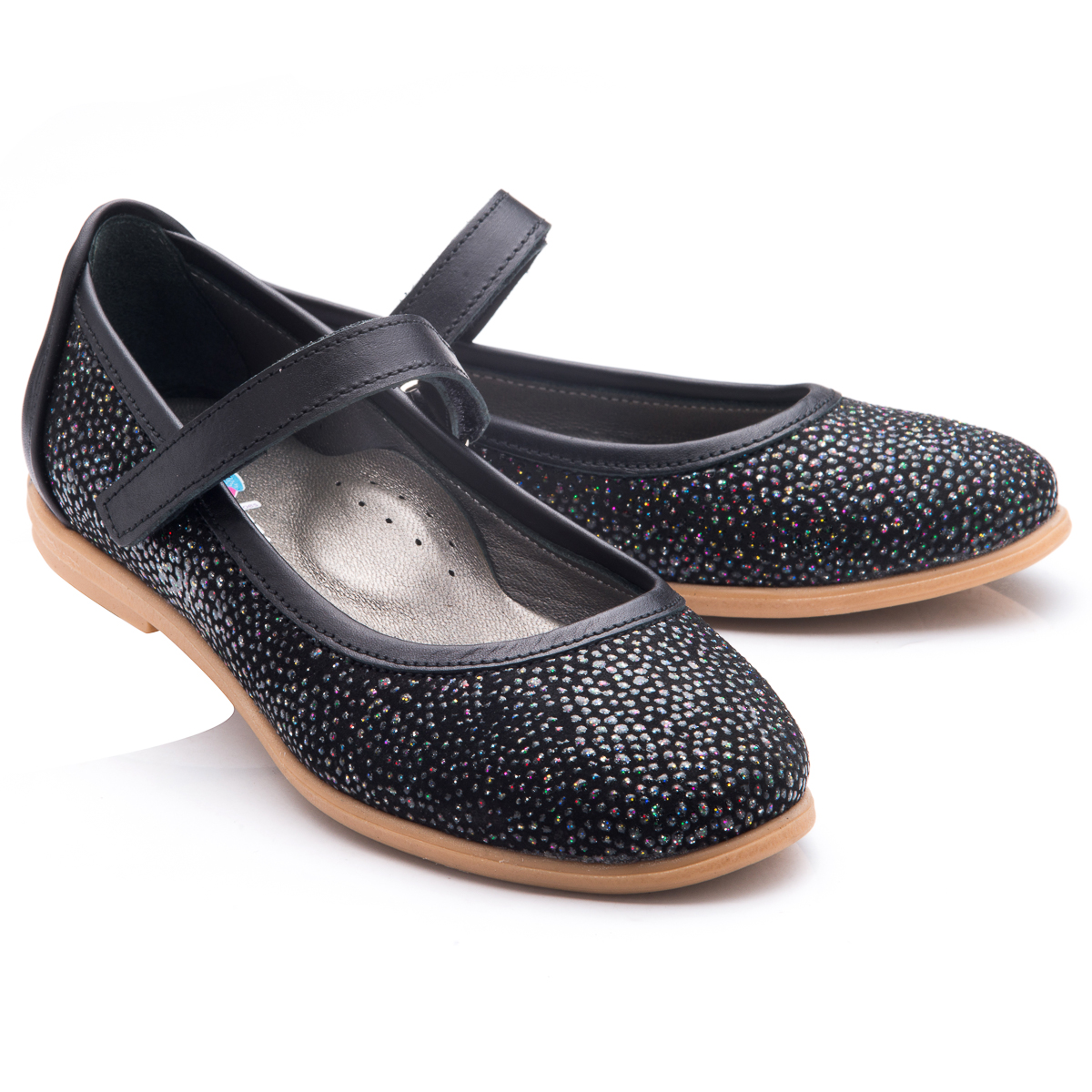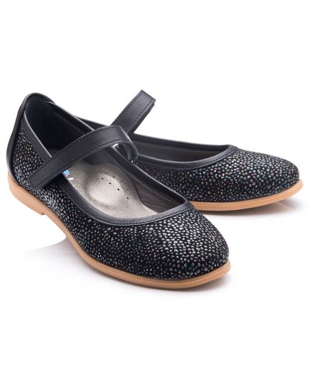 Школьные туфли для девочки -  они невероятно удобны и практичны. Изготовленыиз натурального черного нубука и украшены разноцветными камушками. А вот пяточка,застежка и каемка по краю - из натуральной кожи черного цвета. Подкладка и стелька с анатомическим супинаторомпоможет стопе правильно расти и развиваться. Подошва - выполнена изтермопластичной резины не скользит и хорошо амортизирует. Такойвариант школьной обуви непременно придется по душе юной моднице.