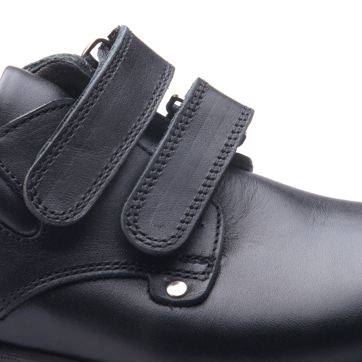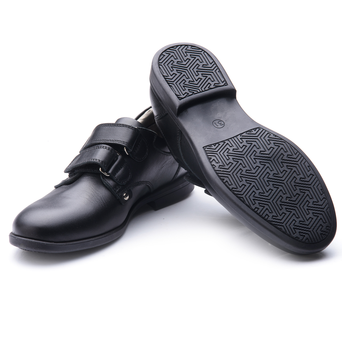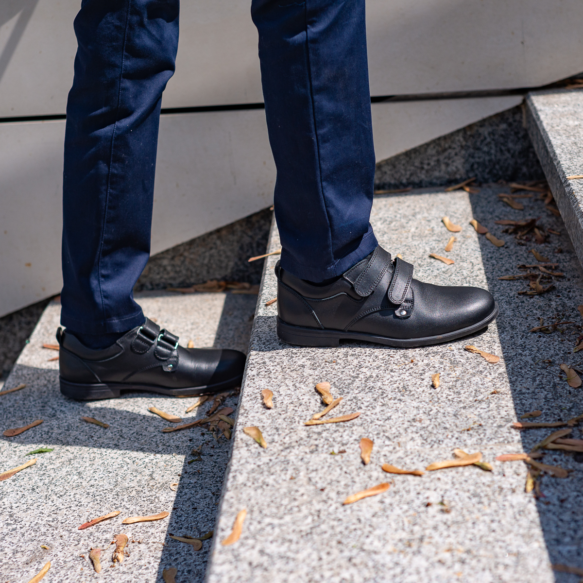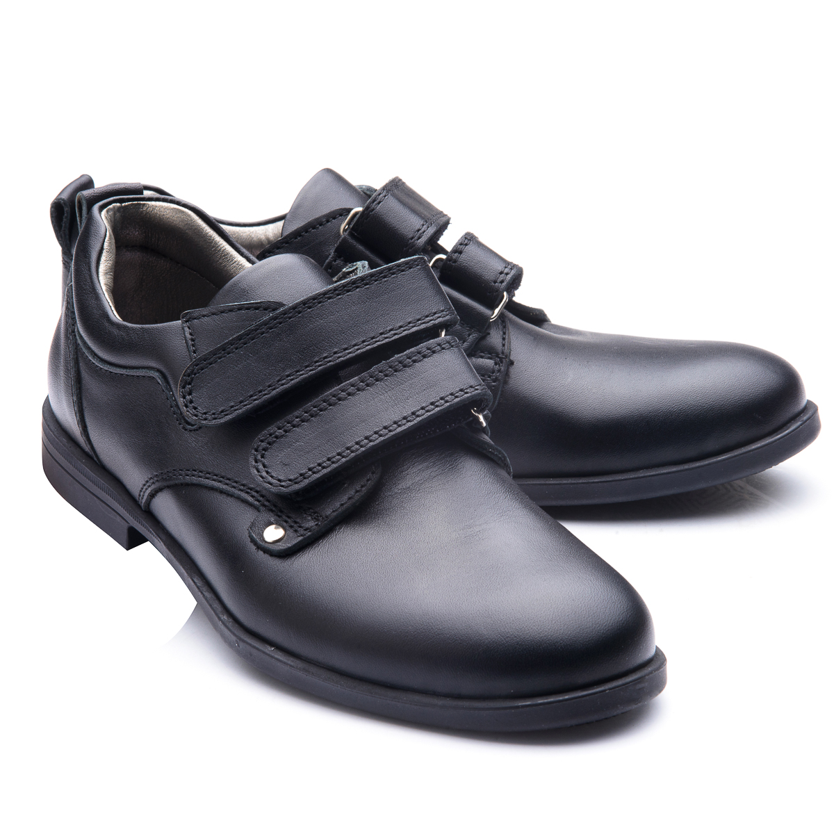Классика,проверенная временем… Школьные туфли для мальчика выполнены из натуральной кожичерного цвета. Для хорошей фиксации и удобного ношения снабжены двумялипучками. Подкладка и стелька с анатомическим супинатором – натуральная кожа.Подошва из термопластичной резины – не скользит, амортизирует и достаточноизносостойкая, что очень важно при ежедневной носке в длительном периоде.Лаконичный дизайн, качественные материалы, удобная модель… Основныесоставляющие правильной обуви.