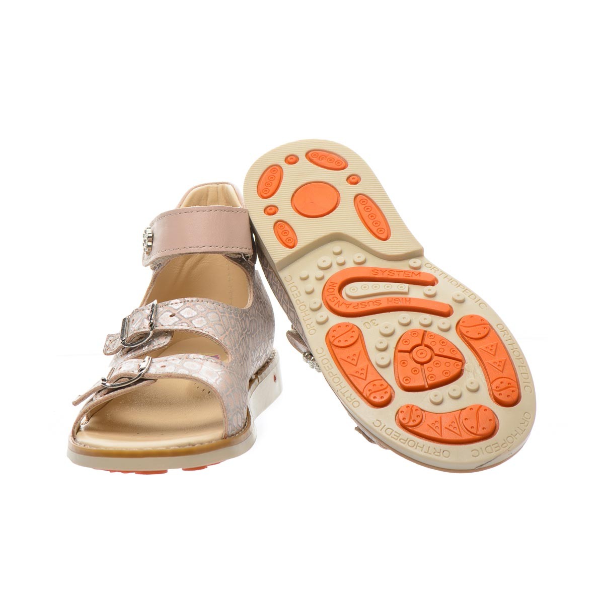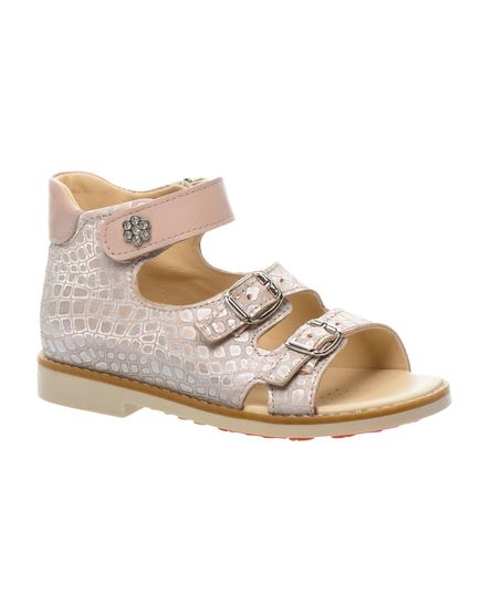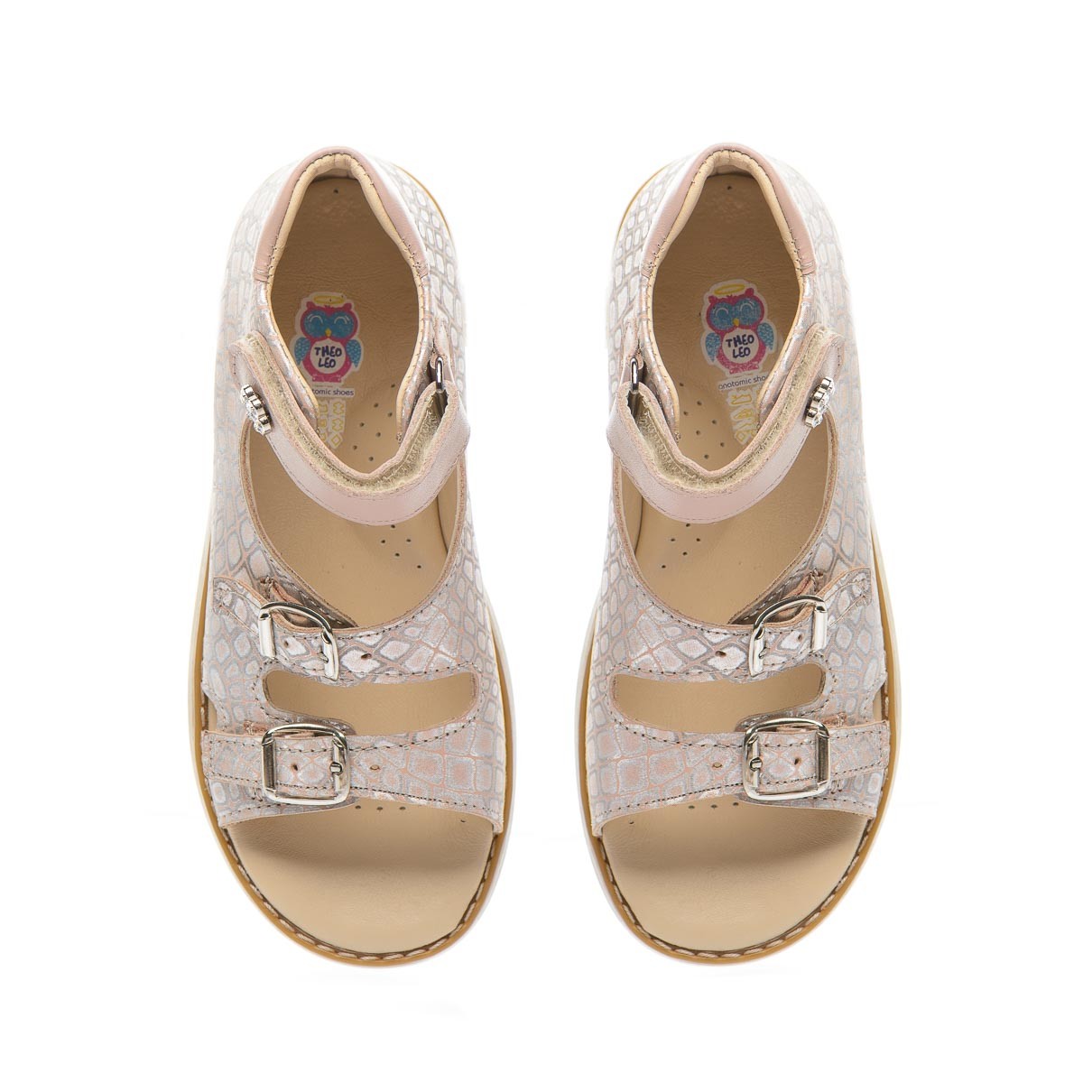 Босоніжки для дівчинки, які поєднують в собі незвичний принт, ортопедичні властивості та комфорт. Це взуття створене для того, щоб кожен крок вашої дитини був здоровим і стильним. Виготовлені з натуральної шкіри з оригінальним принтом. Взуття легко взувати та регулювати завдяки зручним застібкам і ремінцям. Для забезпечення правильного розвитку стопи, здоров'я ніг та максимального комфорту, взуття має: