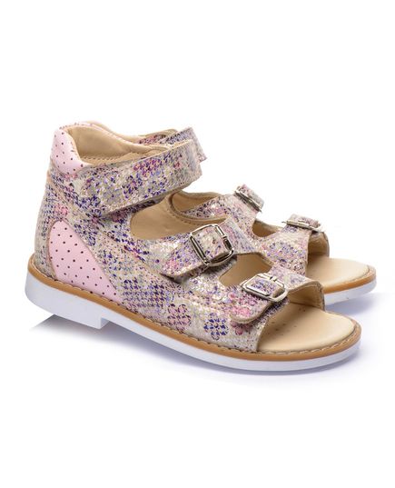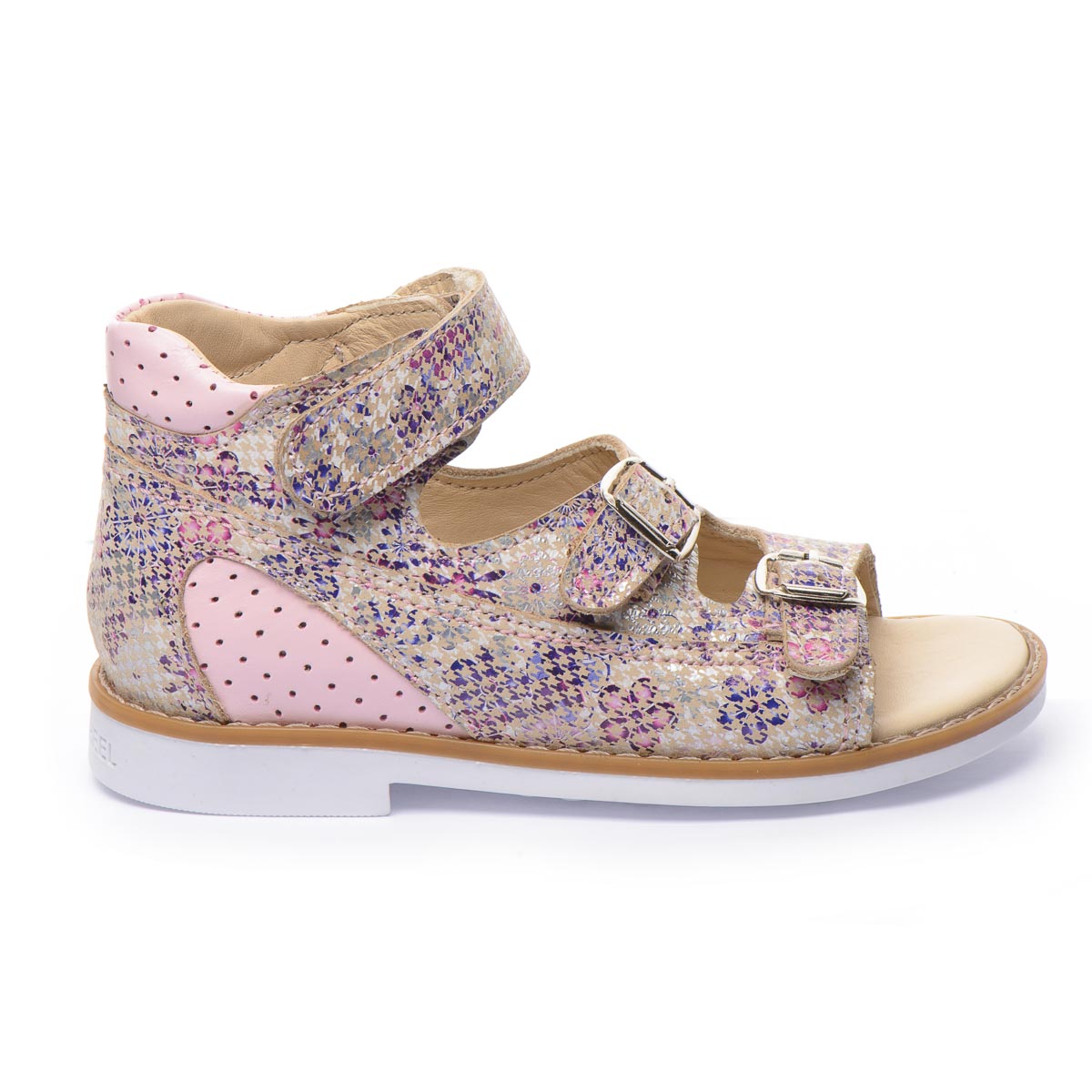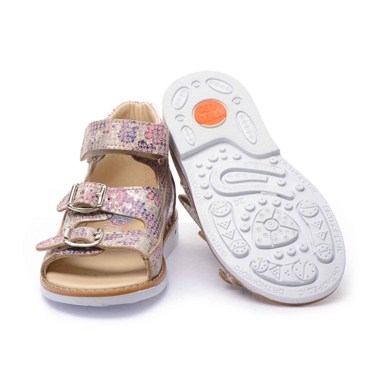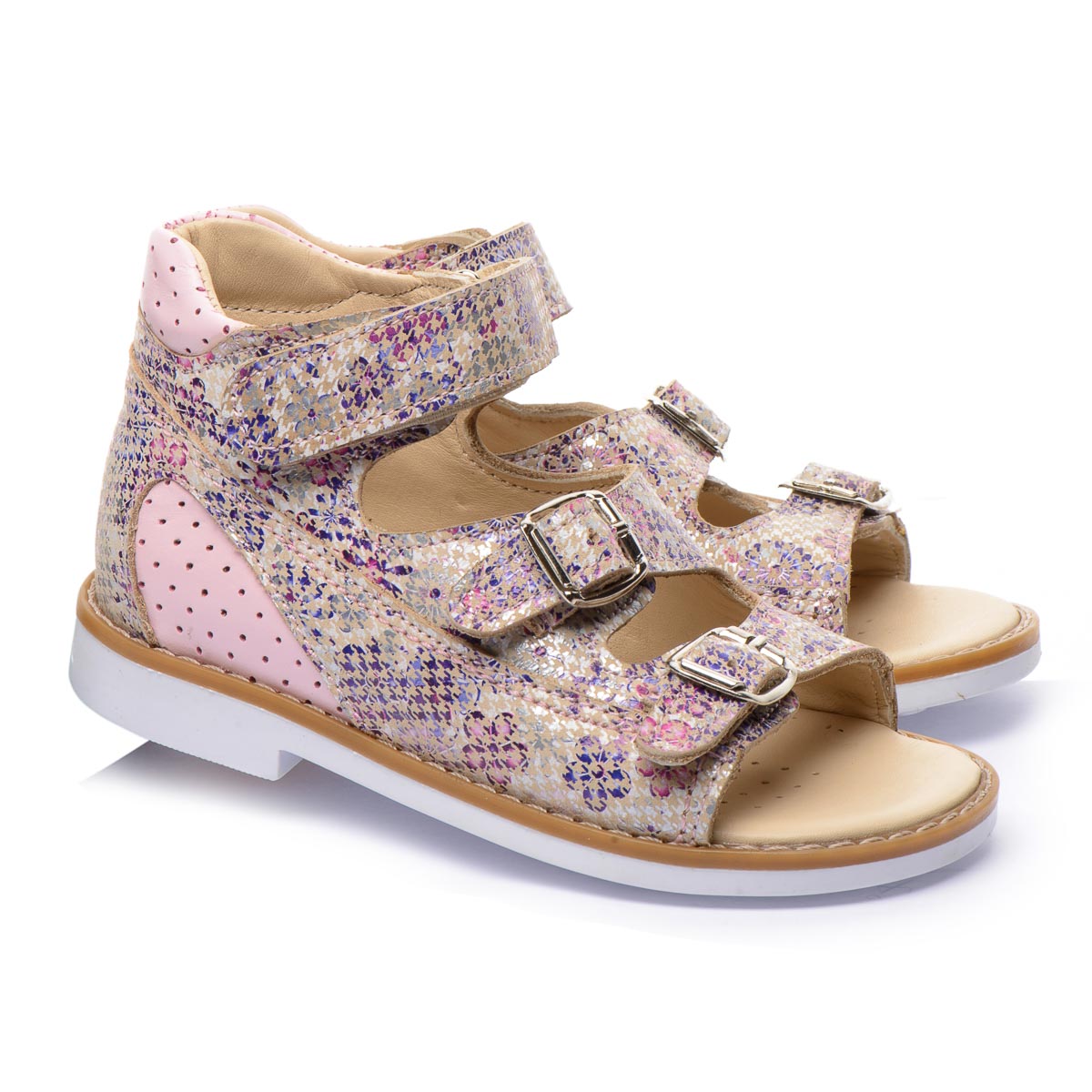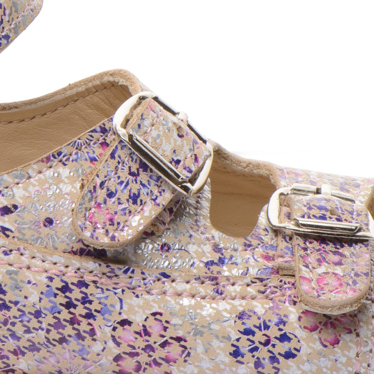 Босоніжки для перших кроків та для маленьких дівчат - з натуральної шкіри, прикрашені квітковим принтом. Взуття оснащено зручною застібкою на липучці і парою ремінців. Відрегульовані ремінці гарантують ідеальну посадку на нозі.