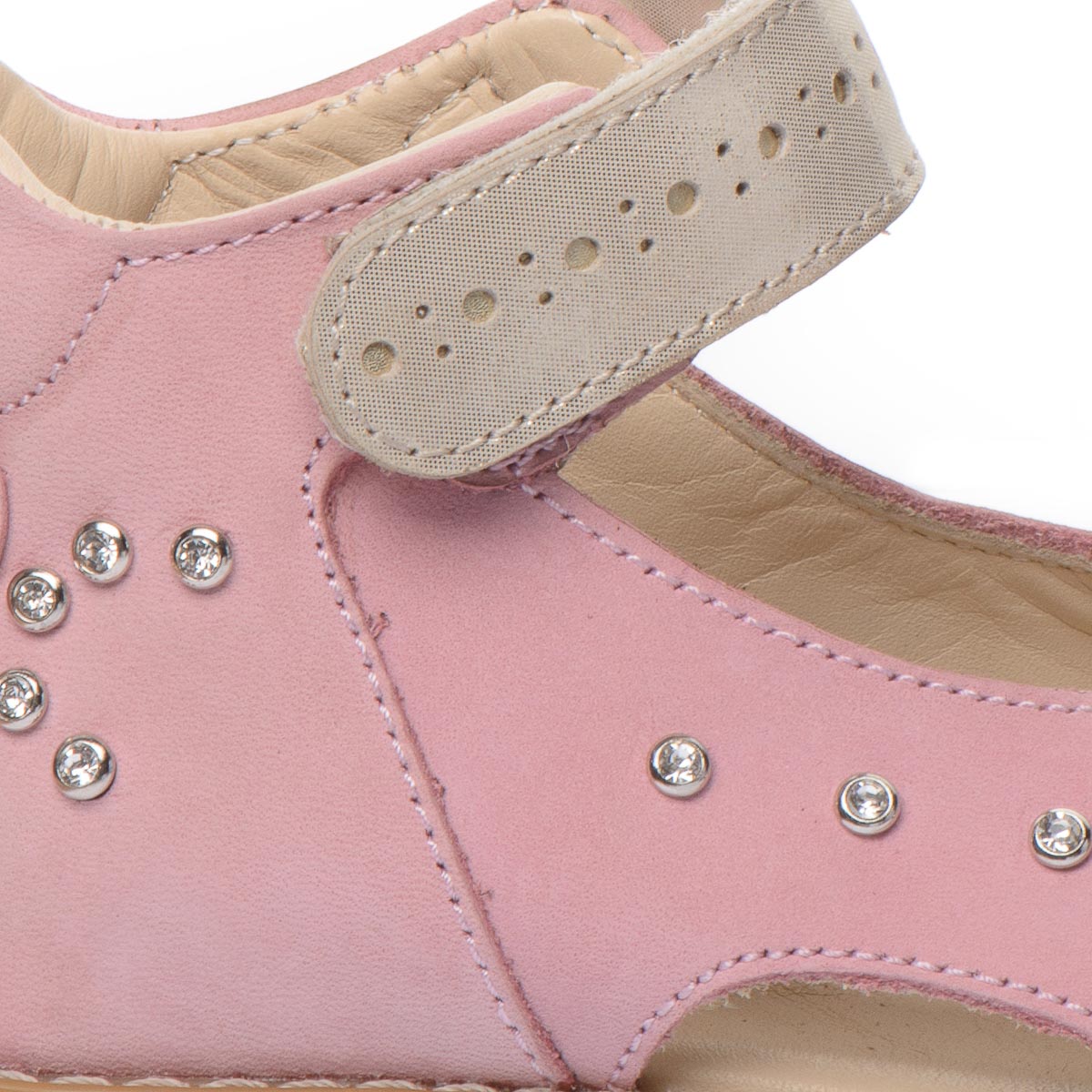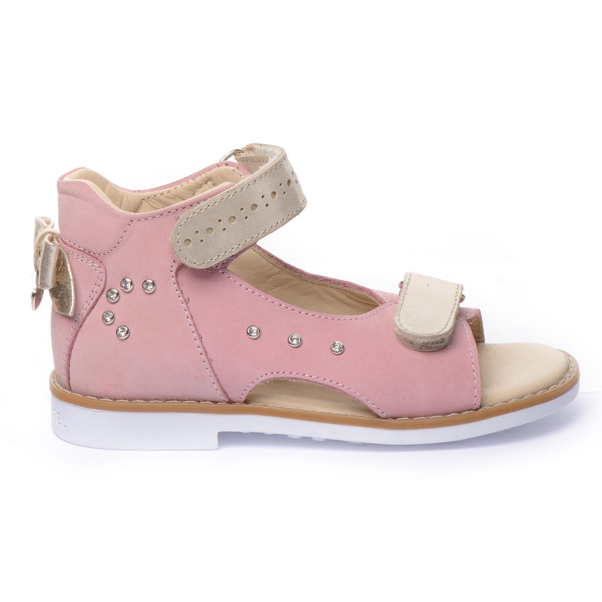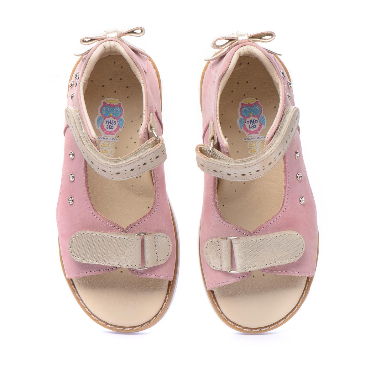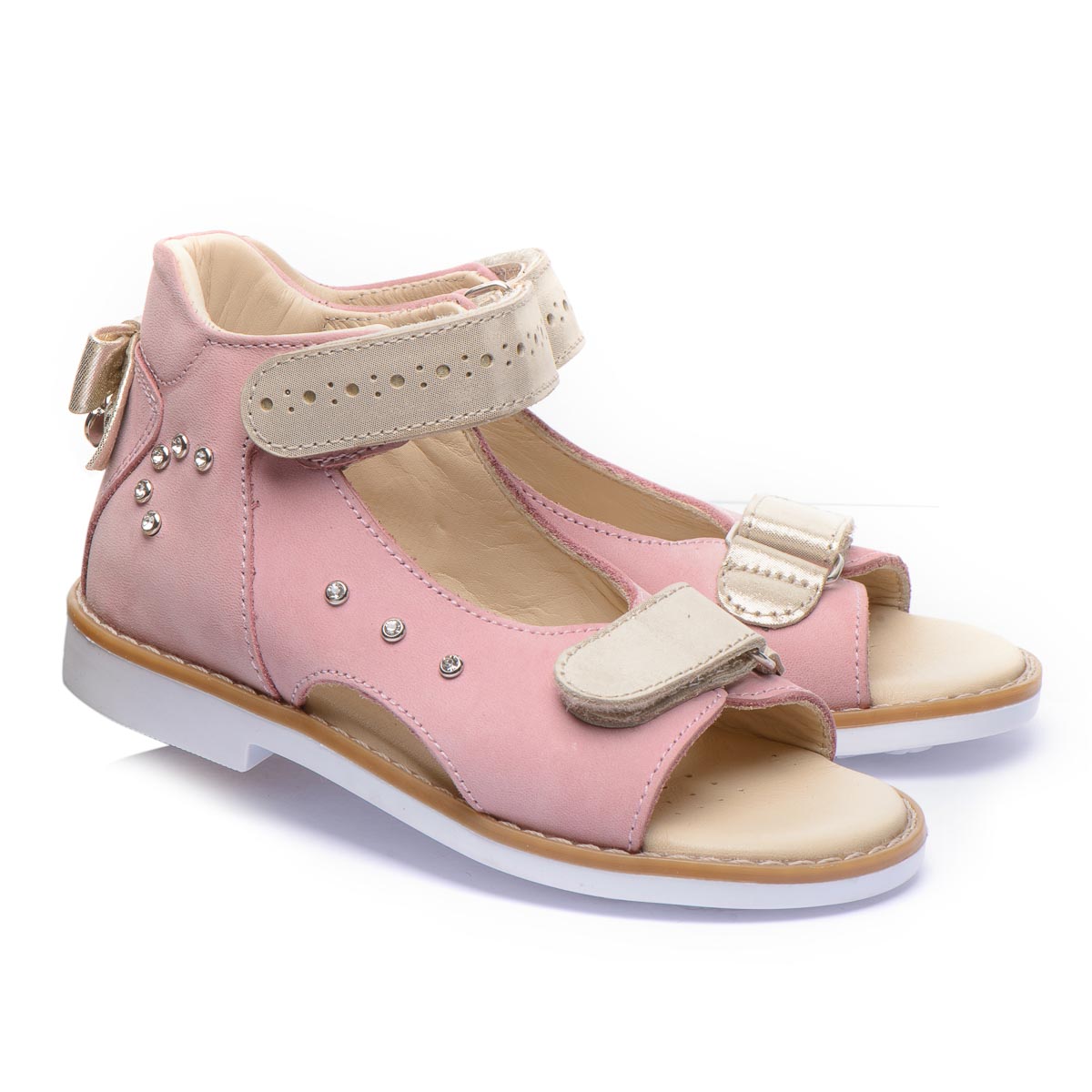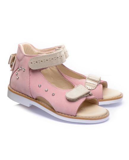 Босоніжки для дівчинки, виконані з натурального нубуку у рожевому кольорі, вражають своєю повнотою кращих якостей: стилю, комфорту та якості. Застібки на липучках золотистого кольору не лише додають взуттю елегантності, але й дозволяють надійно зафіксувати його на ніжці. Шкіряна устілка з анатомічним супінатором спеціально розроблена для того, щоб підтримувати природний вигин стопи та забезпечувати правильне розподілення навантаження під час руху. Також варто зазначити, що підошва з термопластичної гуми та каблуком Томаса. Натуральні матеріали, з якого виготовлені босоніжки, разом із ретельно продуманим дизайном робить ці босоніжки ідеальним вибором для тих, хто цінує якість і естетику.