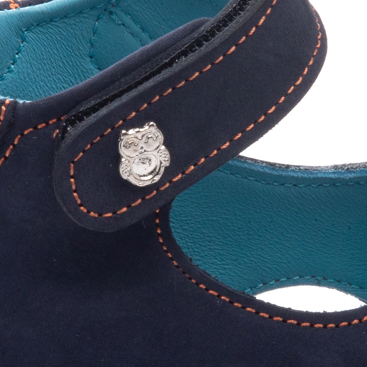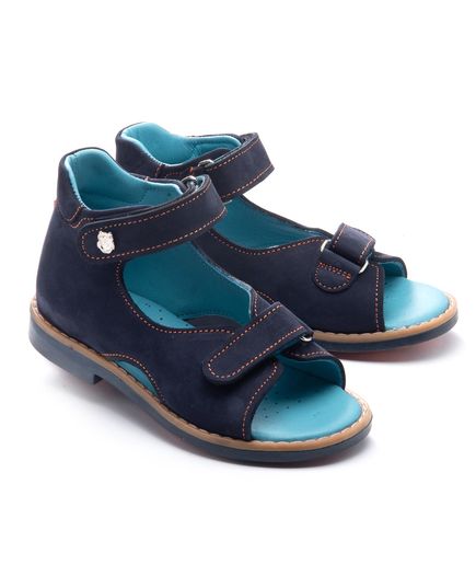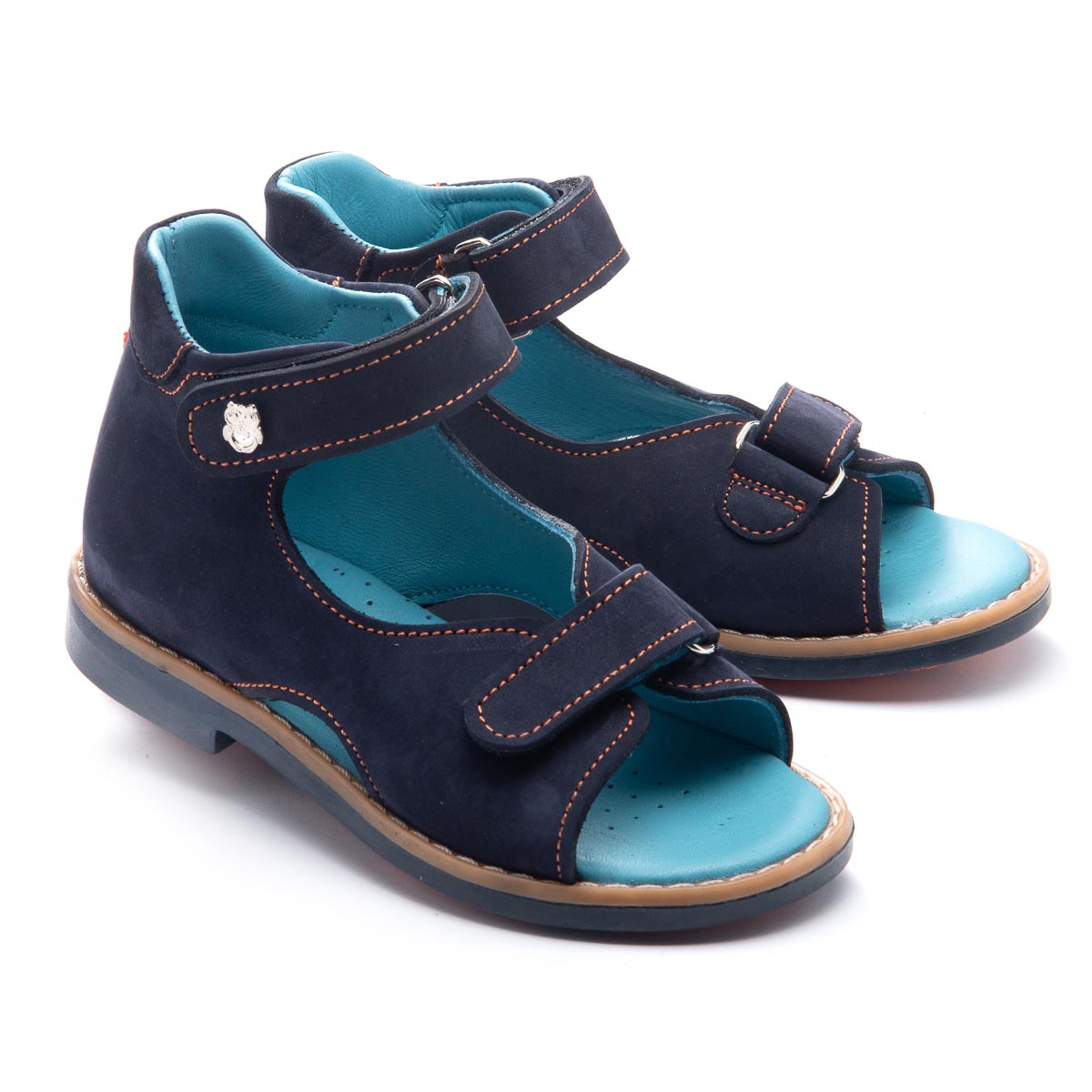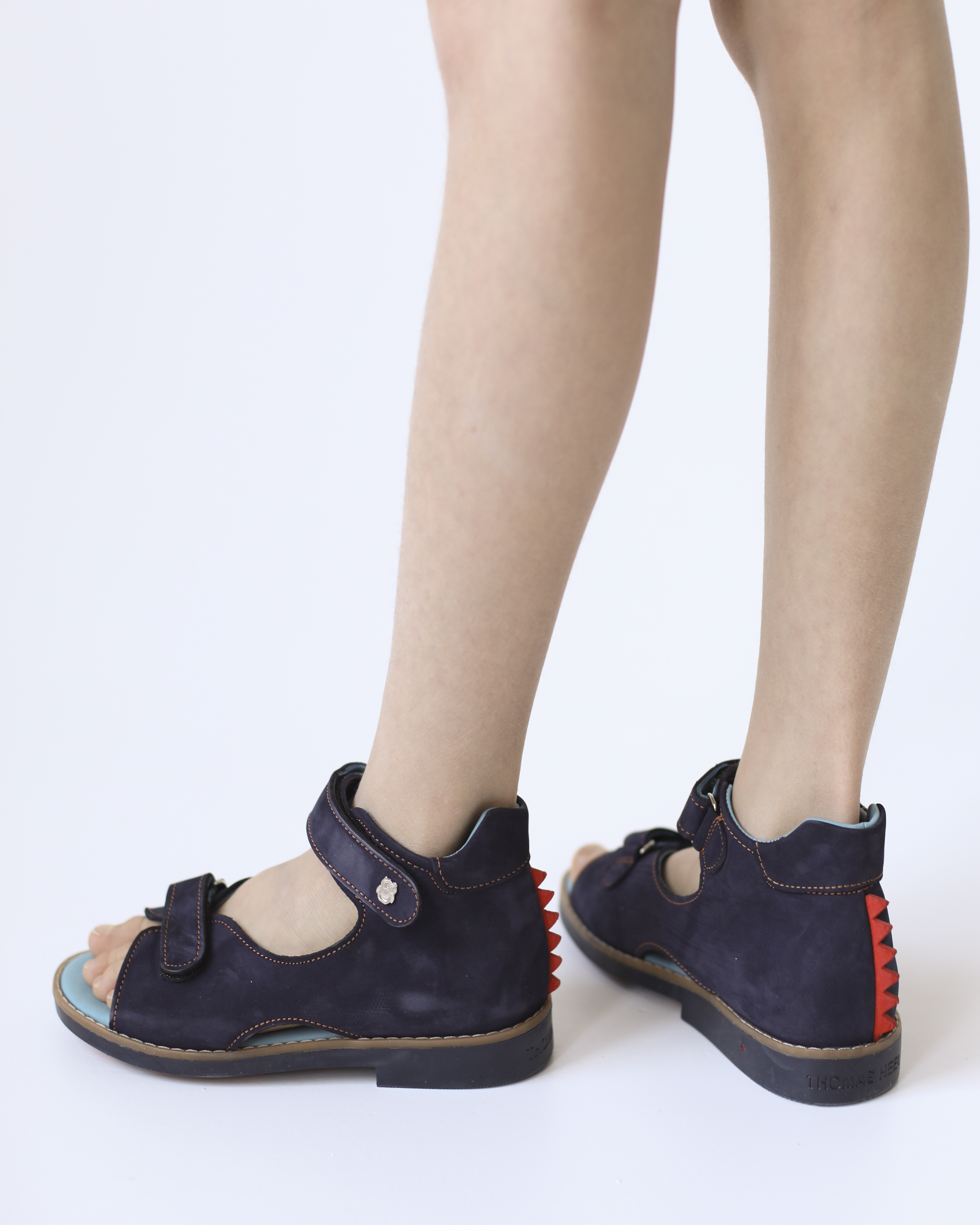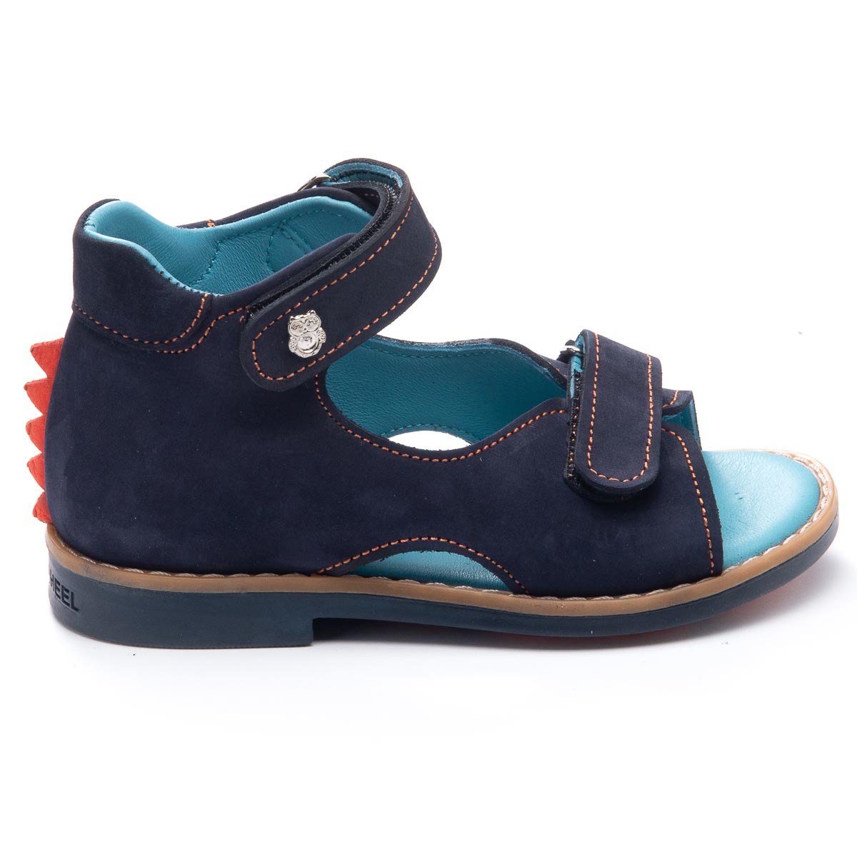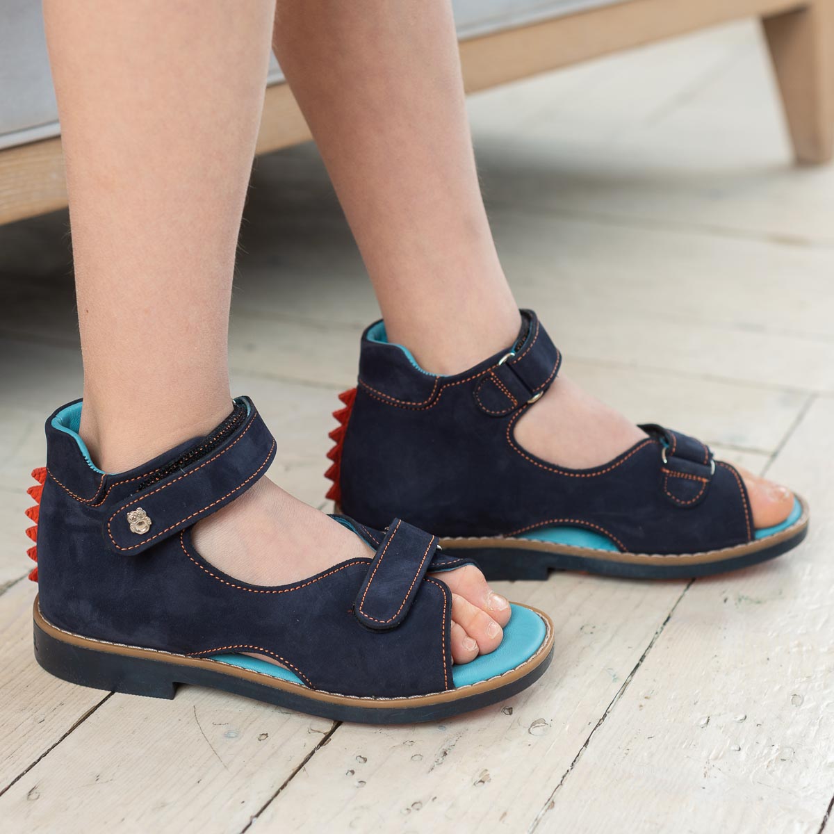 Босоніжки для хлопців, виконані з натурального нубуку - насиченого темно-синього кольору. Взуття має декор «гребені дракона». Босоніжки оснащені зручними застібками на липучках. Для забезпечення правильного розвитку стопи, здоров'я ніг та максимального комфорту, взуття має спеціальні властивості: