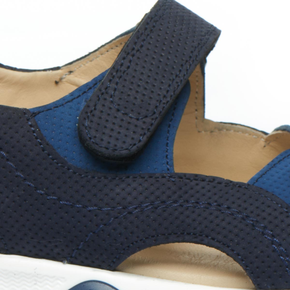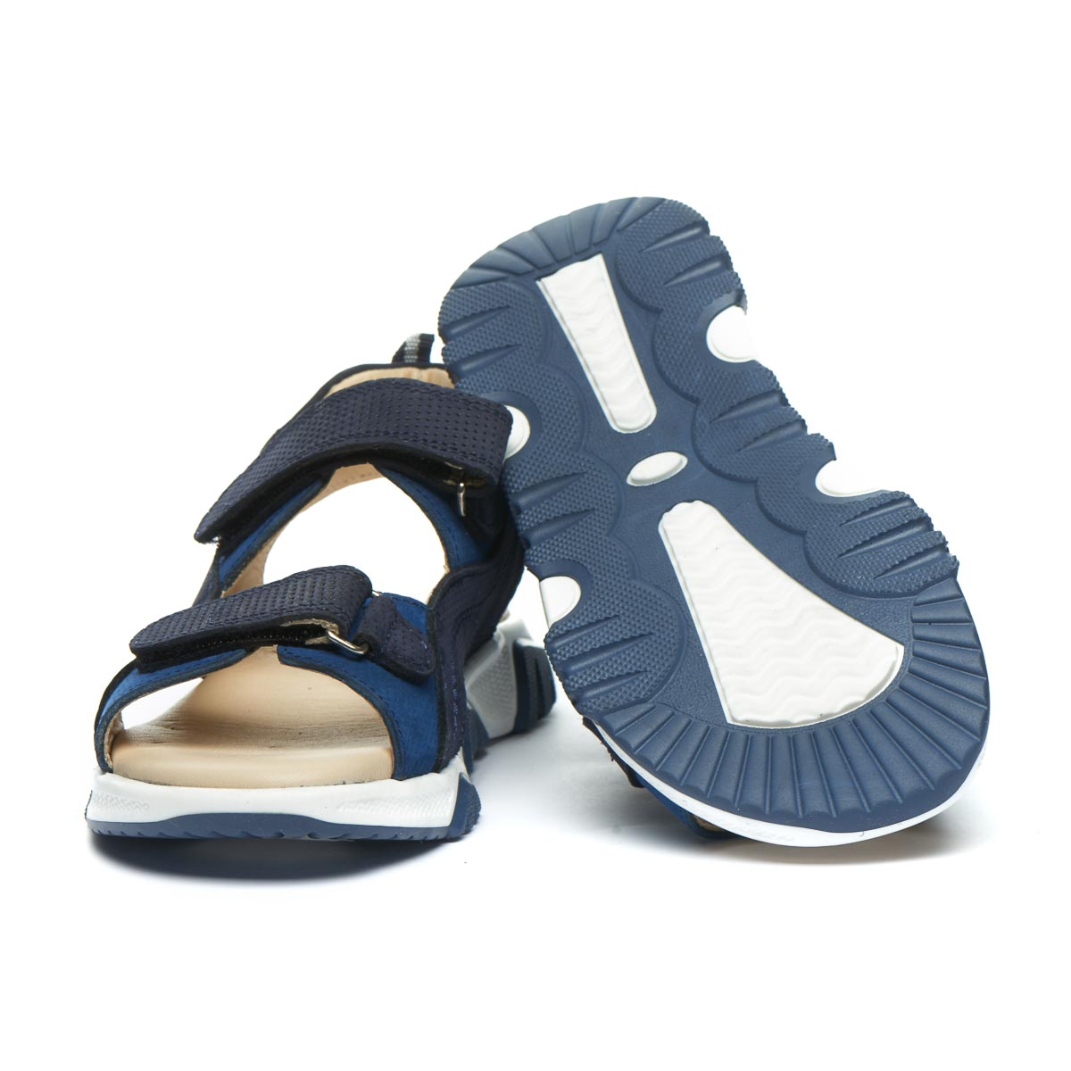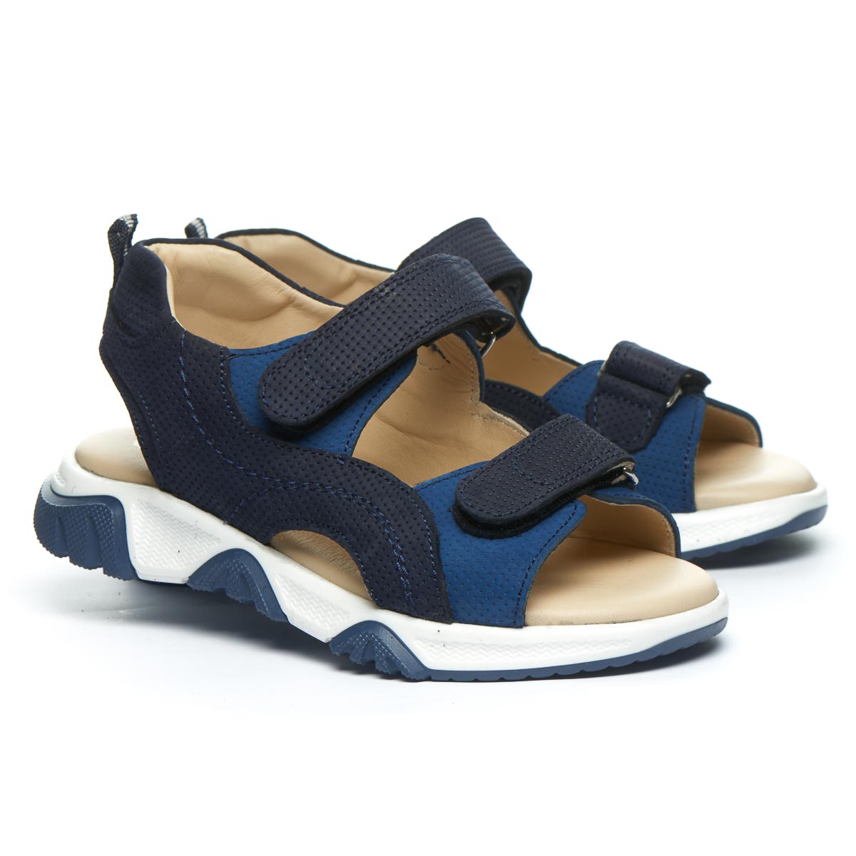 Босоніжки для хлопчика виготовлені виключно з натуральних матеріалів, що забезпечує комфорт та здоров'я маленьких ніжок. Верх виготовлений з високоякісного натурального нубуку синього кольору, який не тільки виглядає стильно, але й має високу зносостійкість. Підкладка та устілка виконані з гладкої натуральної шкіри, яка забезпечує м'якість та комфорт при носінні. Стильна підошва з красивим рельєфом та фактурою, додає моделі сучасного вигляду. Надійна липучка використовується в якості застібки, дозволяє швидко та легко взувати та знімати босоніжки. Завдяки застібці-липучці можна регулювати повноту босоніжок, створюючи ідеальне прилягання до ніжки. А за додатковий комфорт подбає зручна устілка з супінатором та підошва з термопластичної гуми. Максимально відкрита модель босоніжок стане ідеальним вибором для спекотного літа.