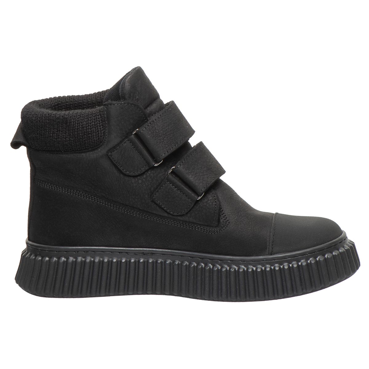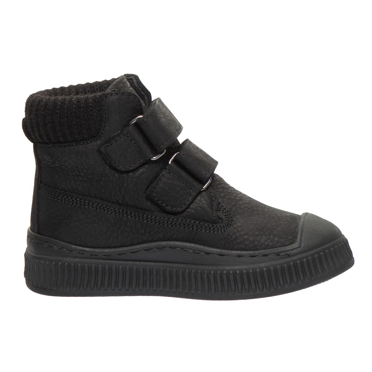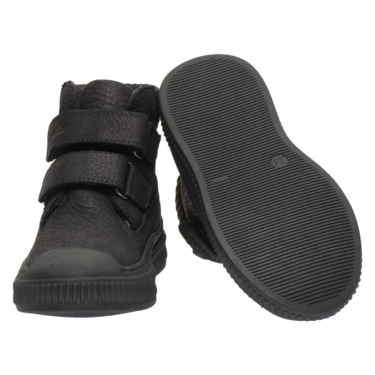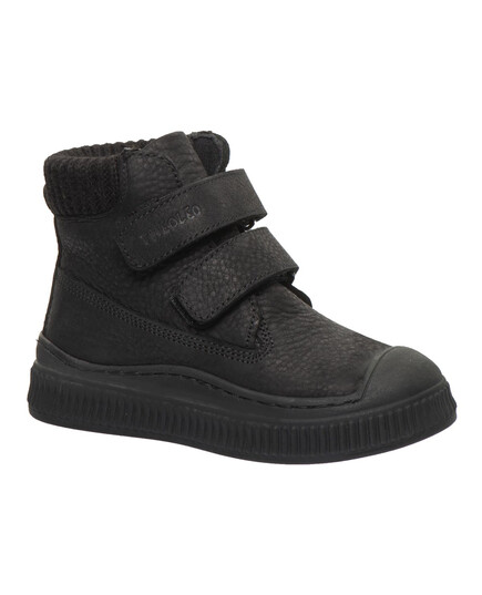 Дитячі черевики з натуральної шкіри чорного кольору вирізняються продуманим дизайном і високим рівнем комфорту. Модель оснащена текстильною вставкою на п’яті, укріпленим носком і зручною застібкою-липучкою для швидкого взування. Усередині — флісовий підклад і ортопедична устілка з анатомічним супінатором, що підтримують стопу. Підошва з термопластичної гуми — міцна, гнучка, не ковзає й має гарну амортизацію.