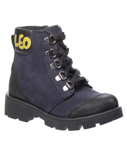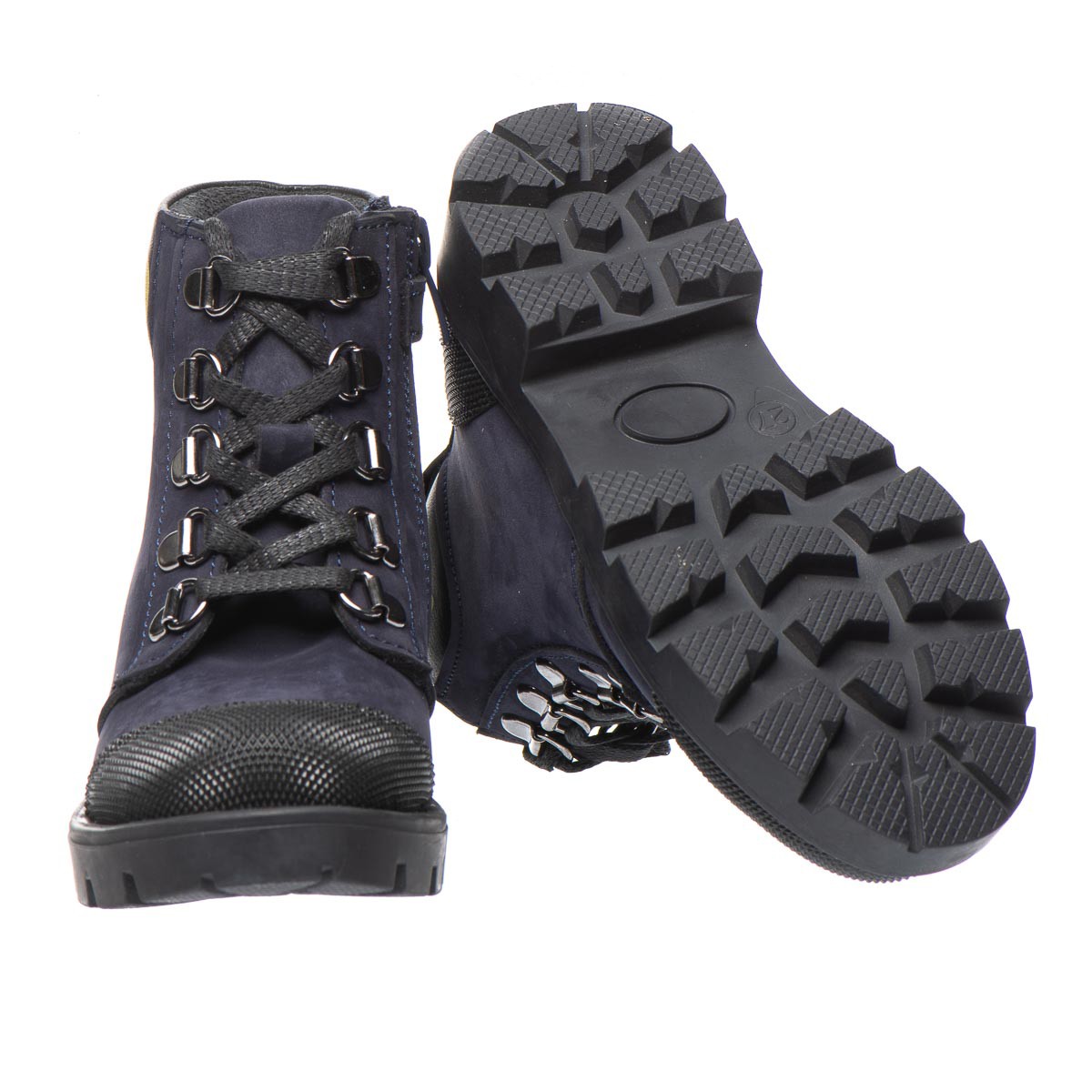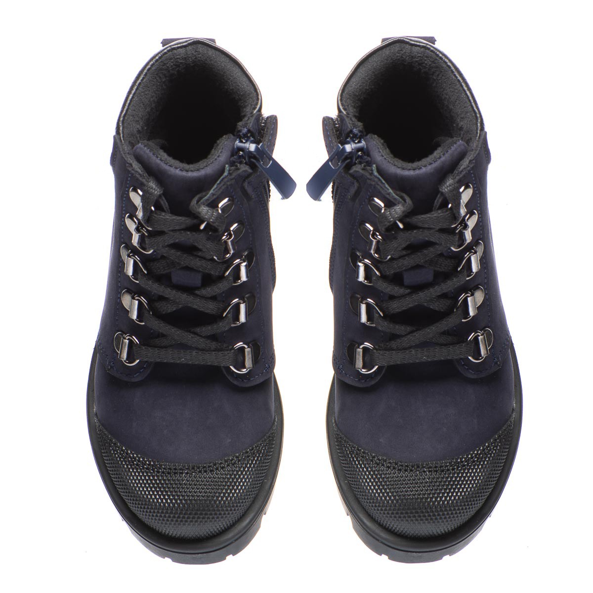 Ці стильні демісезонні черевики стануть чудовим вибором для холодної пори року, підходять як для дівчаток, так і для хлопчиків. Виготовлені з натурального нубуку темно-синього кольору, ідеально впишуться  в будь-який образ. Шнурівка гарантує ідеальну посадку, в той час як блискавка забезпечує легкість і швидкість в надяганні. Черевики оснащені міцною та гнучкою підошвою з глибоким протектором, та теплою флісовою підкладкою в середині, устілка шкіряна з супінатором. Захисні вставка на носке та п’яті  захищають ноги від вологи, забезпечуючи  комфорт в при будь-яких умовах.