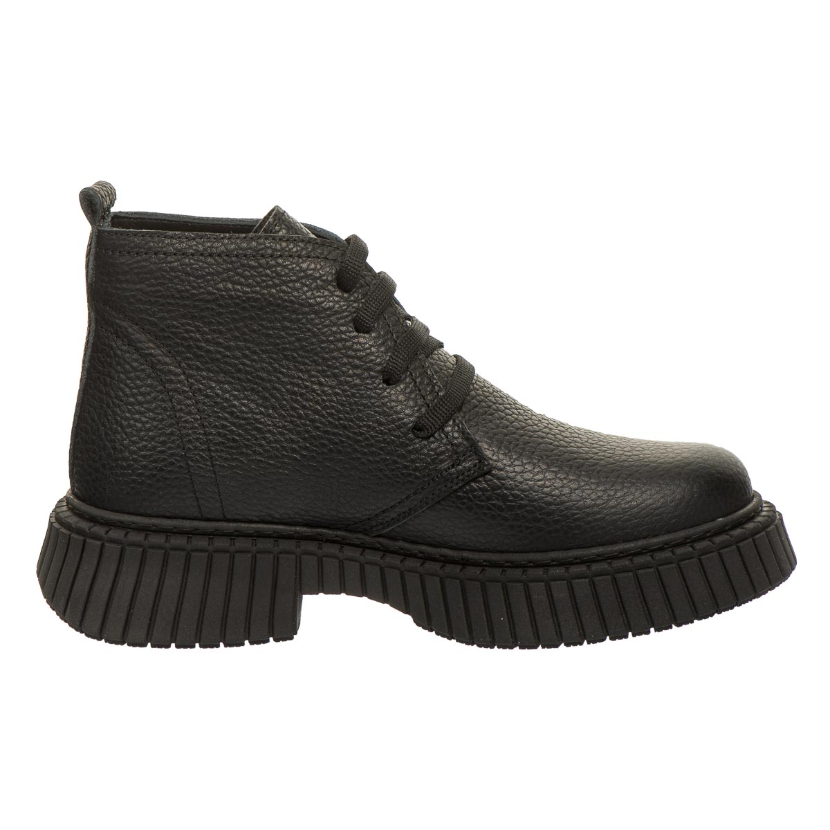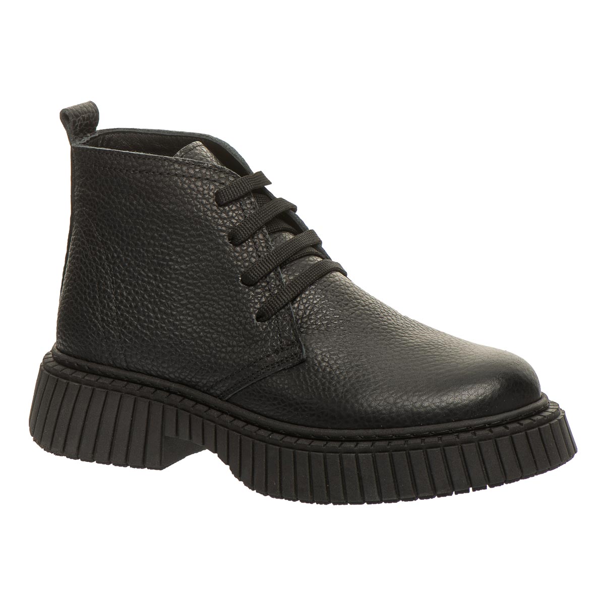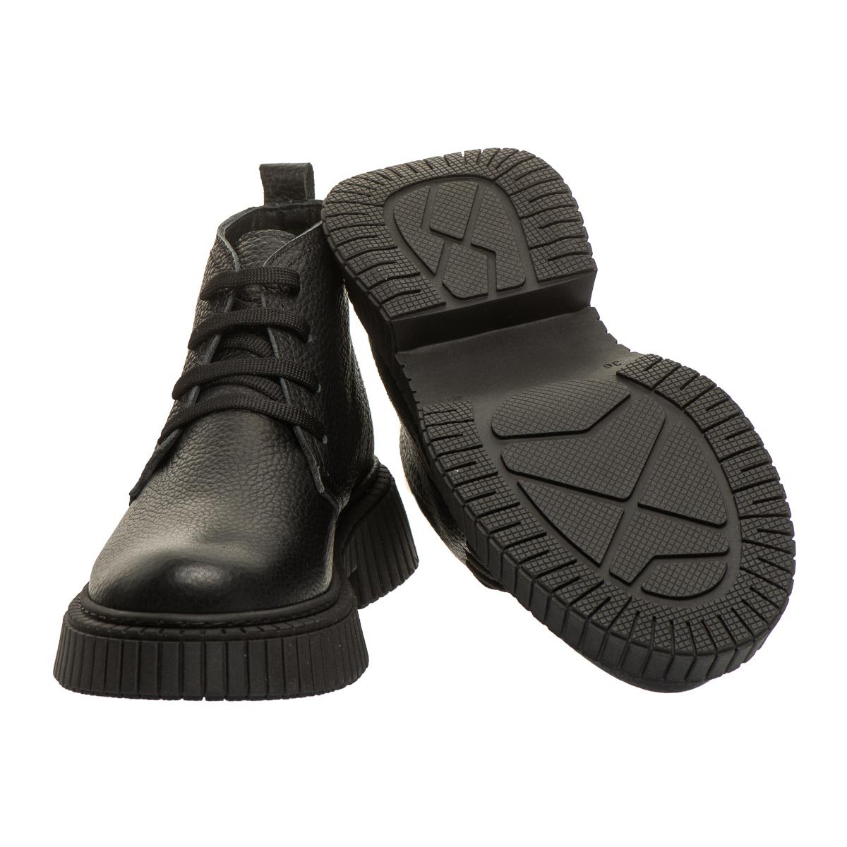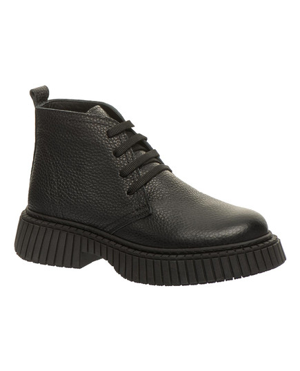 Стильні демісезонні черевики для дівчаток, виготовлені з натуральної зернистої шкіри чорного кольору, стануть чудовим вибором для прохолодної погоди. Висока рифлена підошва з невеликим каблучком додає моделі елегантності й забезпечує надійне зчеплення з поверхнею. Класичне шнурування дозволяє добре зафіксувати стопу. М’яке флісове утеплення всередині дарує тепло в прохолодну погоду, а шкіряна устілка з анатомічною формою та супінатором сприяє правильному розвитку стопи. Жорсткий задник забезпечує додаткову підтримку та стабільність. Підошва з термопластичної гуми — гнучка, зносостійка, з хорошими амортизаційними властивостями та не ковзає. Ці черевики поєднують в собі практичність, комфорт і стиль.