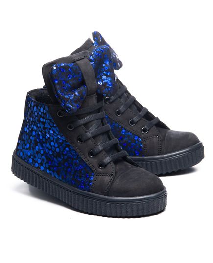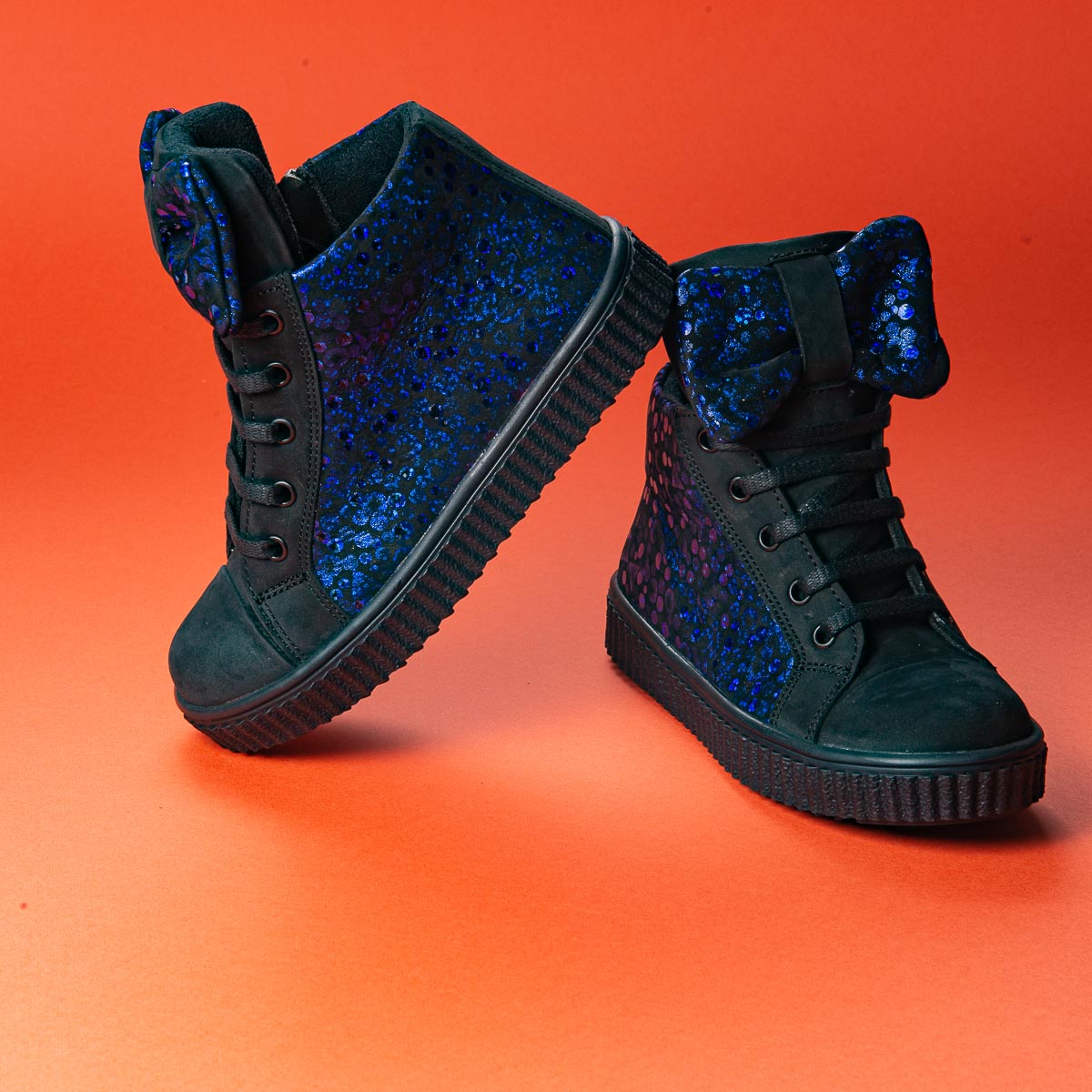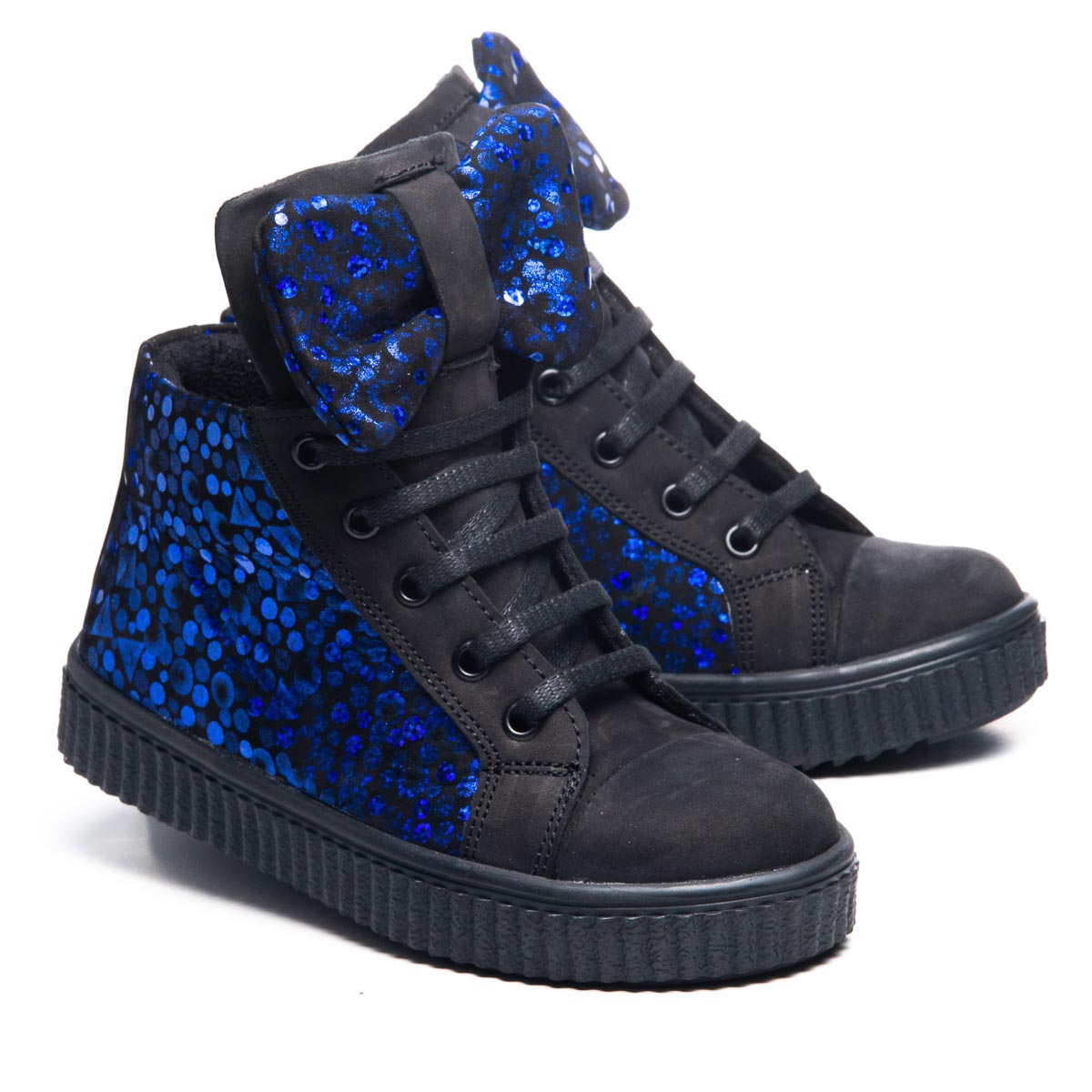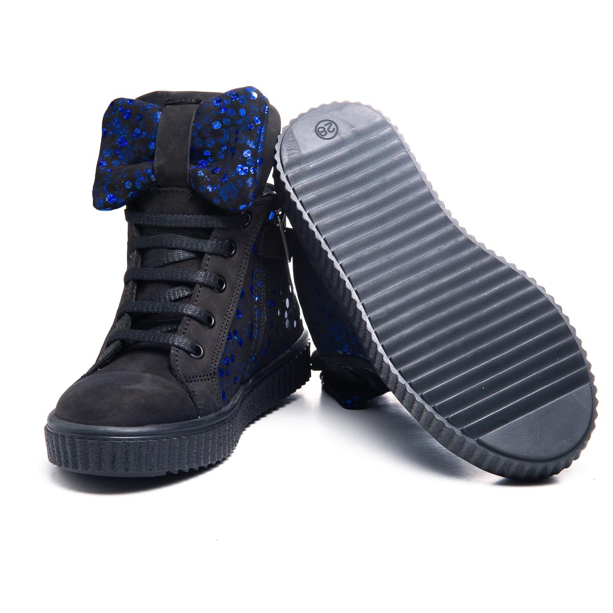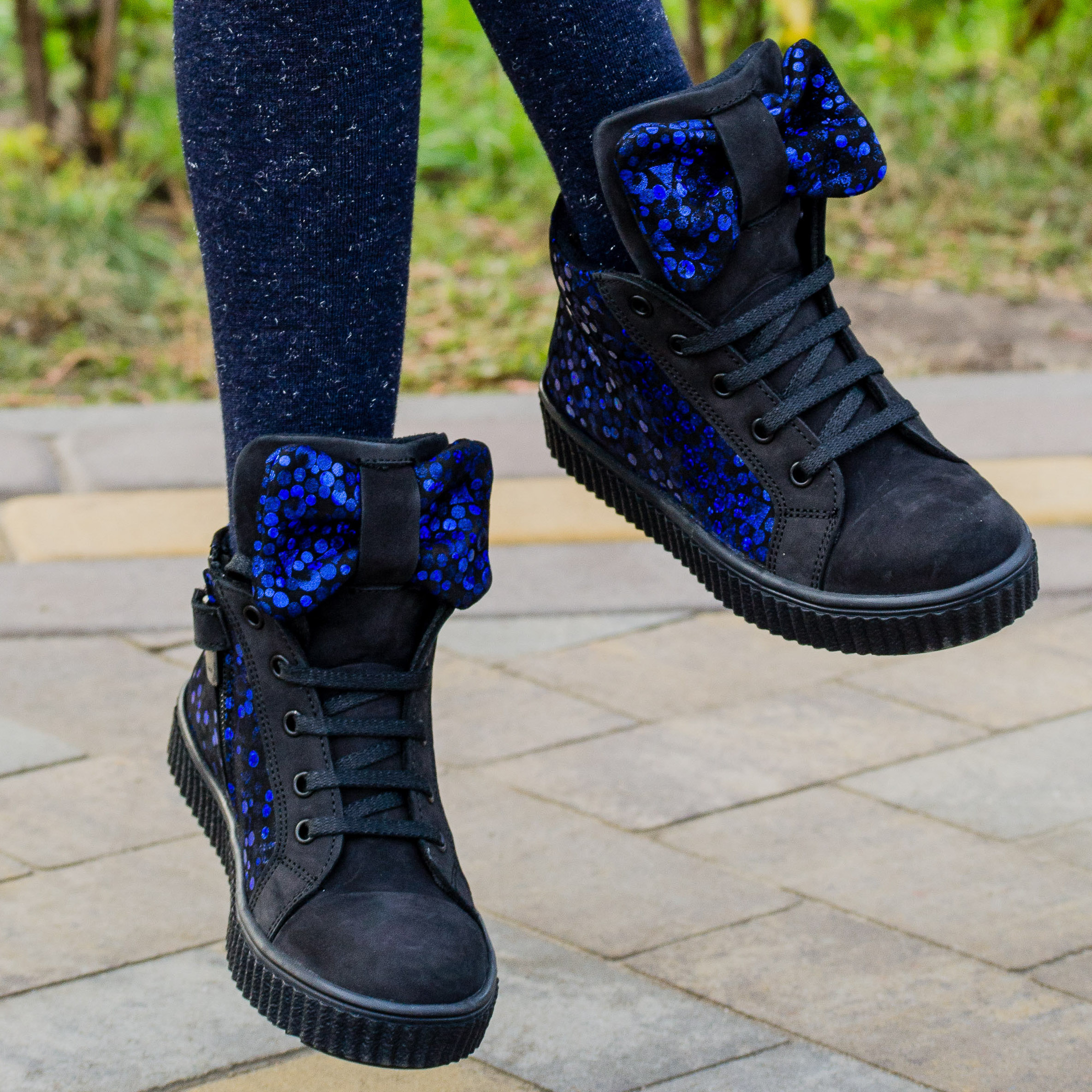 З такими черевичками від Theo Leo ваша дочка буде найпривабливішою і щасливою. Шикарна модель демісезонних черевиків стане відмінним варіантом на цю осінь! Цікавий дизайн не залишить вашої дитини без уваги, а красивий бант завжди буде викликати захоплення вашої дочки. Модель виконана з нубуку чорного кольору з синім доповненням. Присутній анатомічний супінатор, підкладка - утеплена, а підошва - термопластичная гума. Вашій дитині в них буде затишно і комфортно.