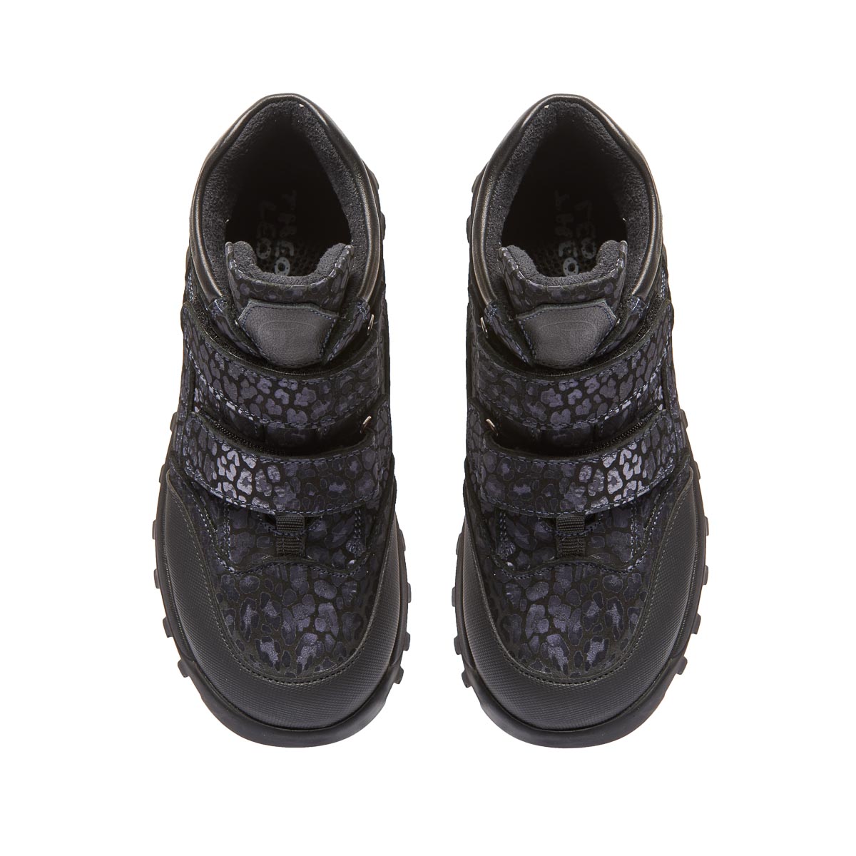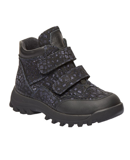 Демісезонні черевики для дівчаток виготовлені з натуральної шкіри та нубуку темно-синього кольору. Для надійного захисту від ударів і подряпин носки черевиків оснащені спеціальними захисними елементами. Дві липучки забезпечують зручну та міцну фіксацію на нозі. Утеплена флісова підкладка гарантує комфорт і тепло, а устілка з натуральної шкіри з супінатором підтримує правильне положення стопи. Рифлена підошва з вираженим протектором забезпечує відмінну стійкість на будь-яких поверхнях.