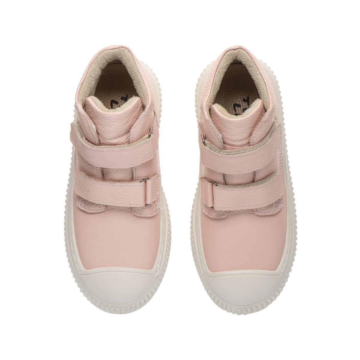 Стильні черевики для дівчат виконані з натуральної шкіри ніжного рожевого кольору. Зручна підошва забезпечує комфорт під час активних прогулянок, а посилений носок захищає взуття від подряпин. Високий міцний задник підтримує стопу, сприяючи правильному положенню. Усередині — теплий флісовий підклад і шкіряна устілка з ортопедичною підтримкою, що гарантують тепло й зручність у прохолодну пору. Стильна модель у спортивному дизайні чудово поєднується з будь-яким осіннім вбранням юної модниці.