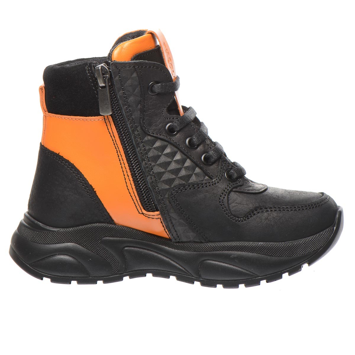 Стильні черевики з натуральної шкіри на сучасній підошві стануть чудовим вибором для вашої дитини. Усередині – флісова підкладка, що забезпечують тепло і комфорт, а шкіряна устілка з анатомічним супінатором підтримує правильне положення стопи. Черевики оснащені зручною блискавкою та шнурками. Оптимальну підтримку для стопи забезпечить твердий задник. Кольорова індивідуальність моделі зробить взуття улюбленим предметом у гардеробі вашої дитини!