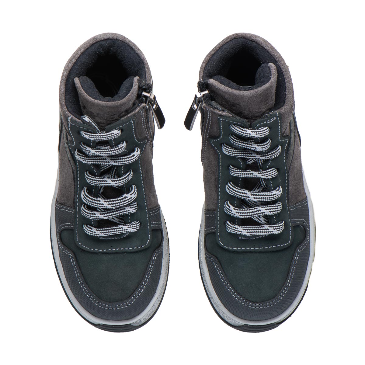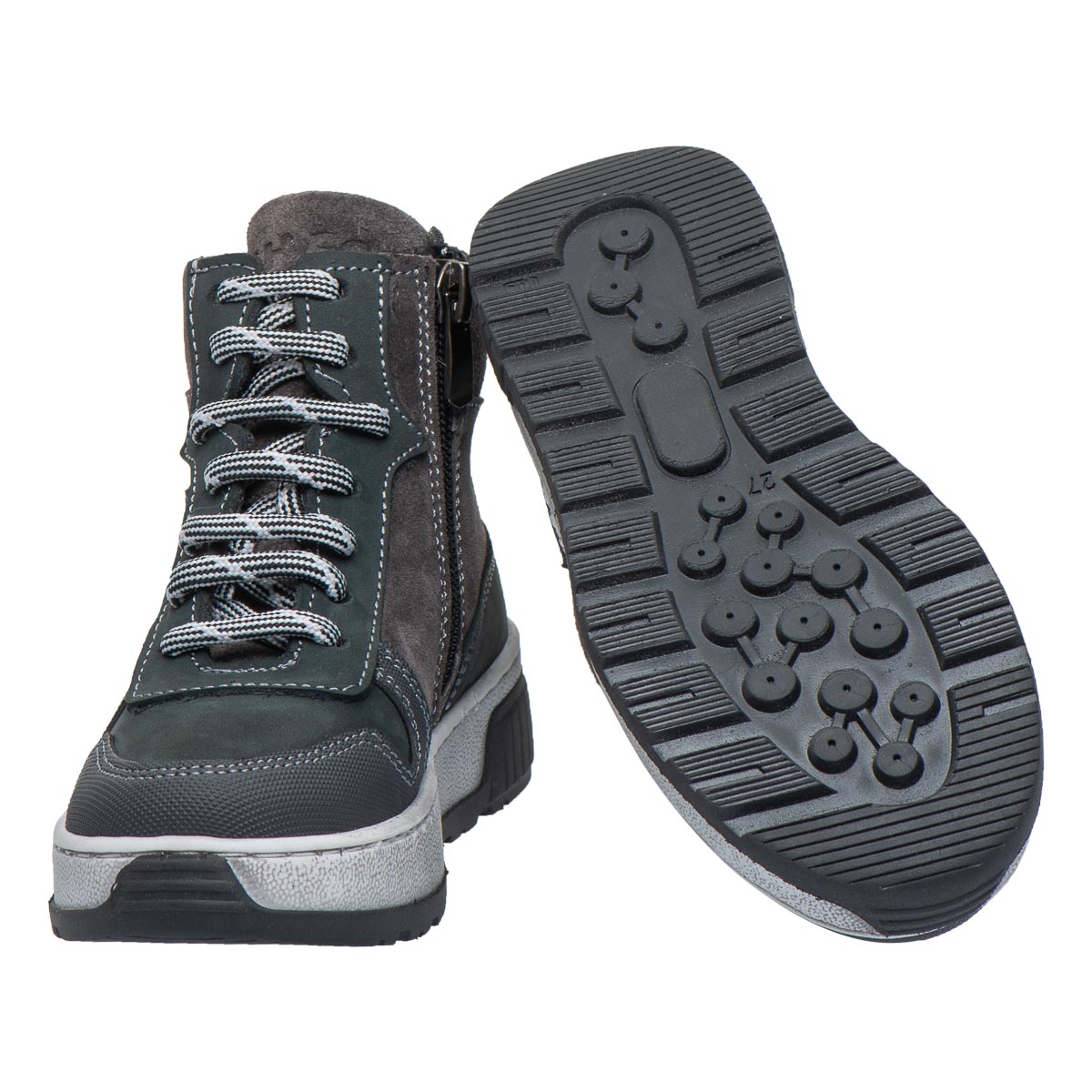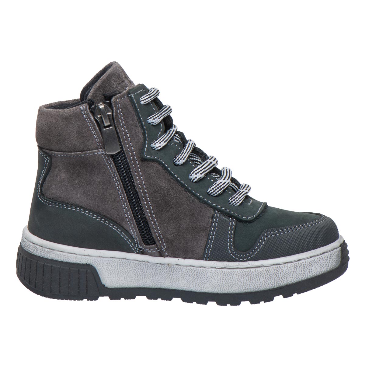 Дитячі черевики з натурального нубуку у стильному сірому відтінку зі шкіряними вставками. Усередині — м’яка флісова підкладка, яка зберігає тепло та забезпечує приємний мікроклімат для ніжок. Підошва з укріпленим носком стійка до зношування та надійно захищає взуття під час активних ігор. Завдяки класичній шнурівці та бічній блискавці черевики легко взуваються й добре фіксуються на нозі. Жорсткий задник та ортопедична устілка з анатомічним супінатором піклуються про правильний розвиток стоп. Це ідеальне взуття для щоденних прогулянок, яке гармонійно поєднує зручність, міцність і стиль.