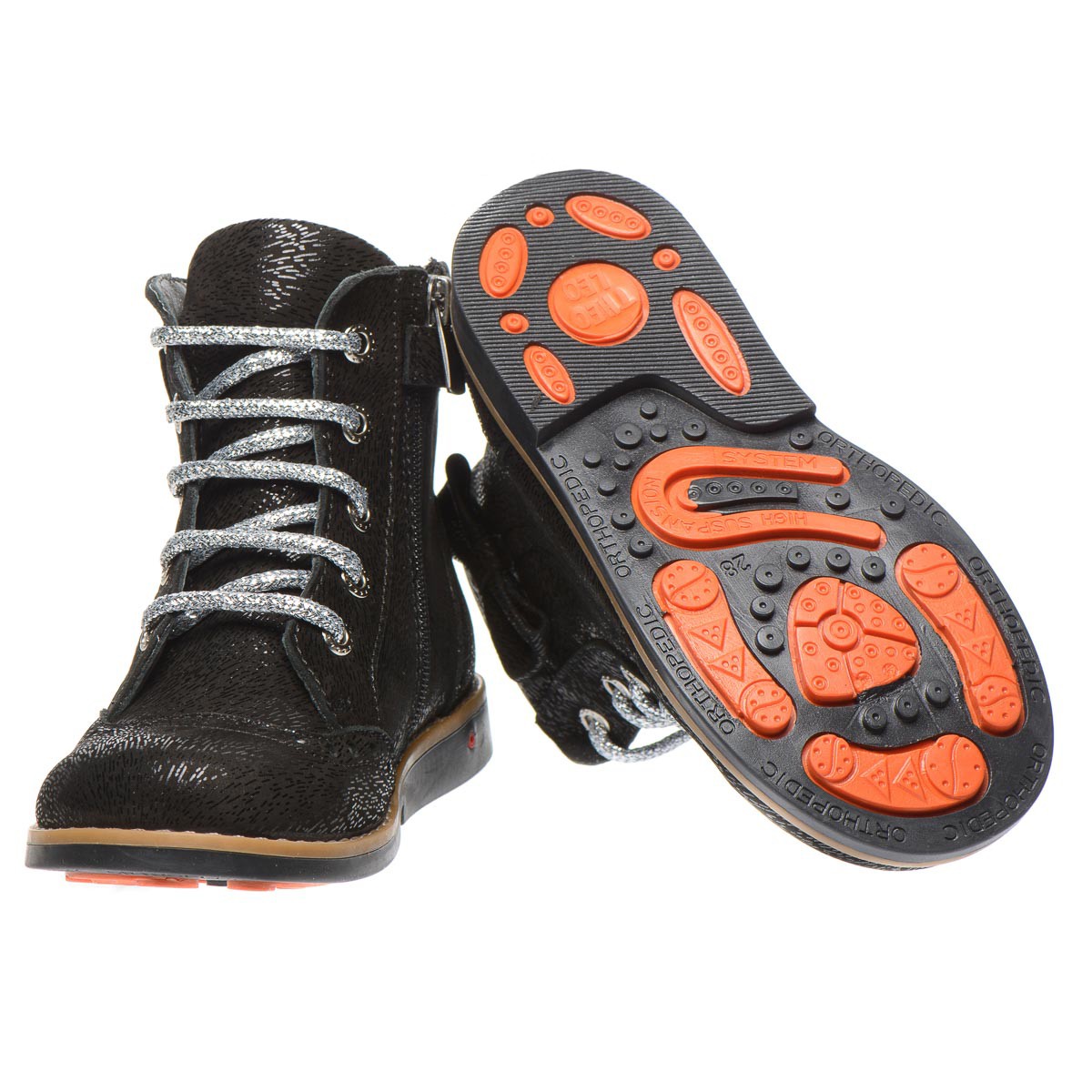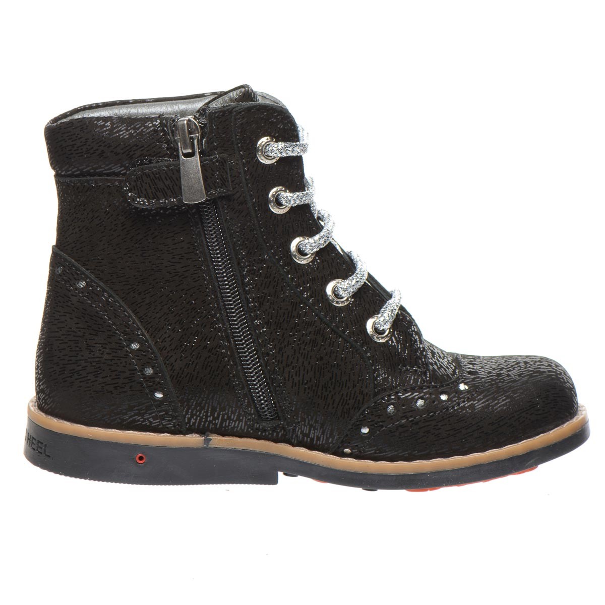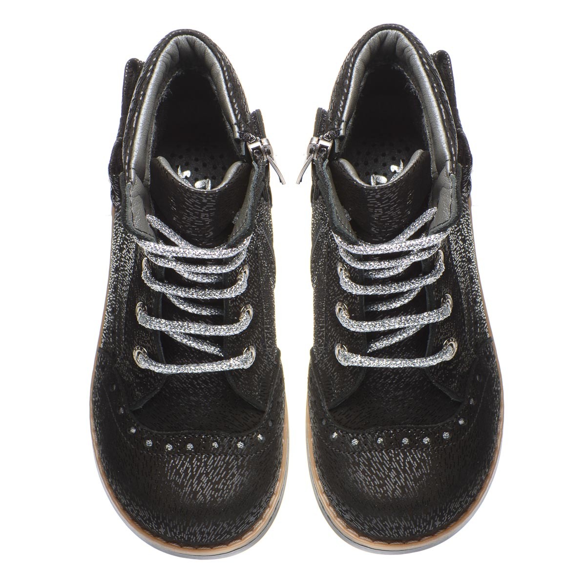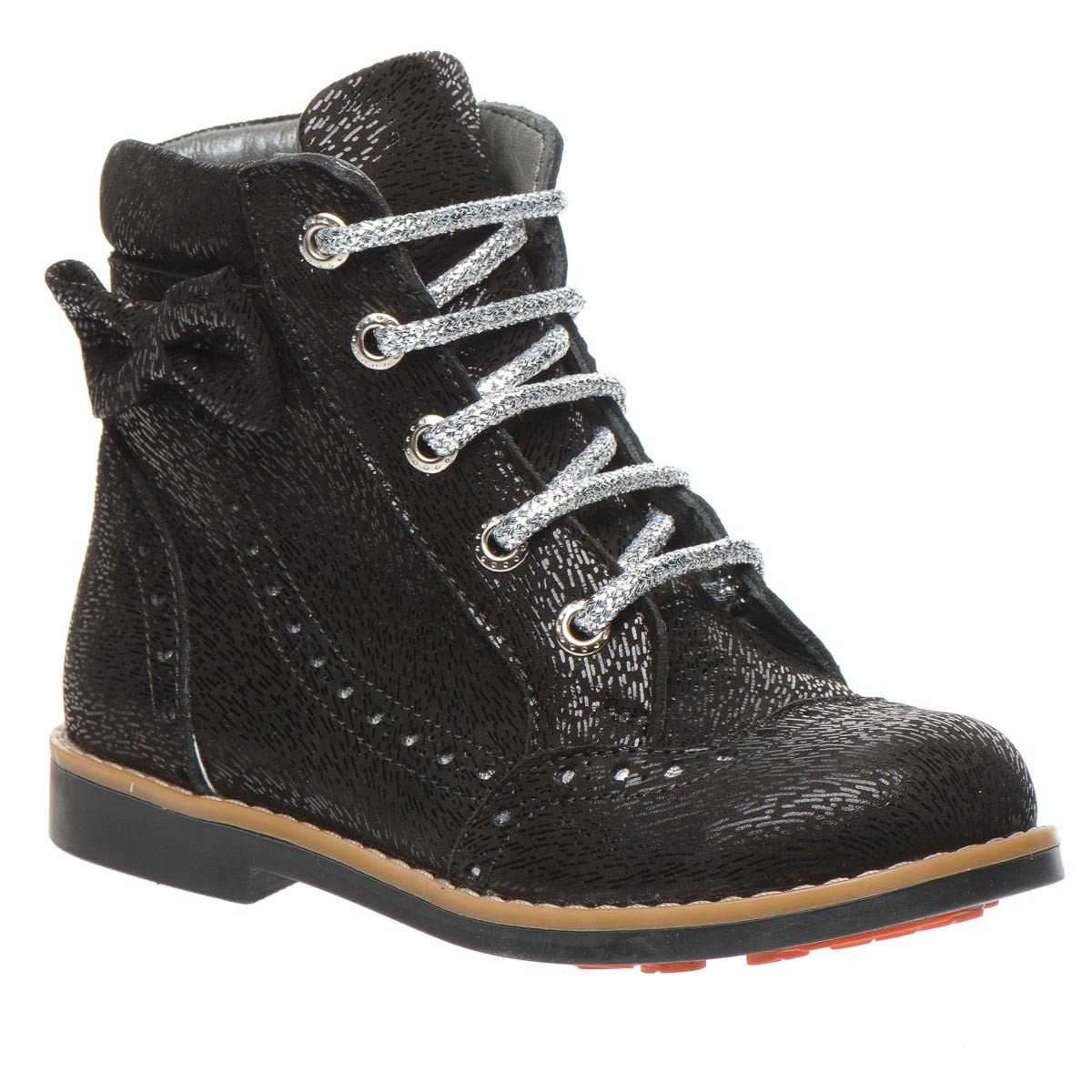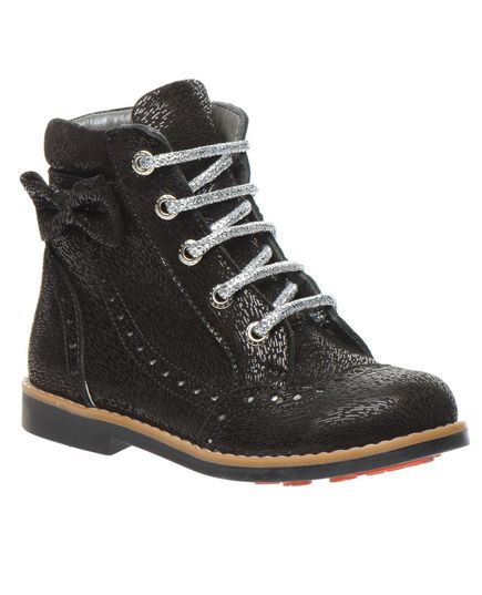 Чорні шкіряні черевики для маленьких леді, виготовлені з високоякісної натуральної шкіри, виглядають елегантно і ніжно. Контрастна срібна шнурівка додає яскравого акценту, а декоративний бантик збоку - ніжності і витонченості. Для зручності взування черевики оснащені блискавкою, що робить процес одягання легким і швидким. Внутрішня частина утеплена - м'яким флісом, шкіряна устілка з анатомічним супінатором, підошва з каблуком Томаса. Ці черевики стануть відмінним доповненням до будь-якого образу вашої маленької модниці.