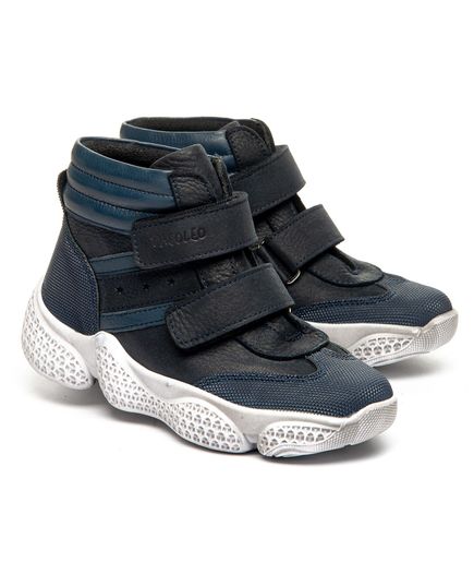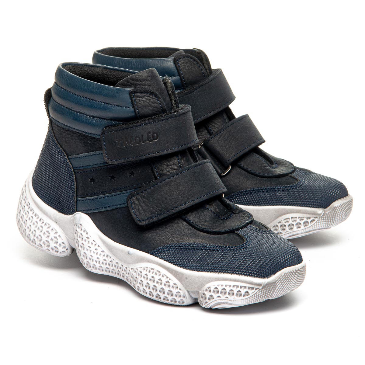 Демісезонні черевики для хлопчика виготовлені з натуральної шкіри в синьому кольорі, утеплені м'яким флісом і мають шкіряні устілки. Спортивна підошва, разом з ортопедичними елементами, такими як жорсткий задник, устілка з супінатором - забезпечують комфорт для дитячих стоп. Для зручності взування передбачена надійна липучка, яка значно спрощує процес одягання.