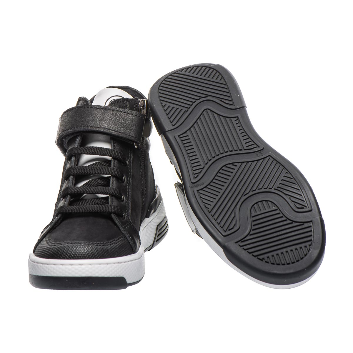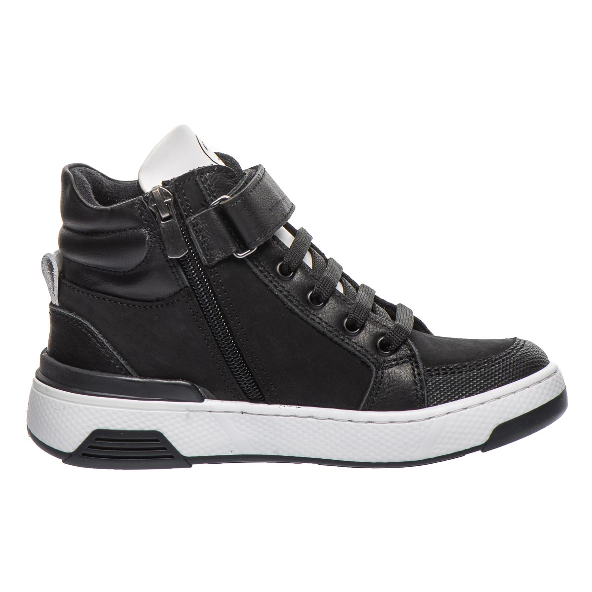 Дитячі демісезонні черевики або високі кеди, виконані в стильному біло-чорному кольорі, стануть ідеальним вибором для прохолодної погоди. Вони виготовлені з високоякісних натуральних матеріалів: міцної шкіри та м’якого нубуку, що гарантує довговічність і комфорт. Черевики мають важливі ортопедичні елементи, які забезпечують здоров'я дитячих ніжок. Жорсткий задник підтримує п'яту у правильному положенні, а ортопедична устілка з супінатором сприяє правильному формуванню стопи. Легка та гнучка підошва, яка не ковзає, забезпечує максимальну стійкість і комфорт при ходьбі, дозволяючи дитині рухатися з легкістю.