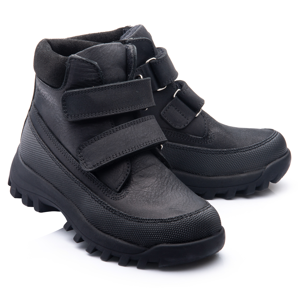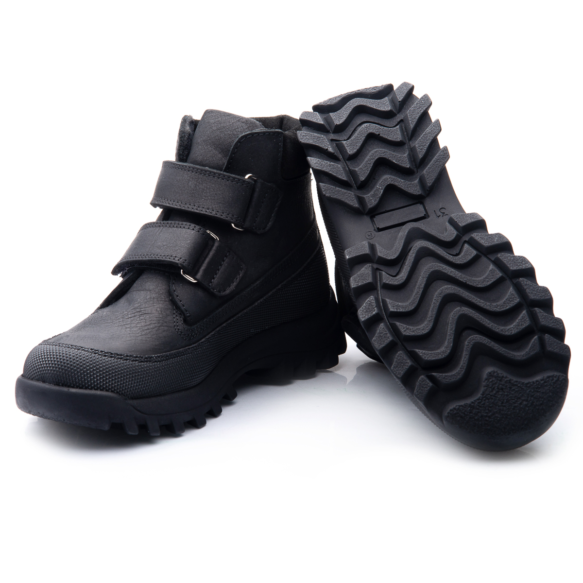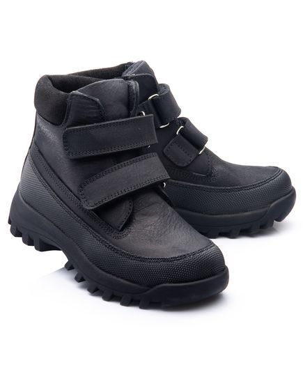 Демісезонні черевики для хлопчиків в чорному кольорі будуть прекрасно виглядати на нозівашої дитини! Верх даної моделі зроблений з натуральної шкіри, яка порадує вас довговічністю і стійкістю до вологи, а в доповненні з м'якою флісовою підкладкою, подарує незабутній комфорт. Ці черевики чудово тримаються на нозі,одягаються і знімаються з легкістю за допомогою двох липучок. З термопластичною підошвою ви не будете турбуватися про намокання або про охолодження ніг вашоїдитини навіть в найхолодніші і наймокріші дні осені.