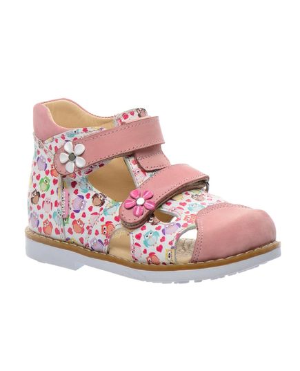 Яскраві дитячі закриті босоніжки, з веселим дитячим принтом. Зовнішня частина моделі поєднує якісний нубук і шкіру, а всередині - повністю шкіряні, що забезпечує максимальний комфорт. Застібки-липучки, жорсткий задник, супінатор поздовжнього зводу стопи та спеціальна зносостійка підошва гарантують правильний розвиток дитячих ніжок. Ці босоніжки неодмінно стануть улюбленими для вашої малечі.