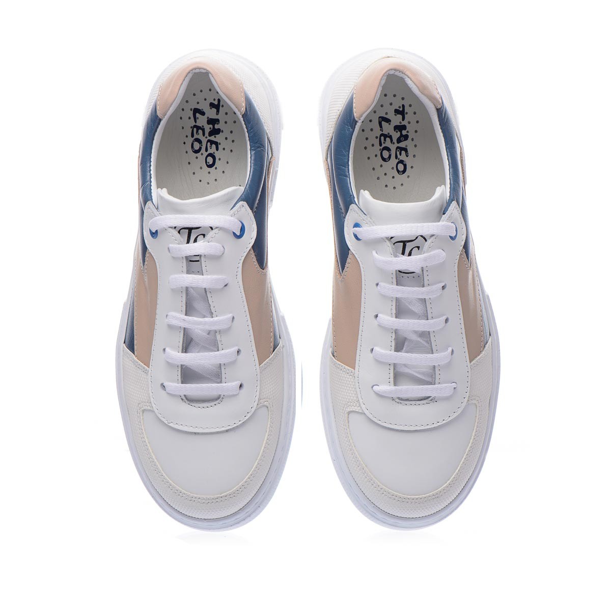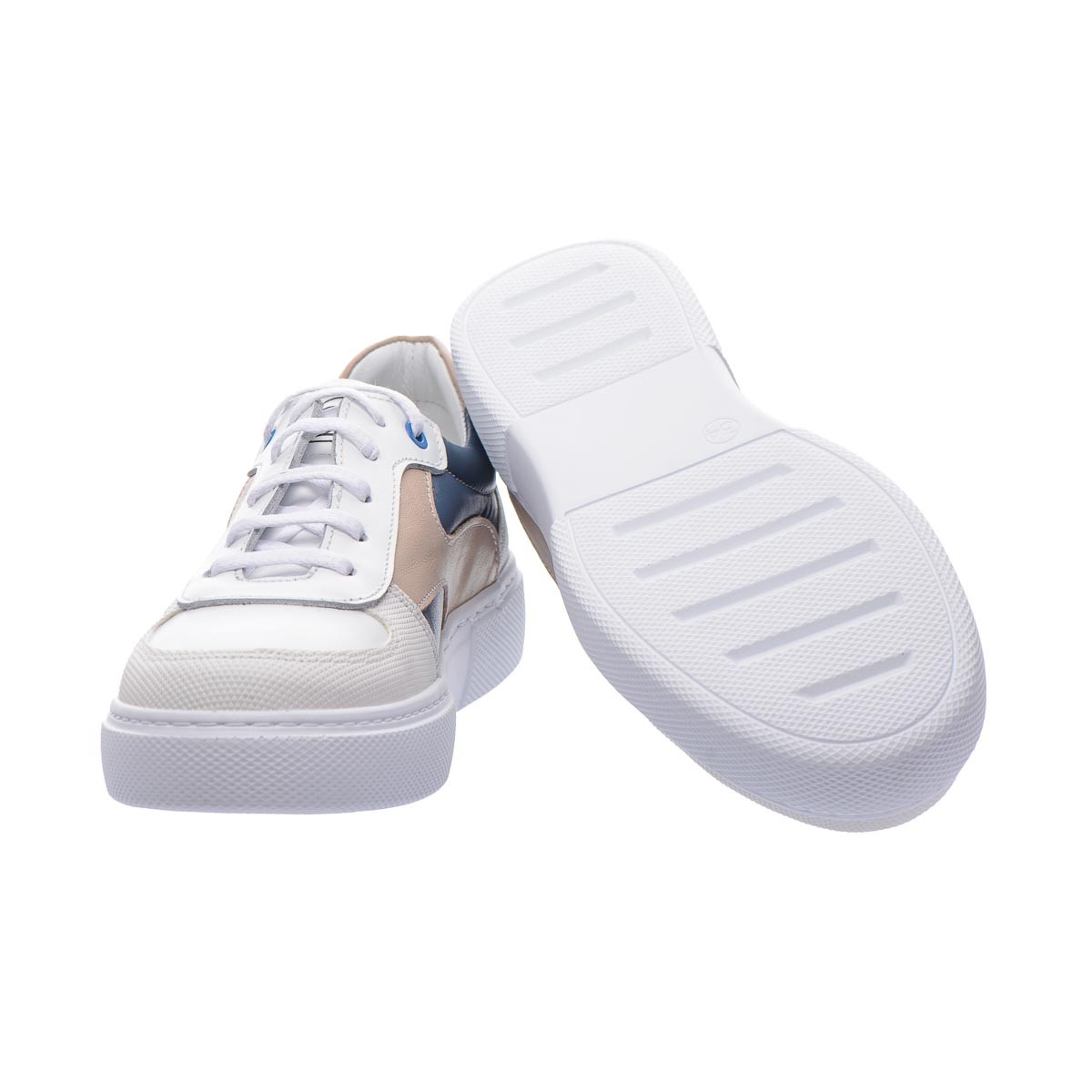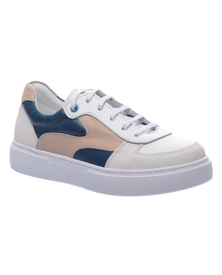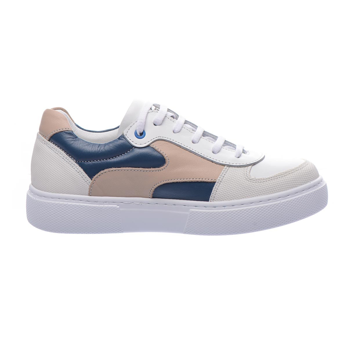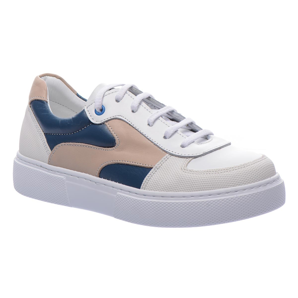 Білі кеди з кольоровими вставками - це яскравий та стильний аксесуар для гардеробу дитини. Виконані з натуральної шкіри. Для надійної фіксації на нозі використовуються шнурки. Модель має анатомічний супінатор для правильної підтримки дитячої стопи. Підошва – з термопластичної гуми. Вони поєднують у собі класичний білий колір з елементами бежевих та синіх кольорових вставок, що робить їх неповторними.