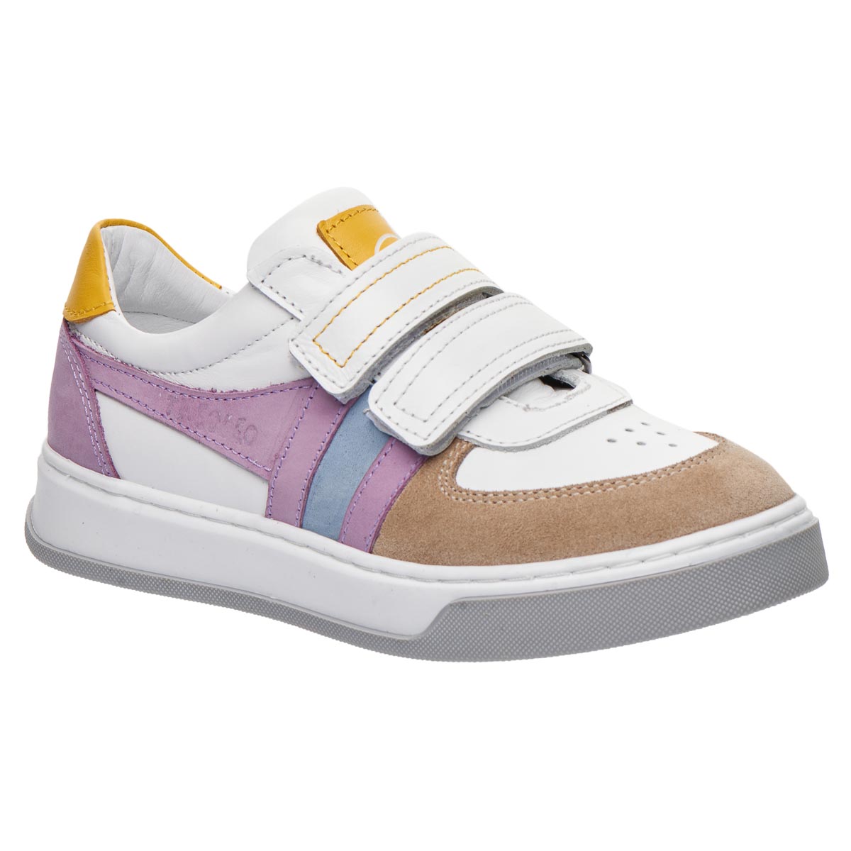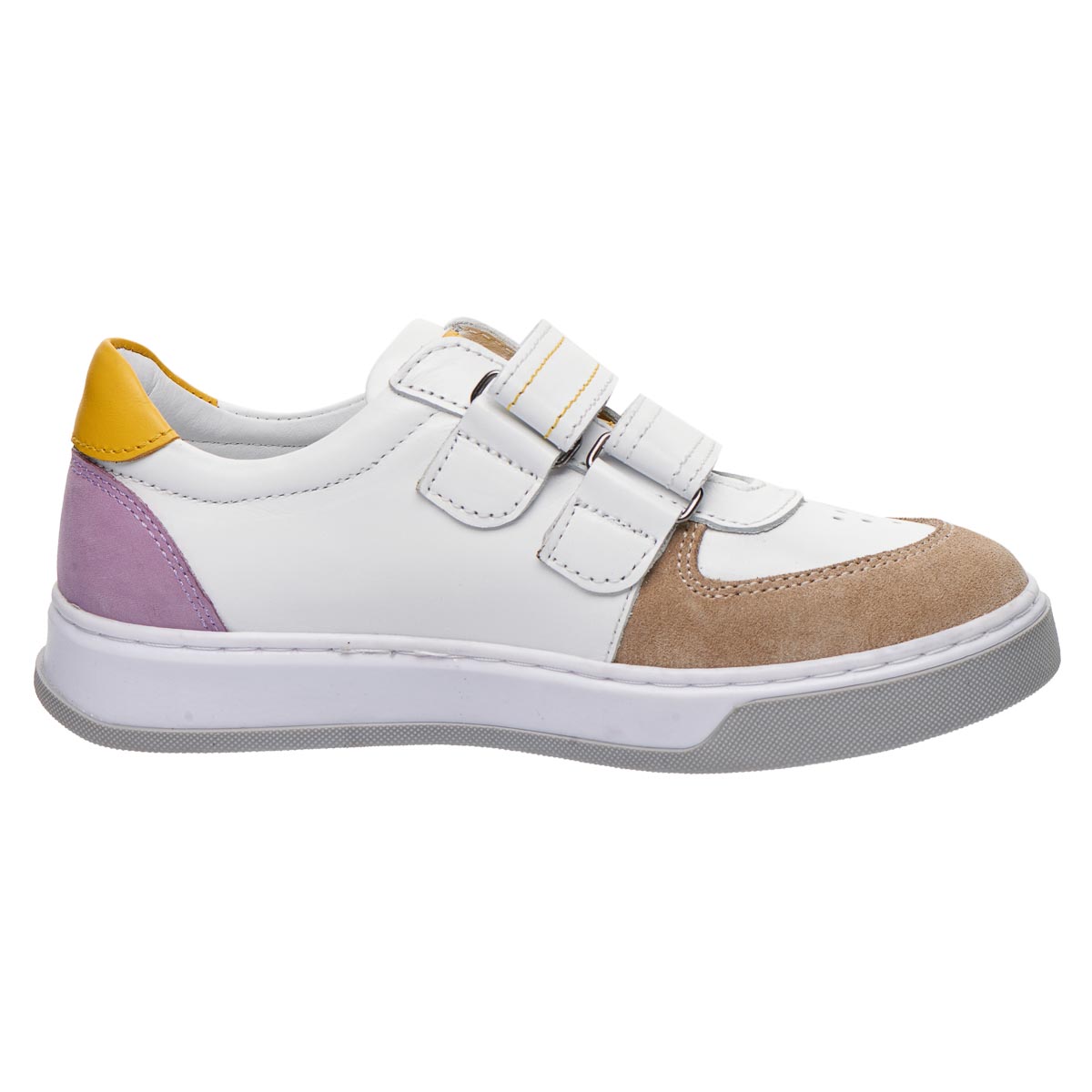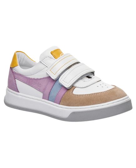 Кеди для дівчат, поєднують у собі сміливу комбінацію кольорів і фактур, що робить їх ідеальним вибором для будь-якого образу. Виконані з натуральної шкіри та нубуку. Застібки липучки забезпечать індивідуальну посадку на ніжці. Оснащені анатомічним супінатором для правильної підтримки дитячої стопи. Підошва – з термопластичної гуми. Ідеальний варіант для дівчинки, яка любить моду і комфорт!