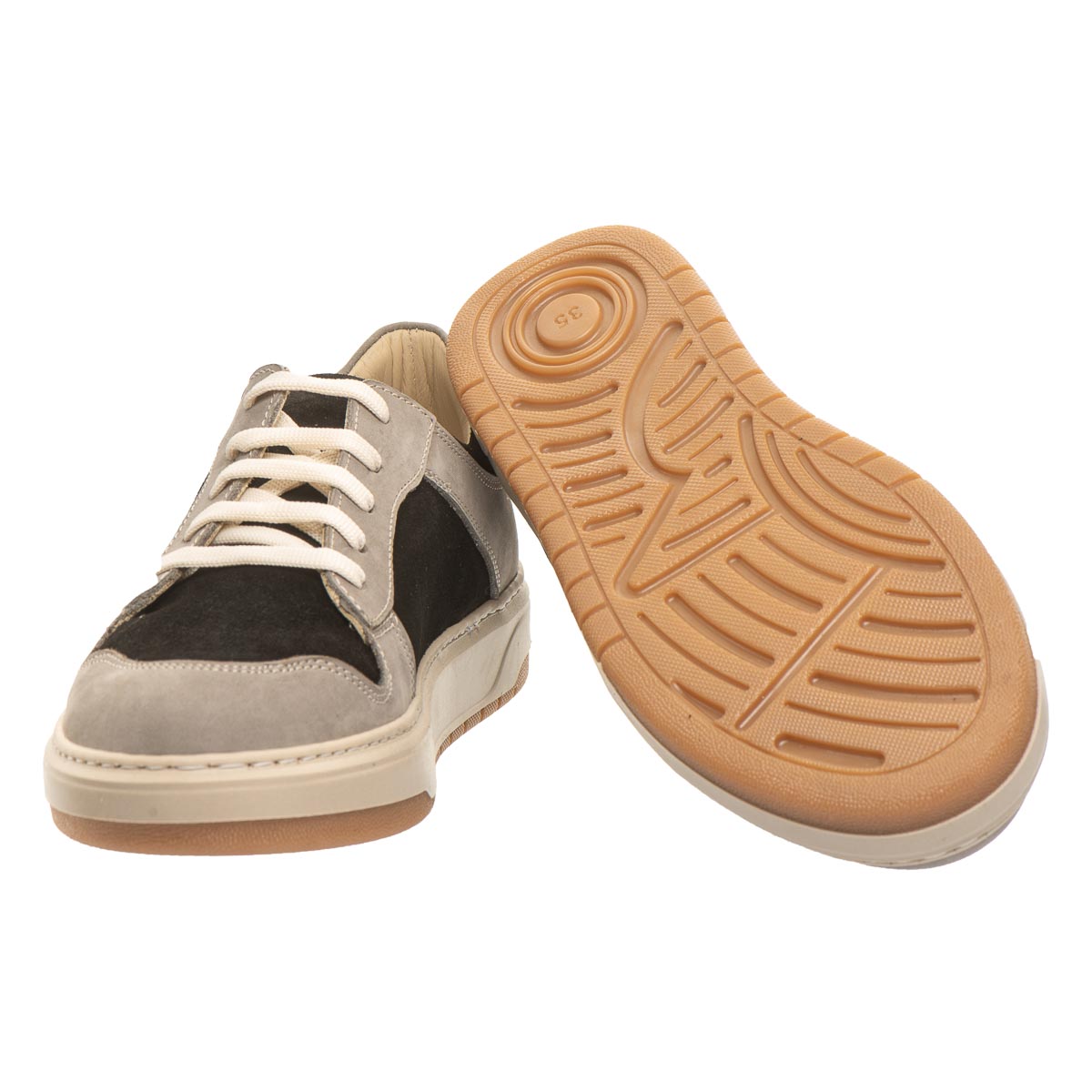 Класичні кеди на шнурівці – ідеальний вибір для дітей і підлітків. Модель вирізняється двокольоровим дизайном з натуральної нубукової шкіри. Усередині — підкладка й устілка з натуральної шкіри з анатомічним супінатором, що підтримує правильне положення стопи та пом’якшує удари під час ходьби. Підошва виготовлена з термопластичної гуми — зносостійкої, гнучкої, нековзної та з хорошими амортизаційними властивостями. Ці кеди — поєднання стилю, якості та турботи про здоров’я дитячих ніг.