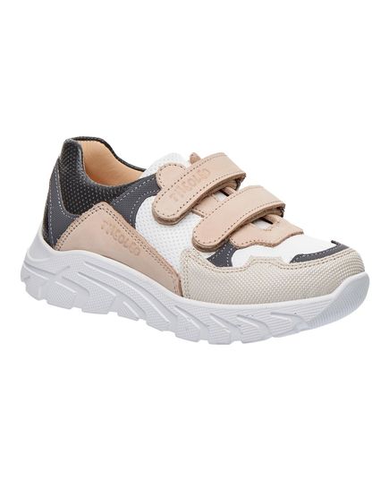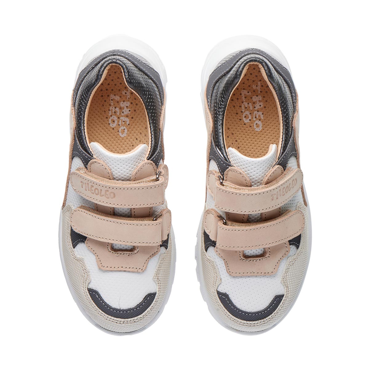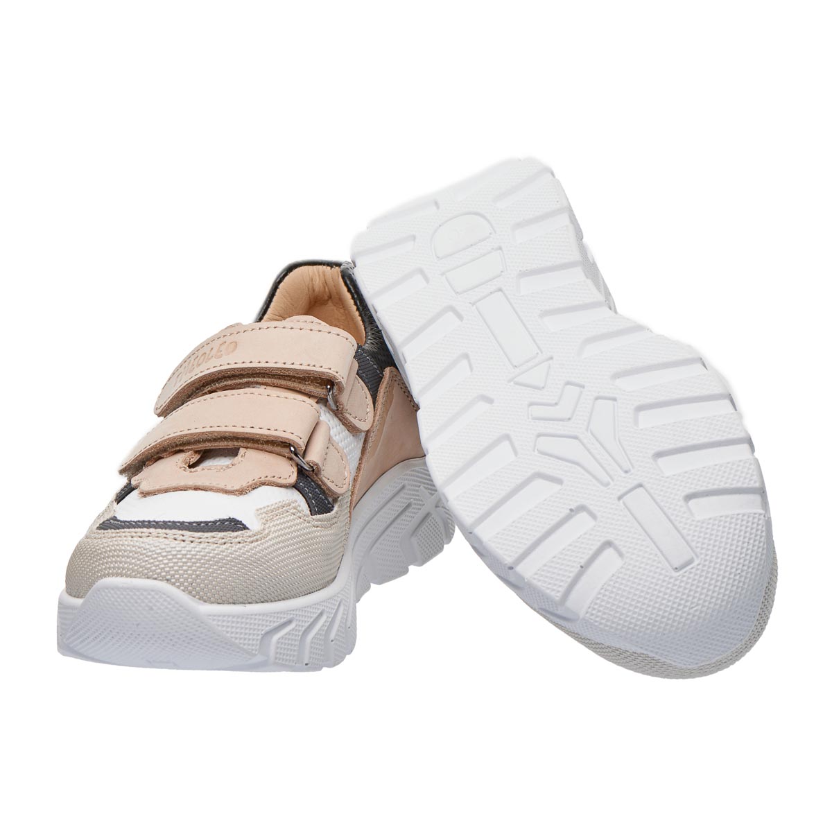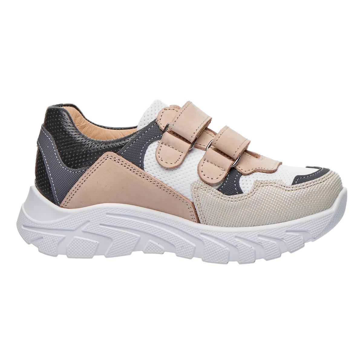 Дитячі кросівки мають спортивний дизайн, який поєднує в собі натуральну шкіру та нубук. Особлива конструкція передньої частини кросівок захищає від збиття. Оснащені анатомічним супінатором для правильного формування стопи та комфорту при ходьбі. Підошва з термопластичної гуми. Завдяки розумному поєднанню бежевого, білого та темно-сірого кольорів, ці взуття стануть чудовим доповненням до будь-якого образу.