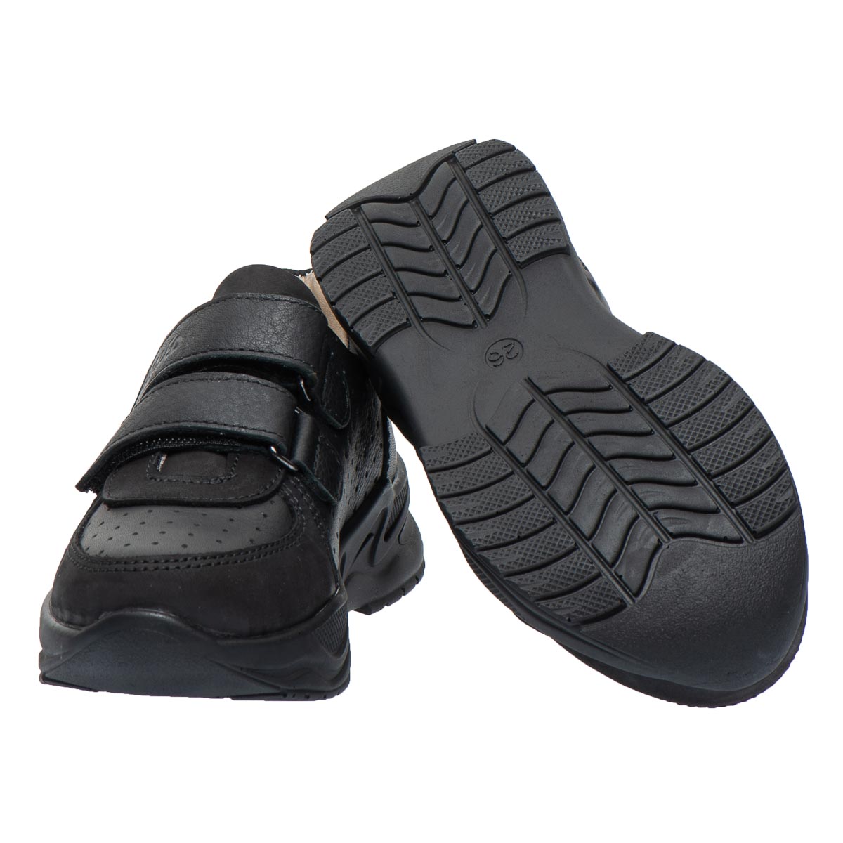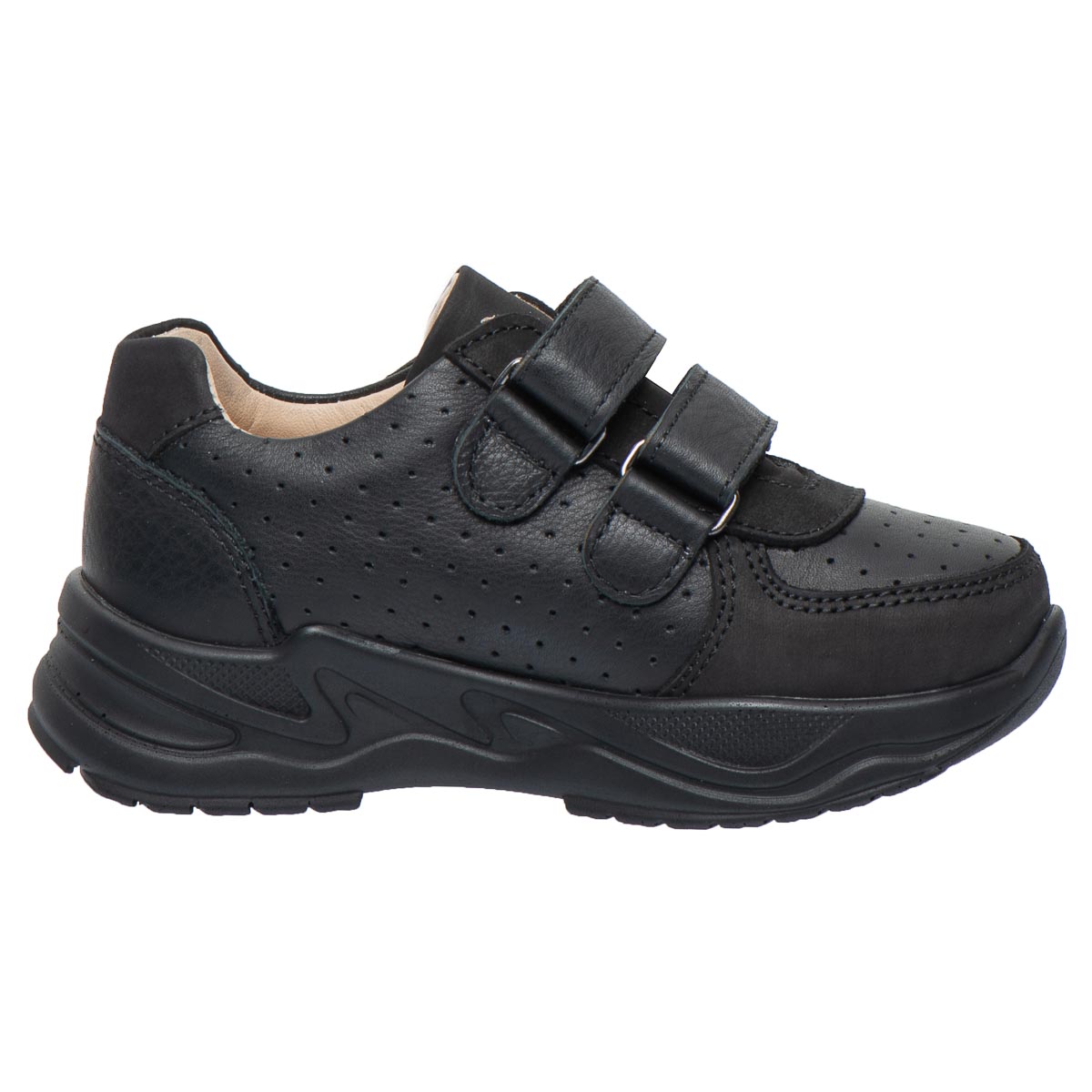 Дитячі кросівки з натурального нубуку та шкіри. Класичний чорний дизайн поєднує стиль і практичність. Завдяки застібкам на липучках взуття легко взувати та знімати, що особливо зручно для дітей. Підошва з термопластичної гуми забезпечує гнучкість і стійкість, а шкіряна підкладка та устілка з анатомічним супінатором - комфорт і правильну підтримку стопи.