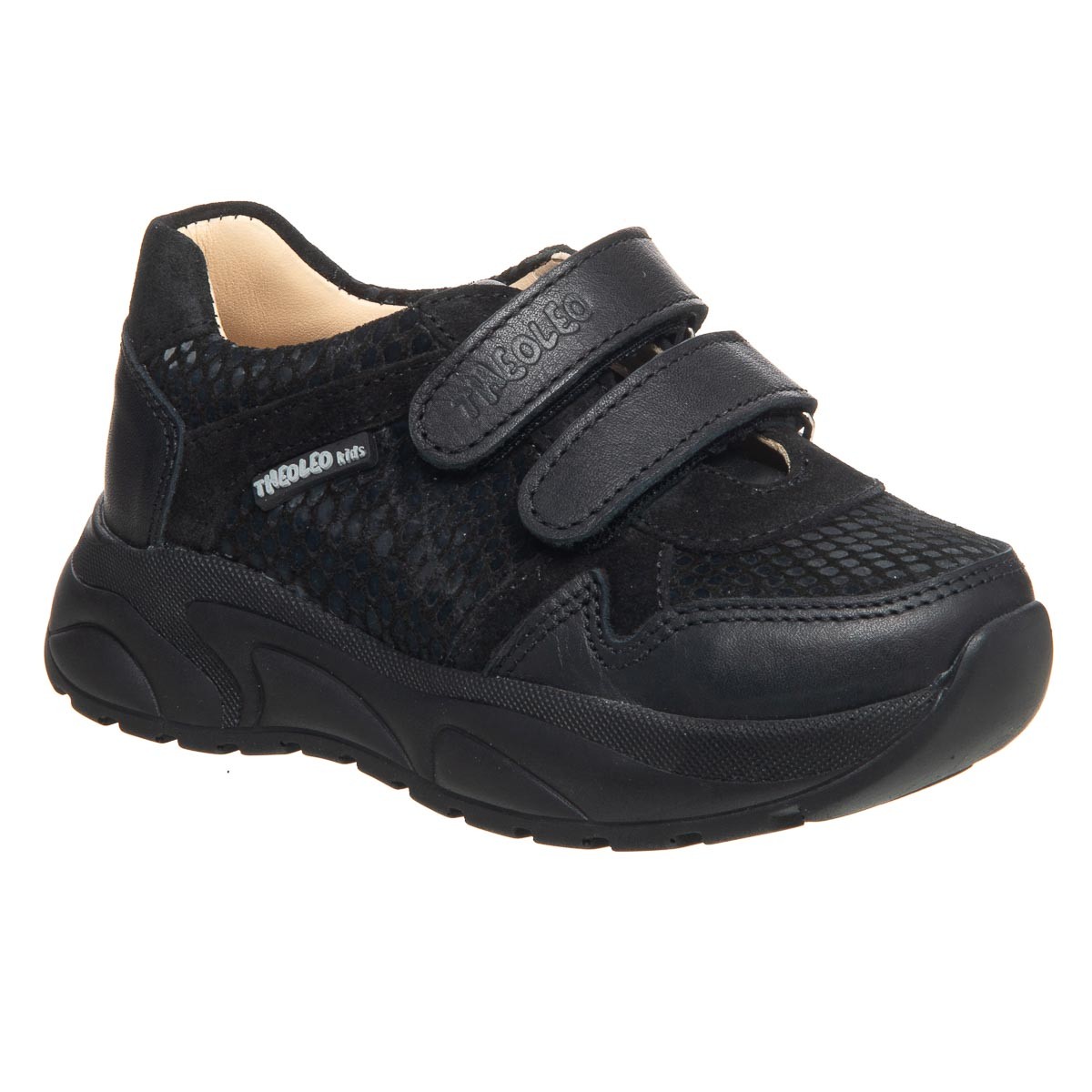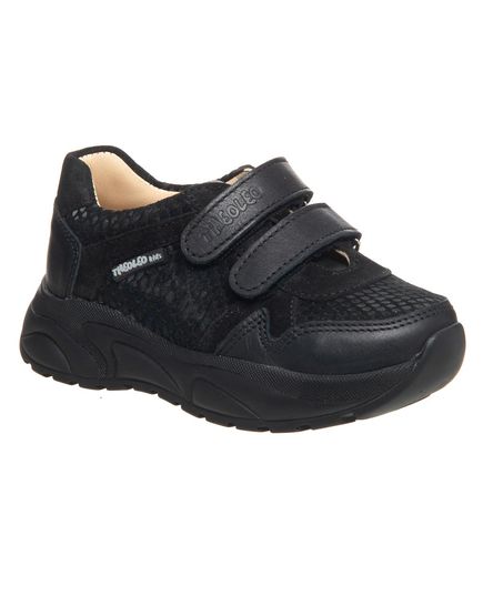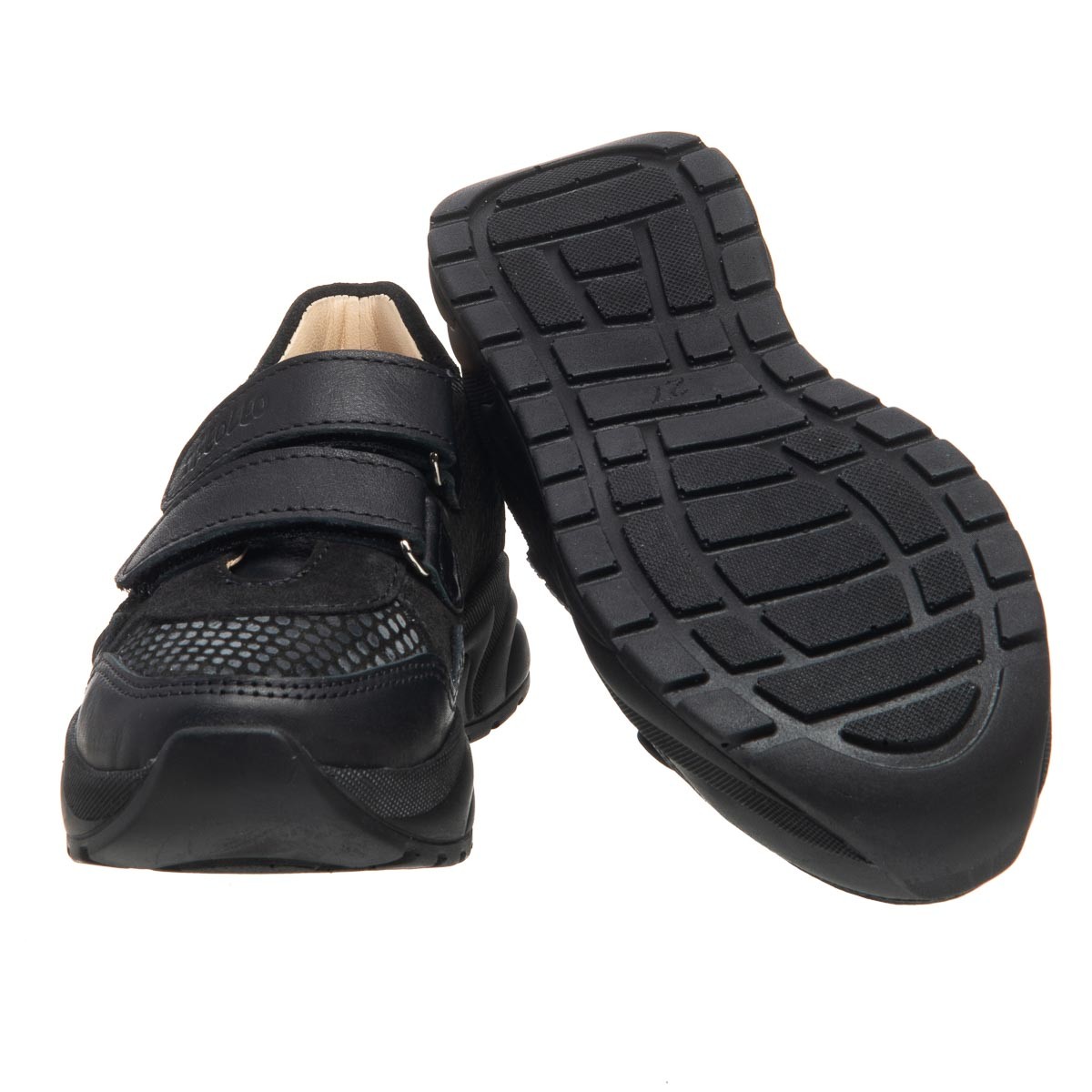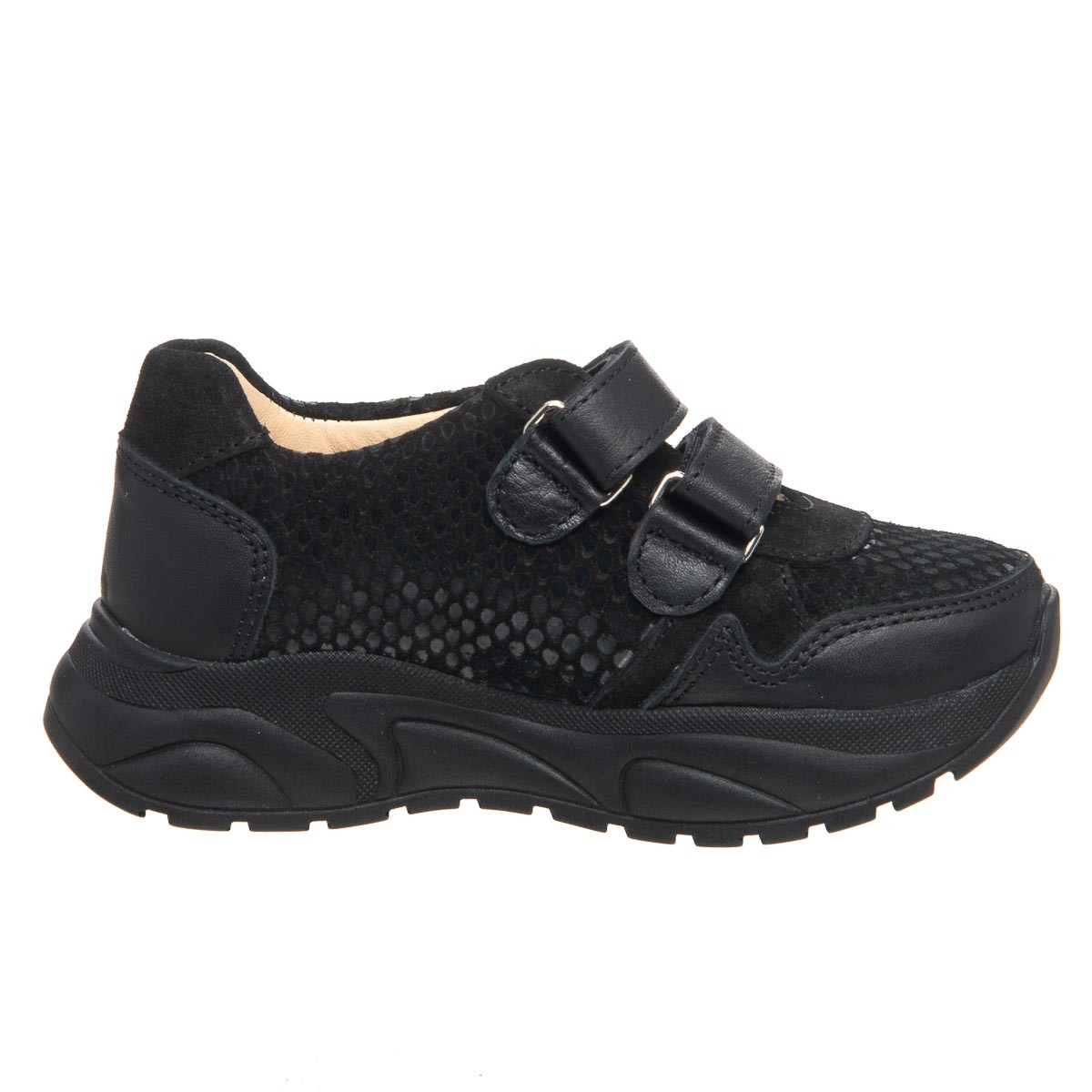 Кросівки для дівчинки чорного кольору, виконані з натурального нубуку та шкіри. Високоякісні матеріали гарантують довговічність і комфорт протягом усього дня. Дві липучки-застібки дозволяють легко надягати та знімати взуття. Ортопедична устілка з анатомічний супінатор підтримує правильне положення стопи, зменшуючи навантаження на суглоби та м'язи. А жорсткий задник надає додаткову підтримку. Підошва з термопластичної гуми. Ідеальний вибір як для носіння в школу, так і для активного відпочинку поза її стінами.