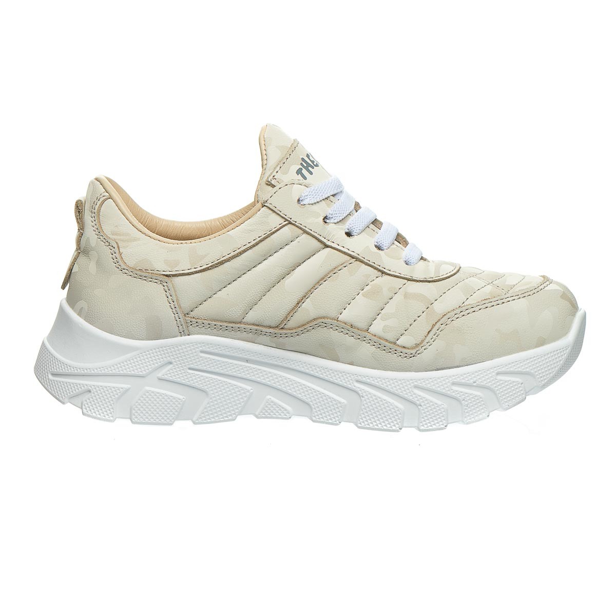 Бежеві кросівки для дівчинки з оригінальним малюнком «мілітарі» стануть відмінним вибором для модних та стильних дівчат. Виконані з натуральної шкіри. Шнурки забезпечують відмінну фіксацію на нозі. Ортопедична устілка з анатомічний супінатор підтримує правильне положення стопи, зменшуючи навантаження на суглоби та м'язи. А жорсткий задник надає додаткову підтримку. Підошва з термопластичної гуми. Завдяки унікальному дизайну ці кросівки стануть особливим акцентом у гардеробі вашої маленької модниці.