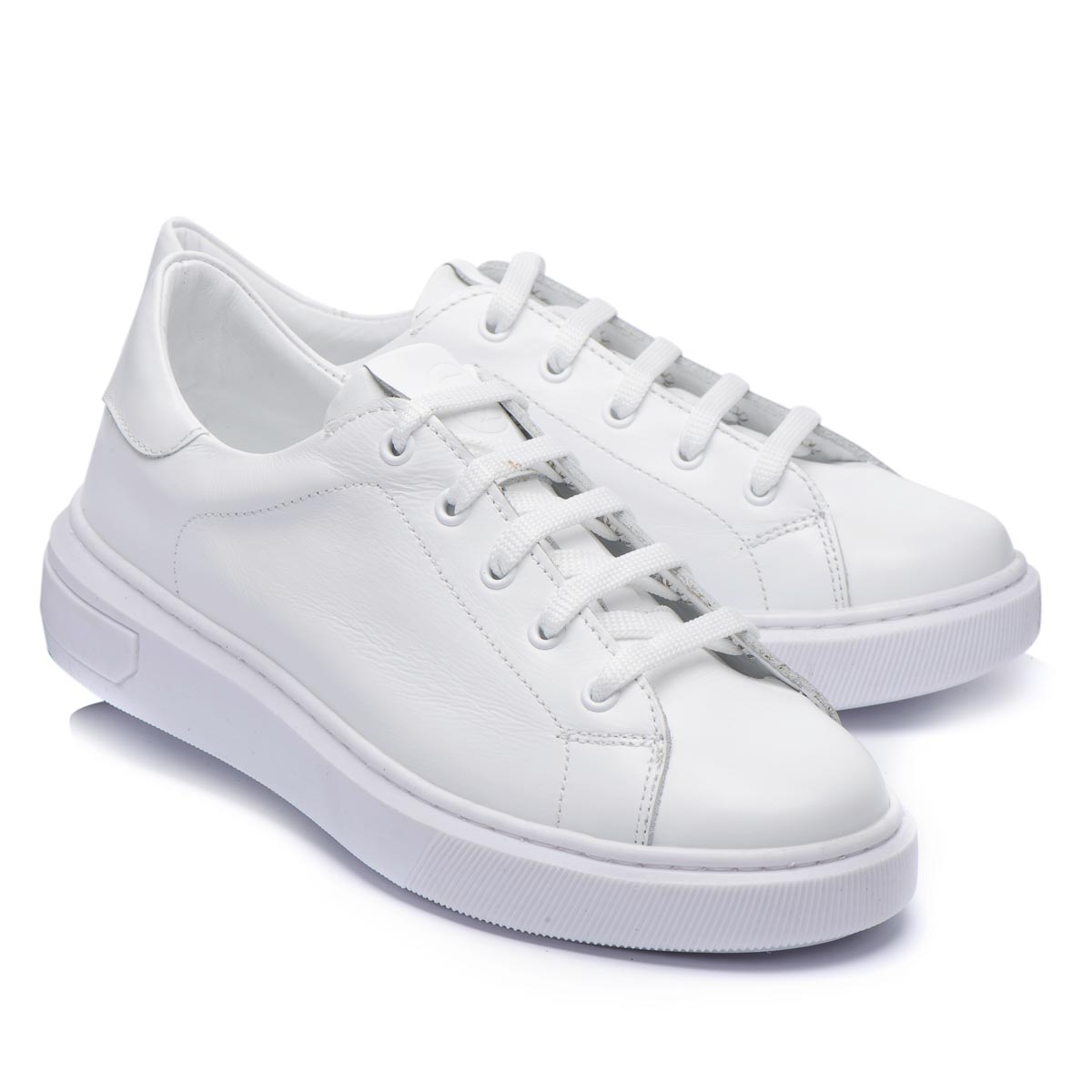 Білі кеди - втілення класичного стилю. Виконані з натуральної шкіри. Для надійної фіксації на нозі використовуються шнурки. Модель має анатомічний супінатор для правильної підтримки стопи. Дана модель відмінно поєднується як з шкільною формою, так і з повсякденним стилем, відтак, вони стануть в нагоді у будь-якій ситуації.