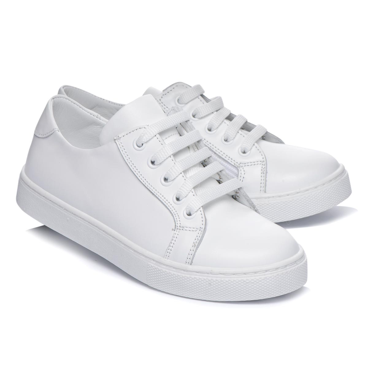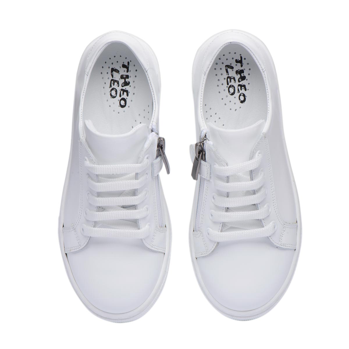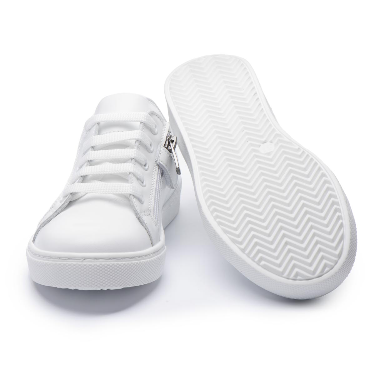 Стильні та практичні білі кросівки на блискавці, виконані з натуральної шкіри. Ці кросівки відрізняються своїм мінімалістичним дизайном та універсальністю, що робить їх ідеальним вибором для будь-якого випадку. Для надійної фіксації на нозі використовуються шнурки, а для легкості зняття - блискавка. Гнучка підошва з термопластичної резини і зручна устілка з анатомічним супінатором гарантують комфорт протягом усього дня. Їх можна легко поєднувати як з повсякденним, так і зі спортивним стилем, що робить їх універсальним вибором для будь-якої дівчинки.
