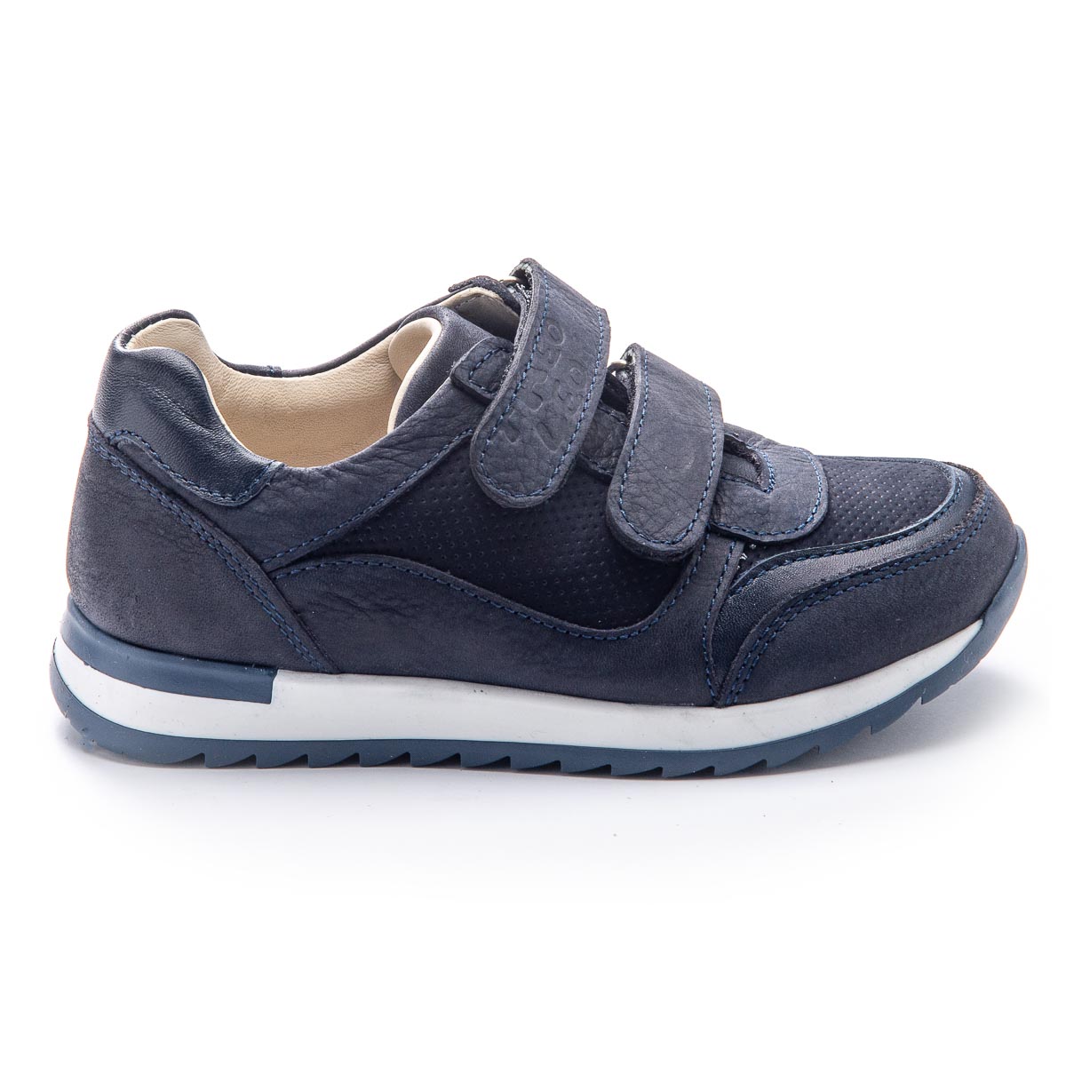Шкіряні кросівки темно-синього кольору - ідеальний вибір для дітей і підлітків, які віддають перевагу повсякденному casual стилю. В якості застібок використовуються дві надійні липучки. Устілка з анатомічним супінатором забезпечить правильне положення стопи, а жорсткий задник надасть додаткову підтримку. Гнучка підошва з термопластичної гуми. Ці кросівки - не лише стильний елемент гардеробу вашої дитини, вони також забезпечать необхідний комфорт і підтримку для ніг.