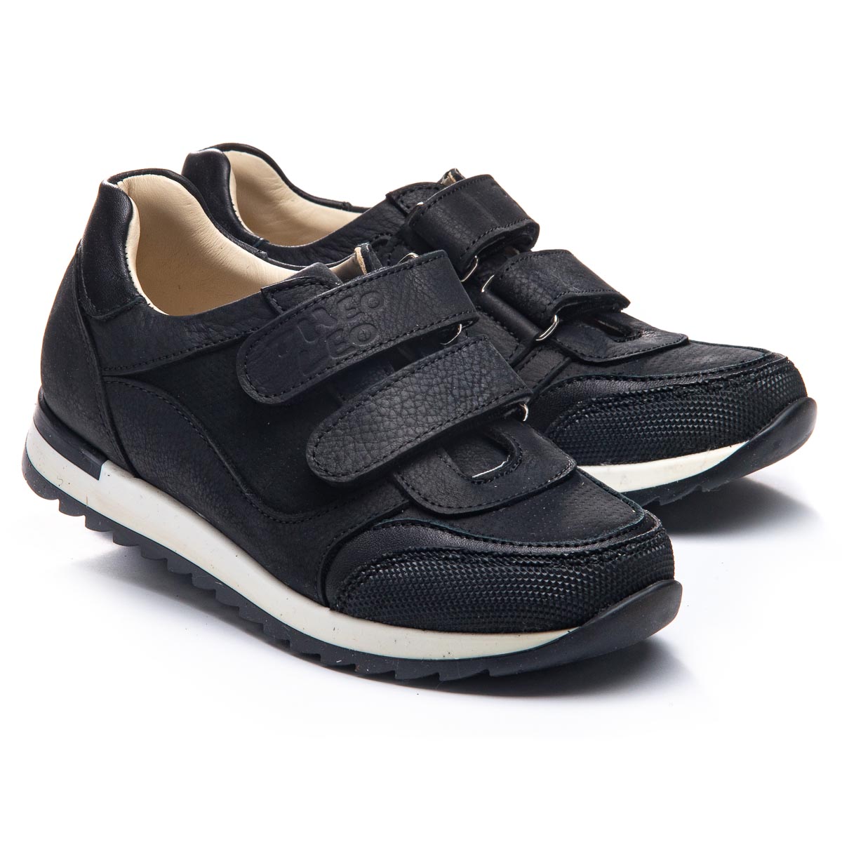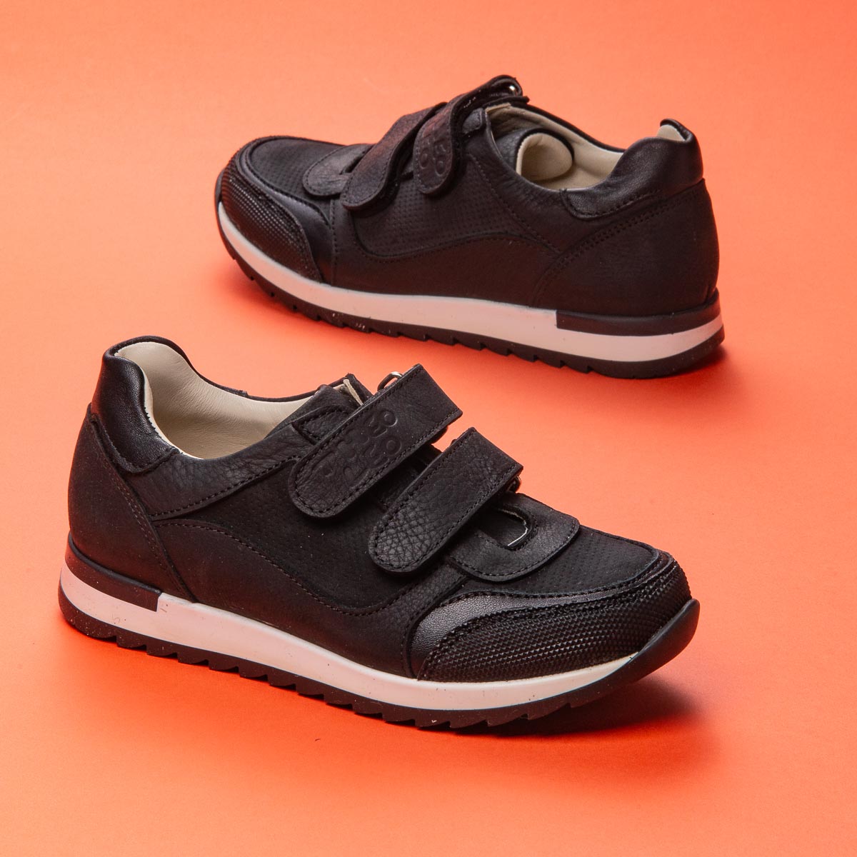 Вашій дитині потрібні зручні та стильні кросівки? Пропонуємо чорні шкіряні кросівки, виготовлені з натуральної шкіри. В якості застібок використовуються дві надійні липучки. Спеціальні властивості цього взуття спрямовані на забезпечення здорового розвитку стопи вашої дитини. Устілка з анатомічним супінатором забезпечить правильне положення стопи, а жорсткий задник надасть додаткову підтримку. Гнучка підошва з термопластичної гуми. Такі кросівки не тільки стильні та зручні, але й сприяють правильному розвитку стопи вашої дитини.