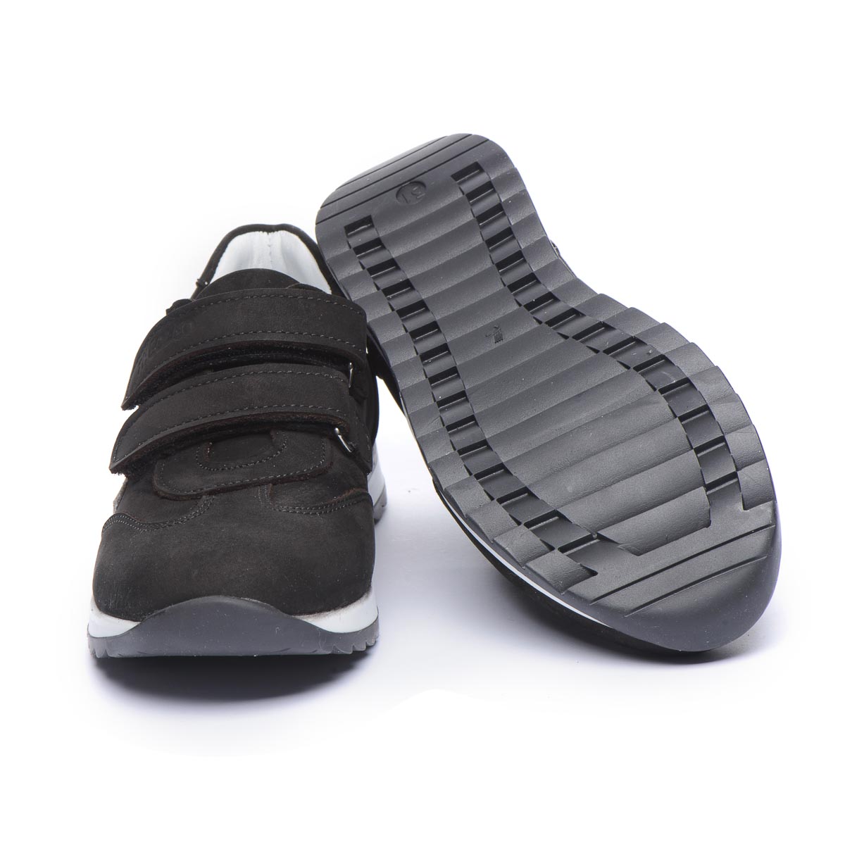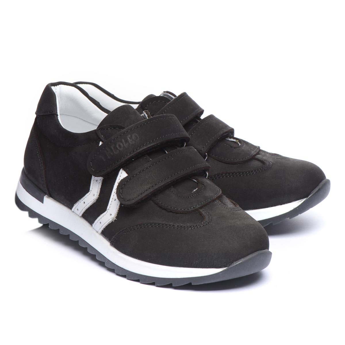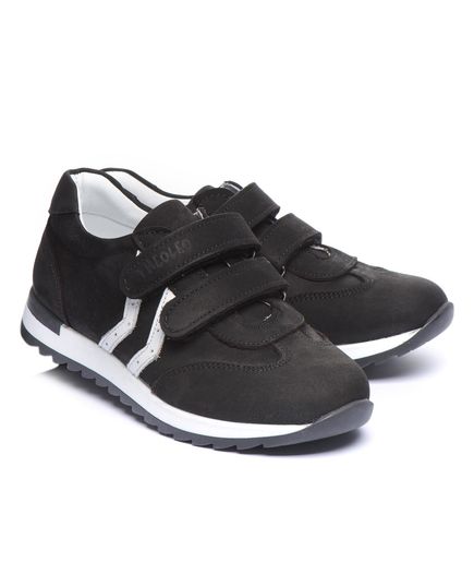 Представляємо стильні та практичні кросівки для хлопчиків, виготовлені з натурального нубуку чорного кольору, доповненого білими шкіряними вставками. Дві зручні липучки дозволяють швидко та легко взувати кросівки, що особливо важливо для активних дітей. Кросівки мають гнучкою підошвою для забезпечення природного руху стопи. Ортопедична устілка з анатомічний супінатор підтримує правильне положення стопи, зменшуючи навантаження на суглоби та м'язи. А жорсткий задник надає додаткову підтримку. Чорний колір робить їх універсальними для будь-яких подій, ідеально підходять як для школи, так і для відпочинку.
