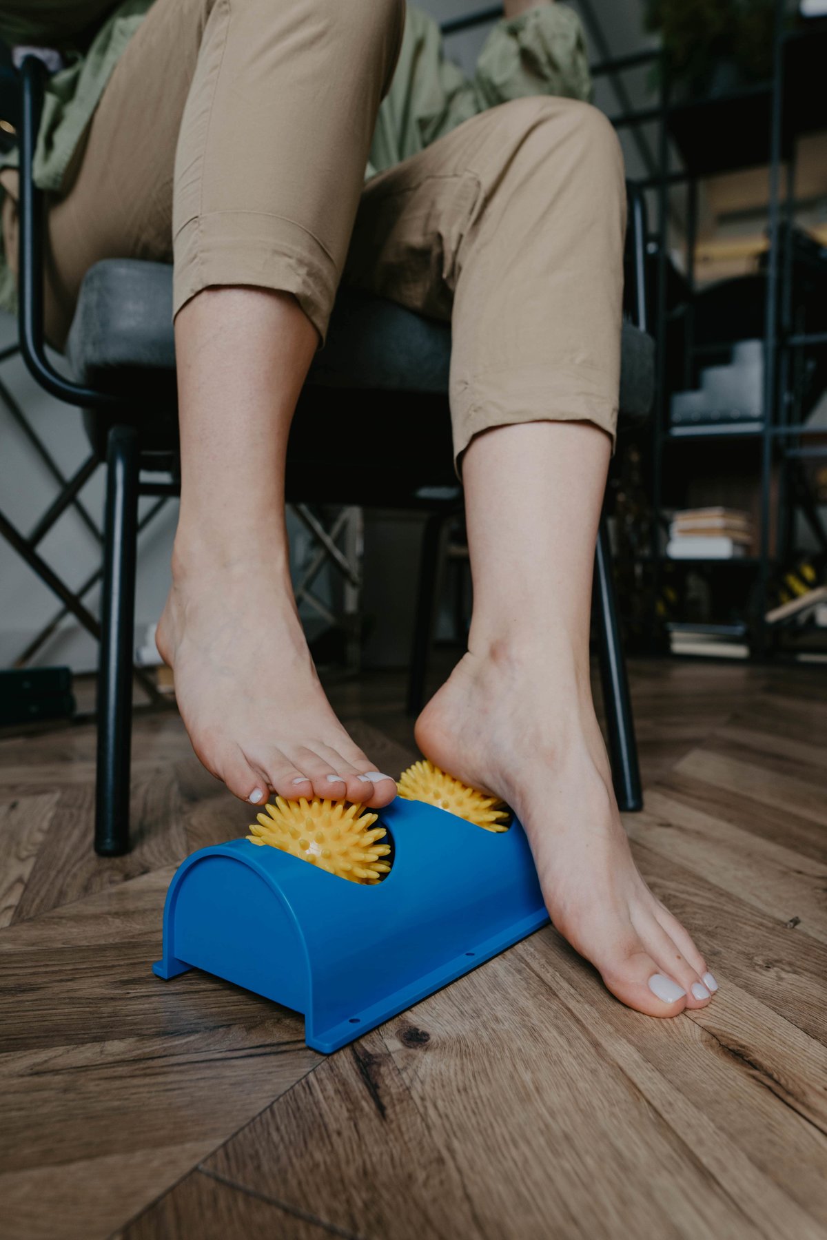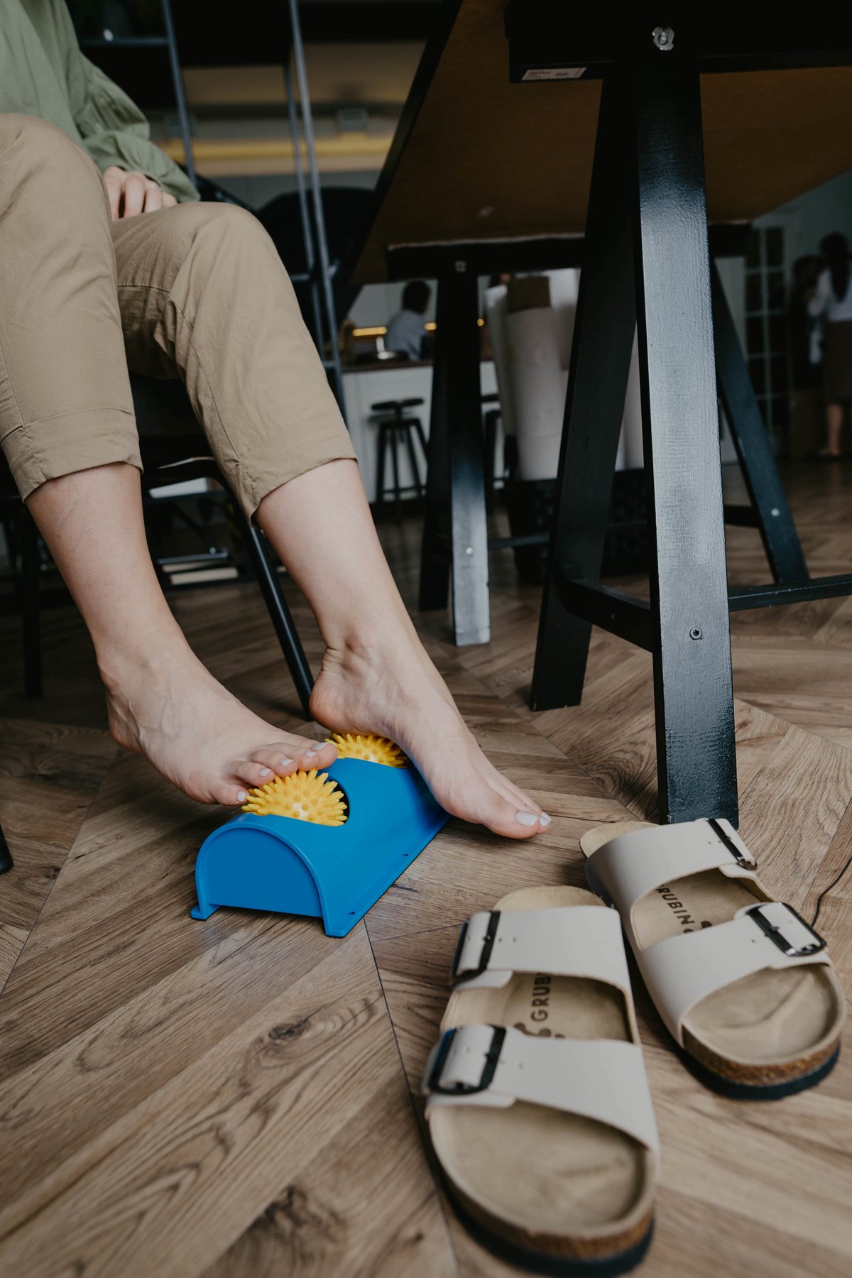 Масажер для ніг (м'ячі гольчасті на підставці) - це ефективний засіб для самомасажу стоп. Він надає рефлексогенні вплив, активізує біологічно активні точки на стопі, забезпечує профілактику і лікування плоскостопості. Самомасаж такими м'ячиками на підставці забезпечує зменшення болю, зняття втоми, поліпшення обміну речовин і кровообігу в стопах. Застосування такого масажера розвиває вестибулярний апарат у дітей і людей з обмеженими можливостями.Функції:• поліпшення мікроциркуляції крові внутрішньої поверхні стопи• активізація біологічно активних точок на стопі• седативна дія на центральну нервову систему• розслабляюча і тонізуюча дія на стопи і організм в цілому• зниження стомлюваності стоп при тривалій сидячій роботіПоказання:• плоскостопість (поздовжня, поперечна, комбінована)• подагра• п'яткова шпора• халюс вальгус (кісточка на великому пальці стопи)• варусна деформаціяМатеріал: міцний, гіпоалергенний, високотехнологічний полімерний матеріал PVC.