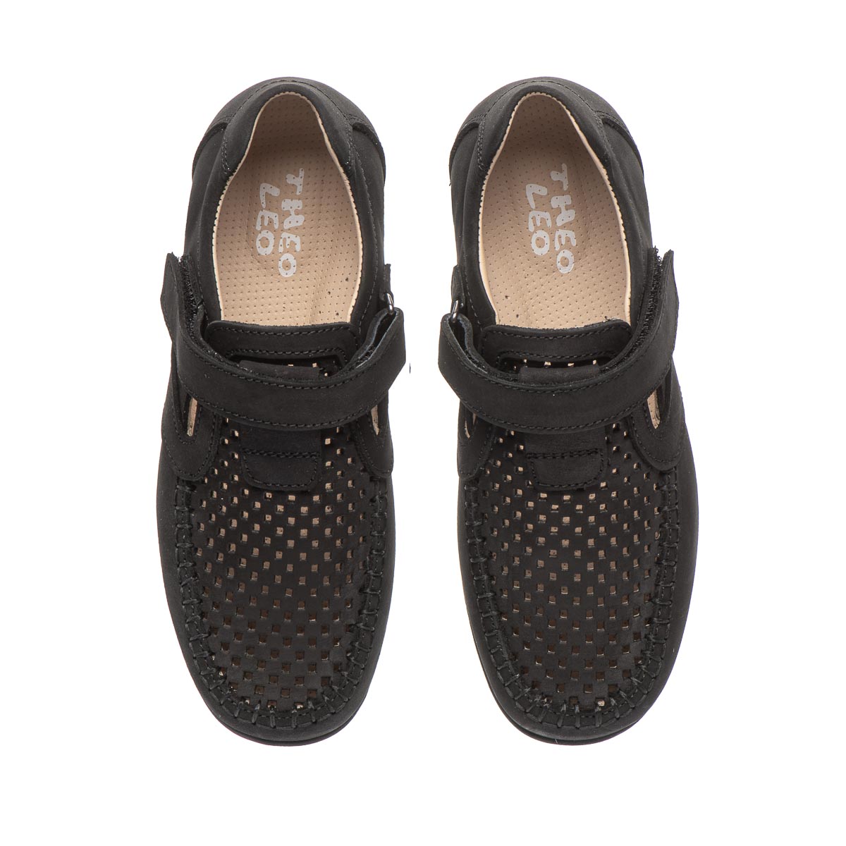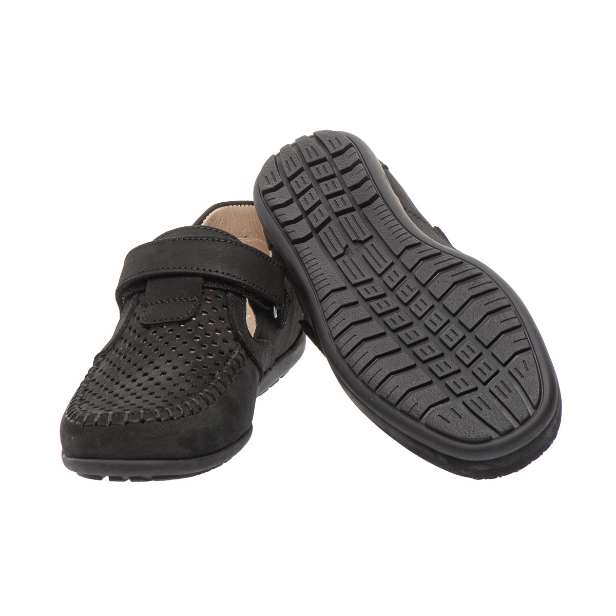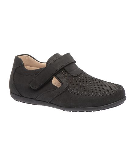 Мокасинами для хлопчиків, виготовлені з високоякісної натурального нубуку чорного кольору, вони забезпечують неперевершений зовнішній вигляд. Перфорація на передній частині не лише додає елегантності, але й забезпечує відмінну вентиляцію, роблячи взуття ідеальним вибором для теплої погоди. Зручна застібка на липучці дозволяє легко зафіксувати взуття по ніжці. Підошва з термопластичної гуми. Ці мокасини – вишуканий вибір для хлопців, які цінують якість, комфорт та хочуть виглядати стильно кожен день.