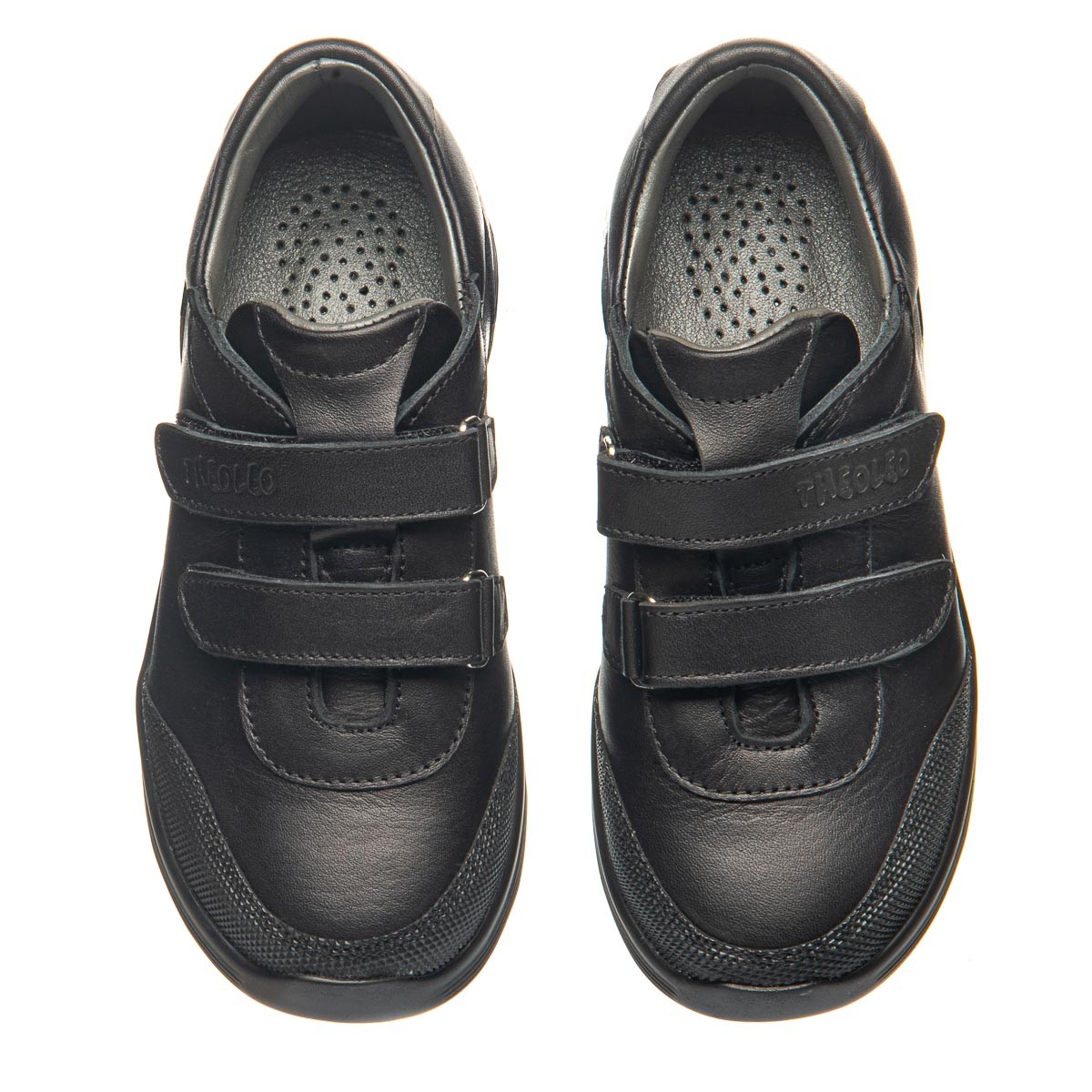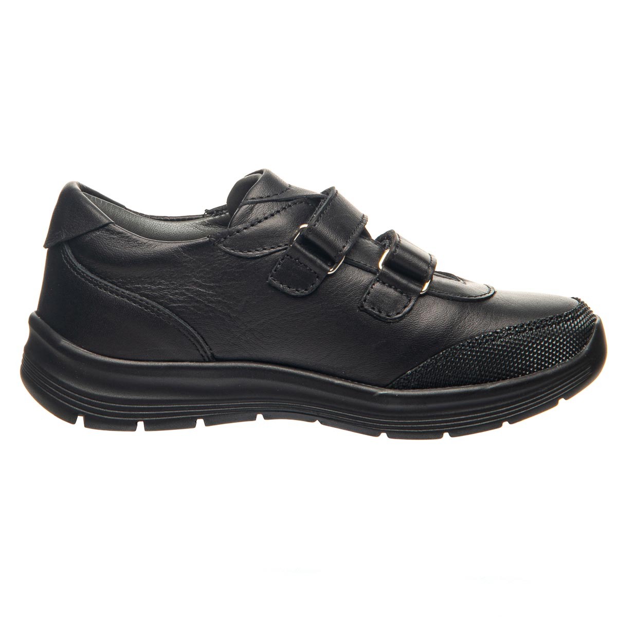 Мокасини для хлопця виготовлені з натуральної шкіри чорного кольору. Від іншого аналогічного взуття їх вирізняє додатковий захист від збиття. Оснащені двома липучками, вони забезпечують надійну фіксацію на нозі, дозволяючи швидко та легко взуватися. Устілка та підкладка, виконані з натуральної шкіри, устілка має анатомічний супінатор. Підошва з термопластичної гуми. Ця пара взуття не тільки виглядає елегантно, але й забезпечує максимальний комфорт.