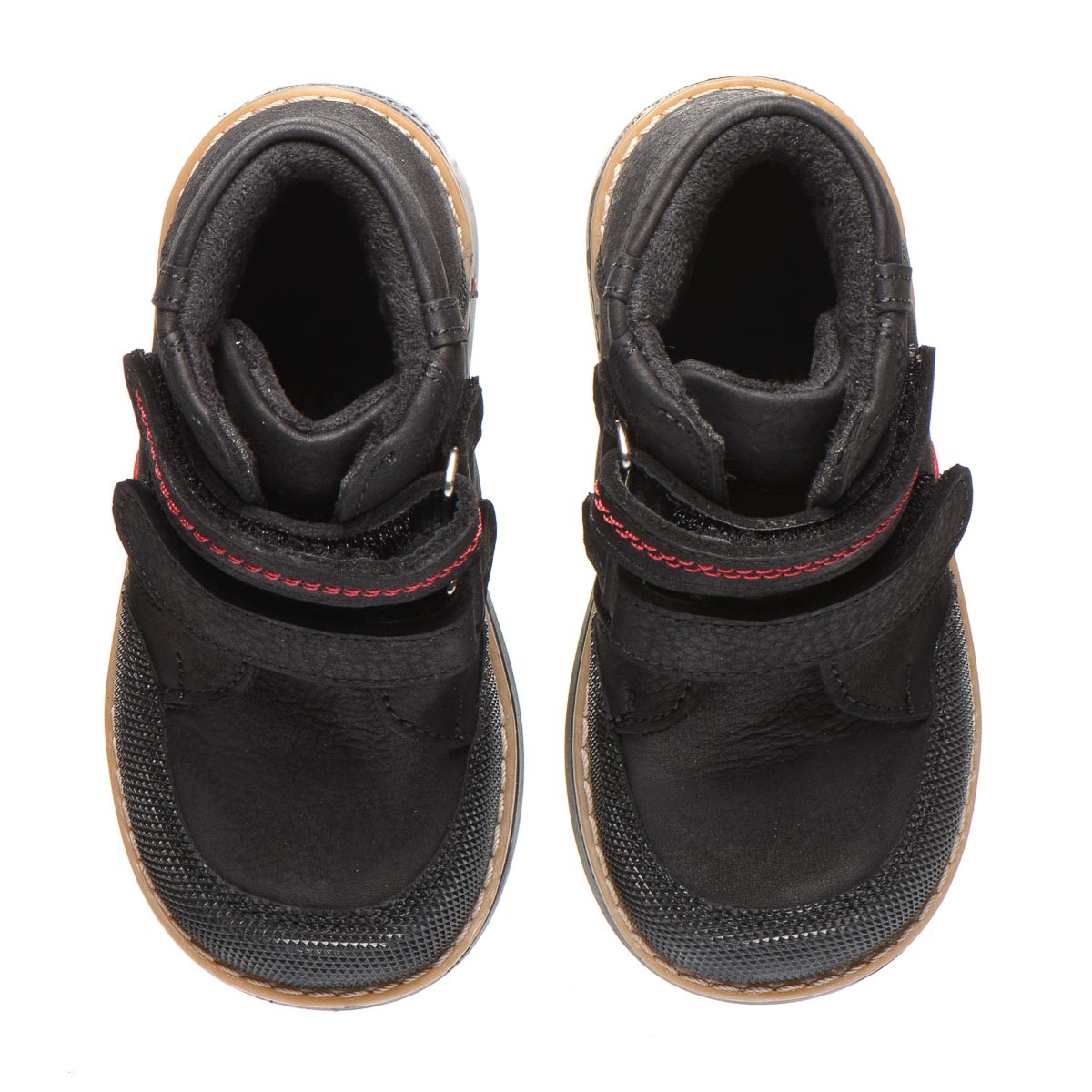 Демісезонні черевики виготовлені з натуральної шкіри, внутрішня підкладка з флісу. Ці черевики ідеальні для походу до дитячого садочка та активних прогулянок маленьких діток. Мають анатомічний супінатор і каблук Томаса, які сприяють здоровому розвитку дитячих ніжок. Оснащені двома липучками для легкого взування, а носова частина взуття укріплена "невбивайкою", що надає додатковий захист.