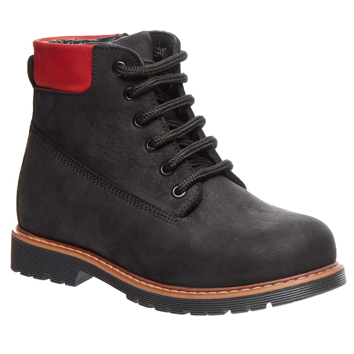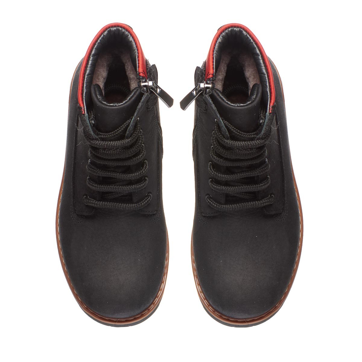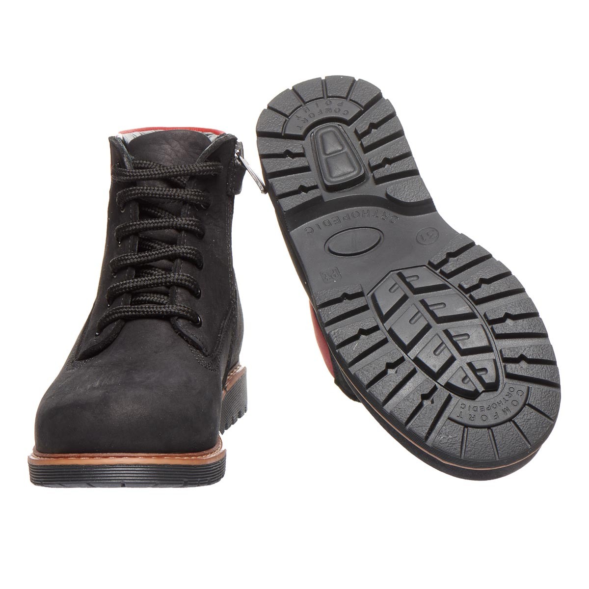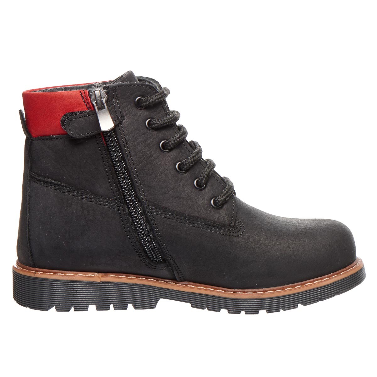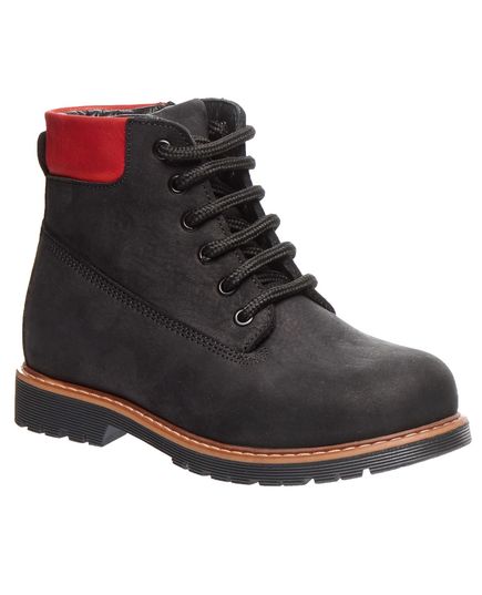 Зимові черевики з натурального нубуку, оснащені блискавкою, доповнені стильною червоною вставкою по канту з заду. Підкладка та устілка виконані з натурального хутра, а устілка додатково оснащена супінатором для підтримки здорового розвитку стопи. Підошва з каблуком Томаса, виготовлена з термопластичної гуми, забезпечує надійне зчеплення, комфортну амортизацію, і не ковзає навіть на слизьких поверхнях.