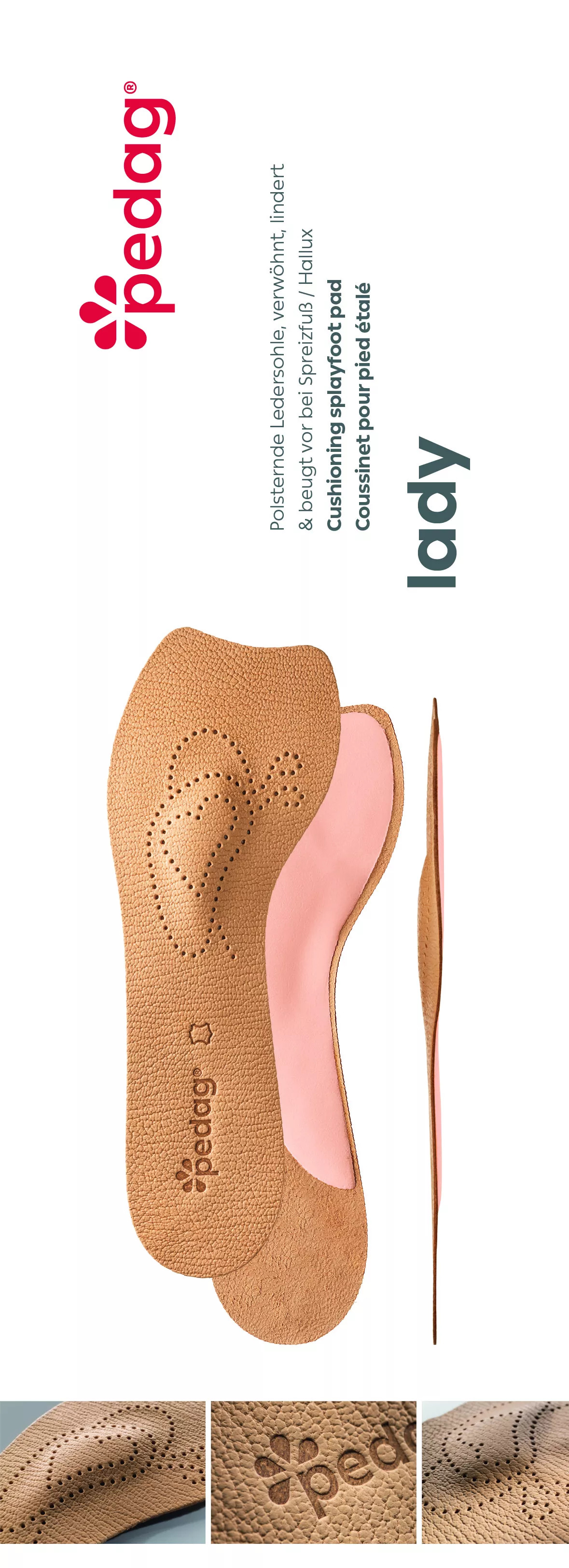 Часте носіння взуття на високих підборах може зашкодити здоров'ю ніг. У такому положенні близько 75% ваги припадає на передню частину стопи, що спричиняє розвиток плоскостопості та інших серйозних патологій. PEDAG Lady розроблені, щоб мінімізувати навантаження та запобігти больовим відчуттям.