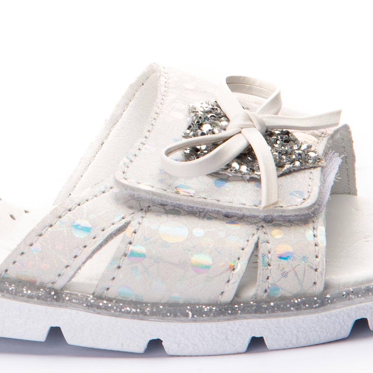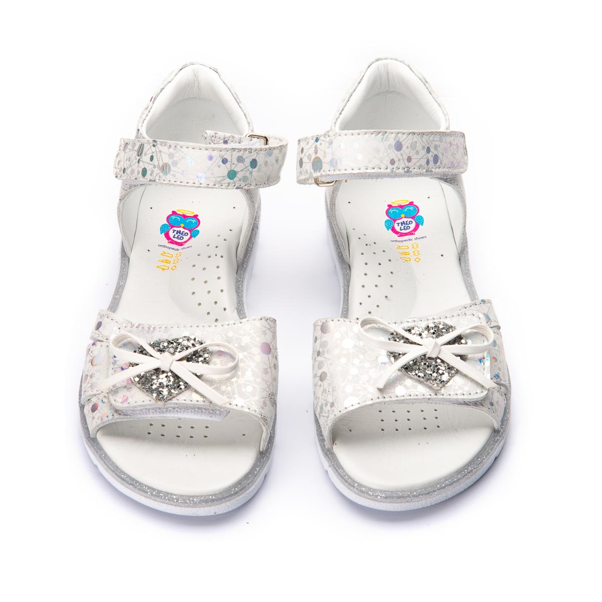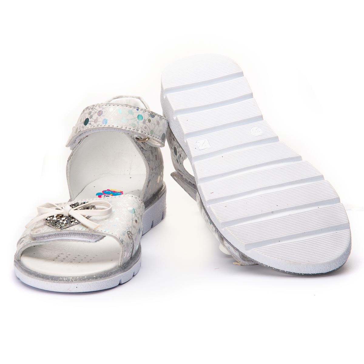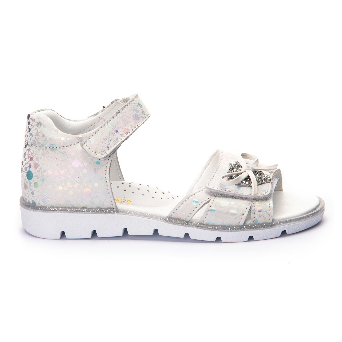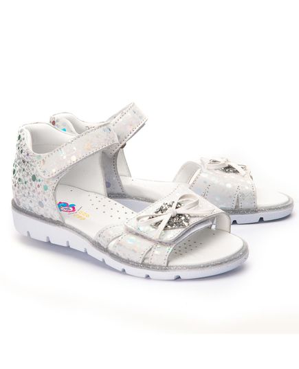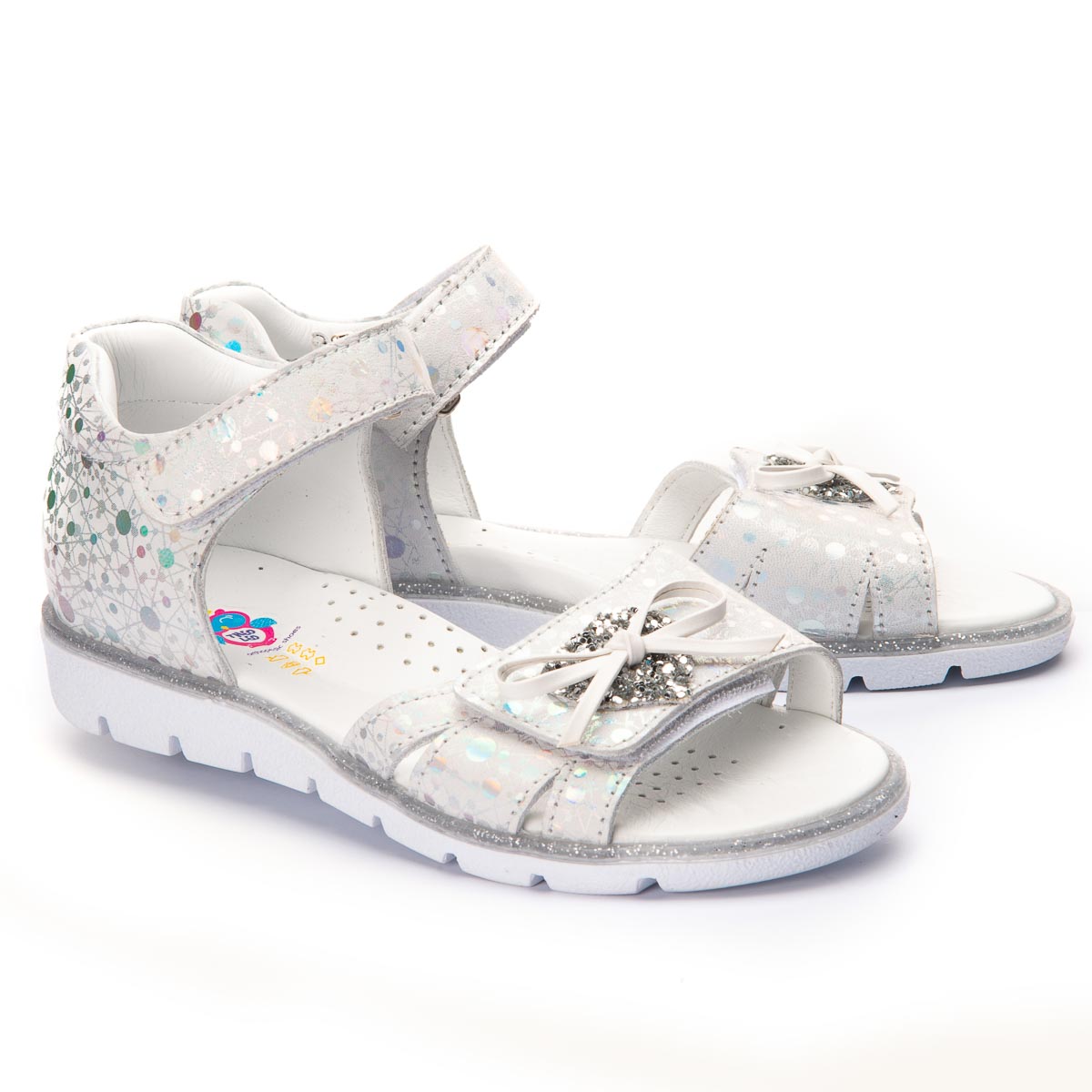 Шкіряні дитячі сандалі в біло-сріблястому кольорі та декор з паєток у формі серця, на верхній частині, додадуть витонченості та очарування взуттю. Оснащені міцними липучками: одна широка перетинає передню частину стопи, а інша забезпечує додаткову підтримку, охоплюючи щиколотку - призначені для легкої регуляції розміру та комфорту під час носіння. Підошва виготовлена з термопластичної гуми, що дає чудову амортизацію і тривалу зносостійкість. Устілка з анатомічним супінатором. Оцінить комфорт і зручність вже при першому кроці.