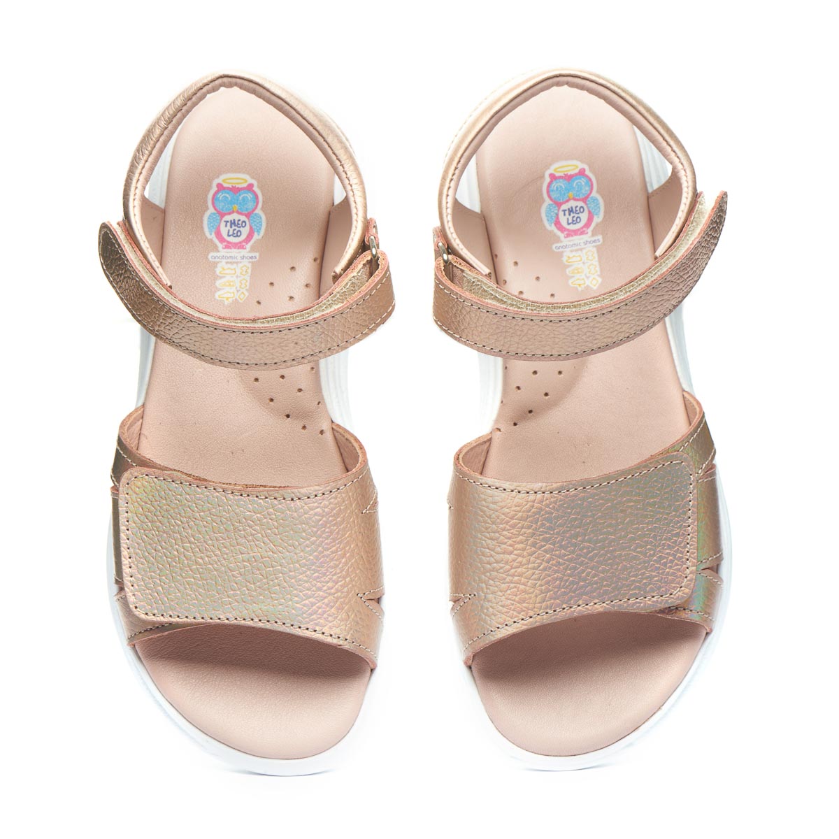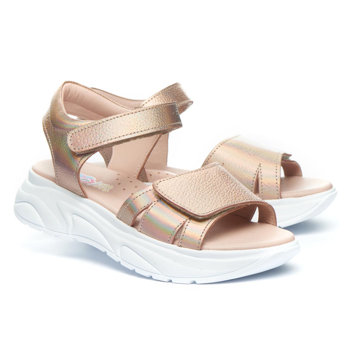 Відкриті літні шкіряні сандалі у теплому бронзовому відтінку, додадуть легкості й вишуканості до зовнішнього вигляду. Подвійні регульовані ремінці з липучками допоможуть ідеально підігнати сандалі до ніжки: вузькі липучки дозволяють легко знімати та одягати взуття, а широкі липучки - легко регулювати їх посадку на нозі. Вбудований супінатор забезпечить правильне положення стопи та підтримку дуги під час ходьби. Ці сандалі - це стильний і універсальний вибір в літньому гардеробі.