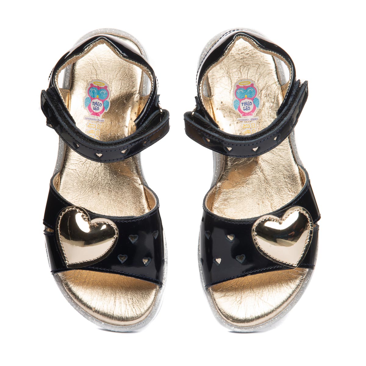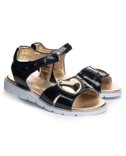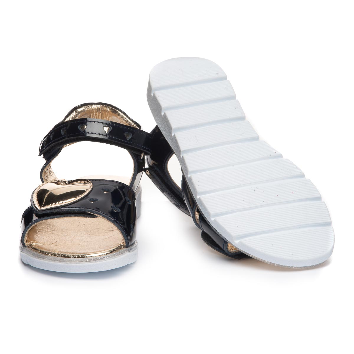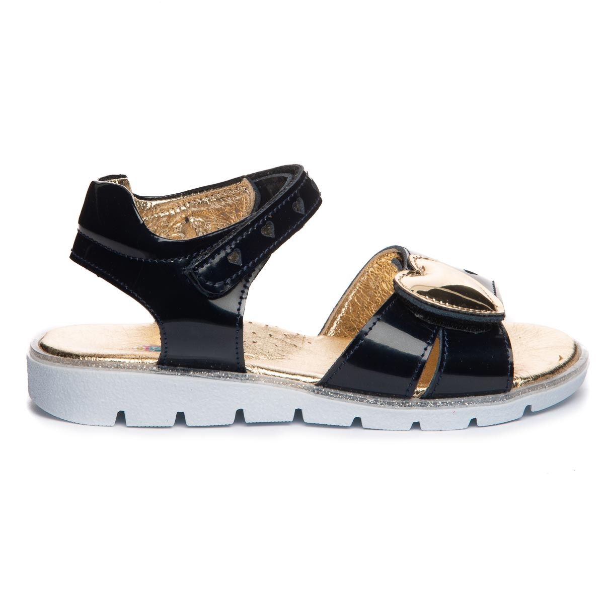 Ці елегантні лаковані сандалі для дівчинки в темно-синьому кольорі є ідеальним вибором для стильного і комфортного літнього взуття. А золота шкіряна устілка не тільки красиво виглядає, а і забезпечує додатковий комфорт під час носіння завдяки наявності анатомічного супінатора. Застібка - липучка гарантує легкість у використанні, а також допомагає ідеально підганяти взуття по ніжці. Лакована поверхня із стильним блиском виглядає дуже привабливо і робить їх ідеальними для будь-яких випадків, від повсякденного носіння до особливих подій.