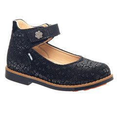 Туфлі для дівчинки виготовлені з темно-синього натурального нубука, прикрашені вишуканим золотим малюнком. Для забезпечення правильного розвитку стопи, здоров'я ніг та максимального комфорту, взуття має спеціальну конструкцію та елементи:  Устілка з анатомічним супінатором; ...