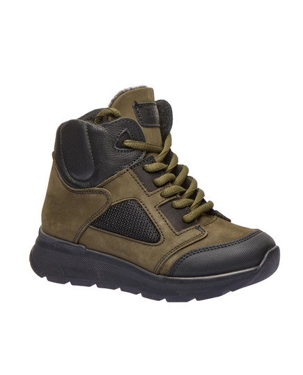 Зимові черевики для дітей різного віку — стильне та зручне рішення для холодних зимових днів. Верх взуття виготовлений із натурального нубуку кольору хакі, доповнений шкіряними та текстильними вставками для стильного вигляду. Усередині утеплені натуральною вовною для збереження тепла. Завдяки шнурівці та боковій блискавці черевики легко одягати і знімати. Устілка з анатомічним супінатором та тверда п'ята забезпечують правильний розвиток стопи. Турбота про здоров'я та комфорт ваших дітей — наш пріоритет.