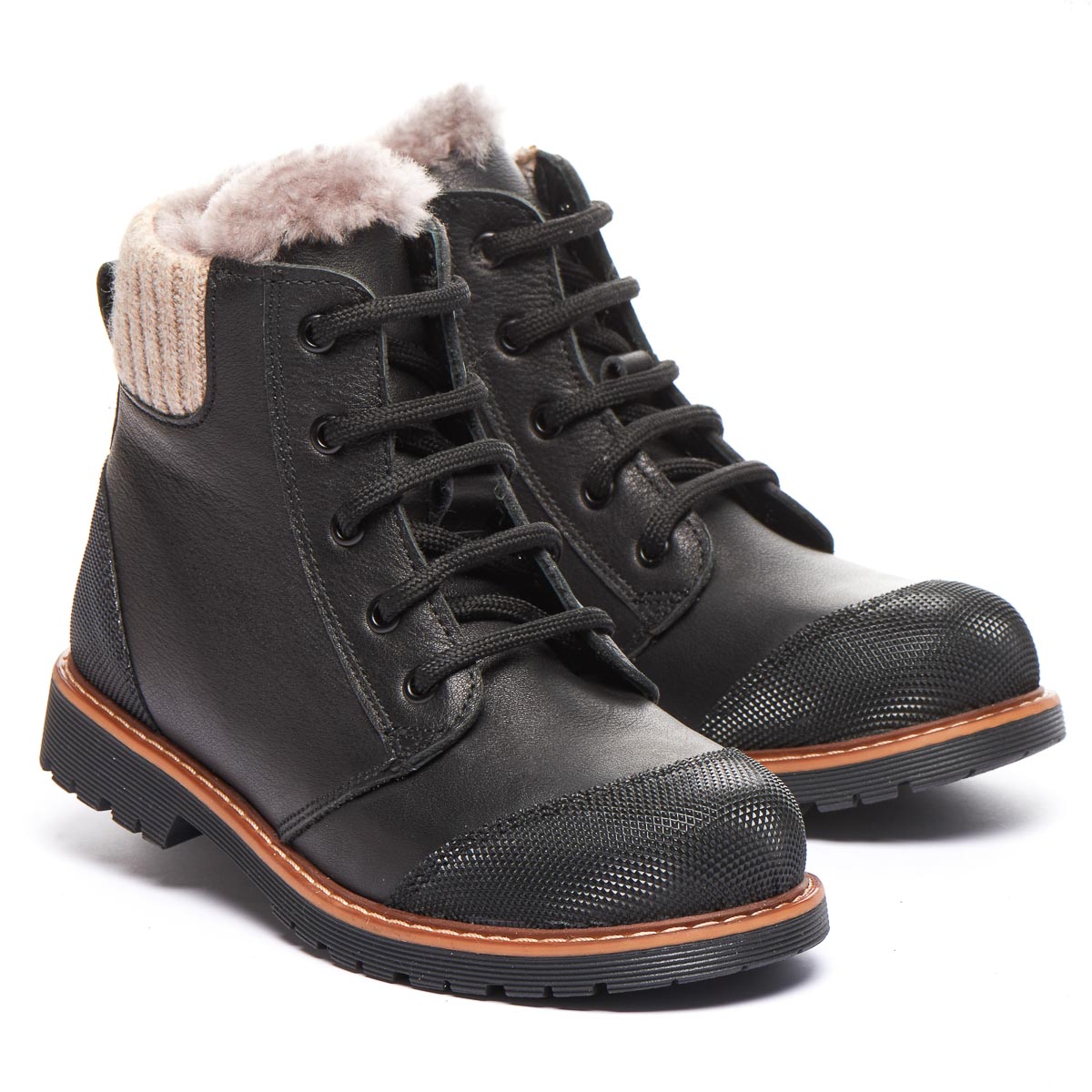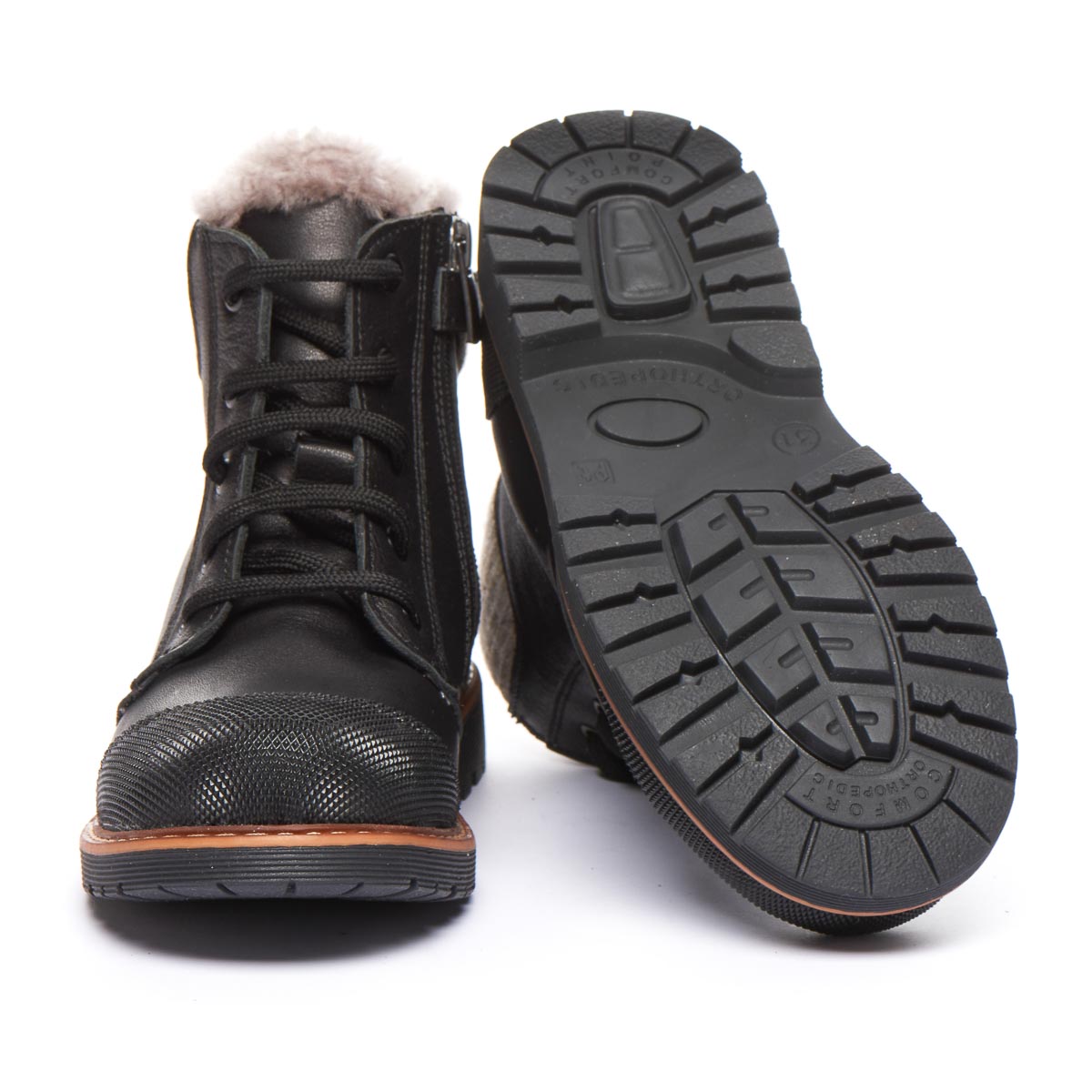 Зимові ортопедичні черевики виготовлені з натуральної шкіри, забезпечують ефективний захист від холоду завдяки утепленню з натурального хутра-цигейки. Черевики обладнані ортопедичними елементами, такими як жорсткий задник, каблук Томаса, змінна устілка з супінатором та широкий зручний носок, що сприяє правильному розвитку ніжок дитини. Підошва з термопластичної гуми з протектором гарантує надійне зчеплення з поверхнею, забезпечуючи стабільність і впевненість у кожному кроці. Завдяки шнурівці можна регулювати ширину черевиків, а блискавка дозволяє легко і швидко взуватися. Обирайте тепло, комфорт і користь для вашої дитини.