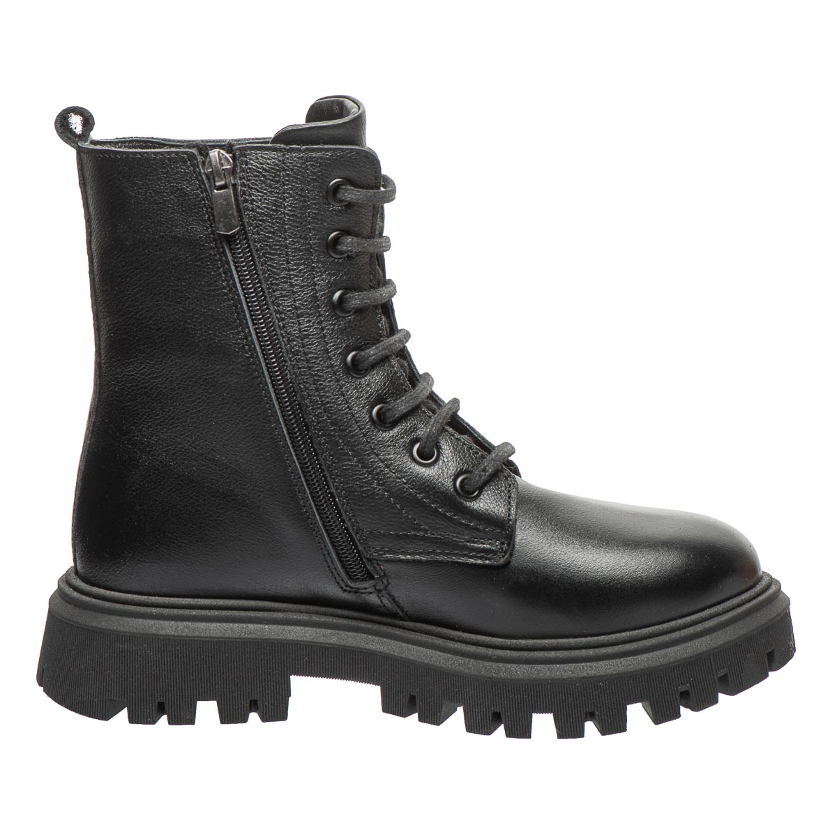 Зимові дитячі черевики, ідеальні як для хлопчиків, так і для дівчаток, мають стильний універсальний дизайн. Виготовлені з натуральної чорної шкіри, ці черевики забезпечують надійний захист від холоду завдяки утеплювачу з натурального хутра. Змінна устілка з супінатором підтримує правильний розвиток дитячих ніжок. Підошва з термопластичної гуми з протектором гарантує чудове зчеплення з будь-якою поверхнею. Шнурівка дозволяє відрегулювати ширину черевиків, а блискавка забезпечує зручність під час взування. Ця універсальна і тепла модель надійно захистить від морозів.