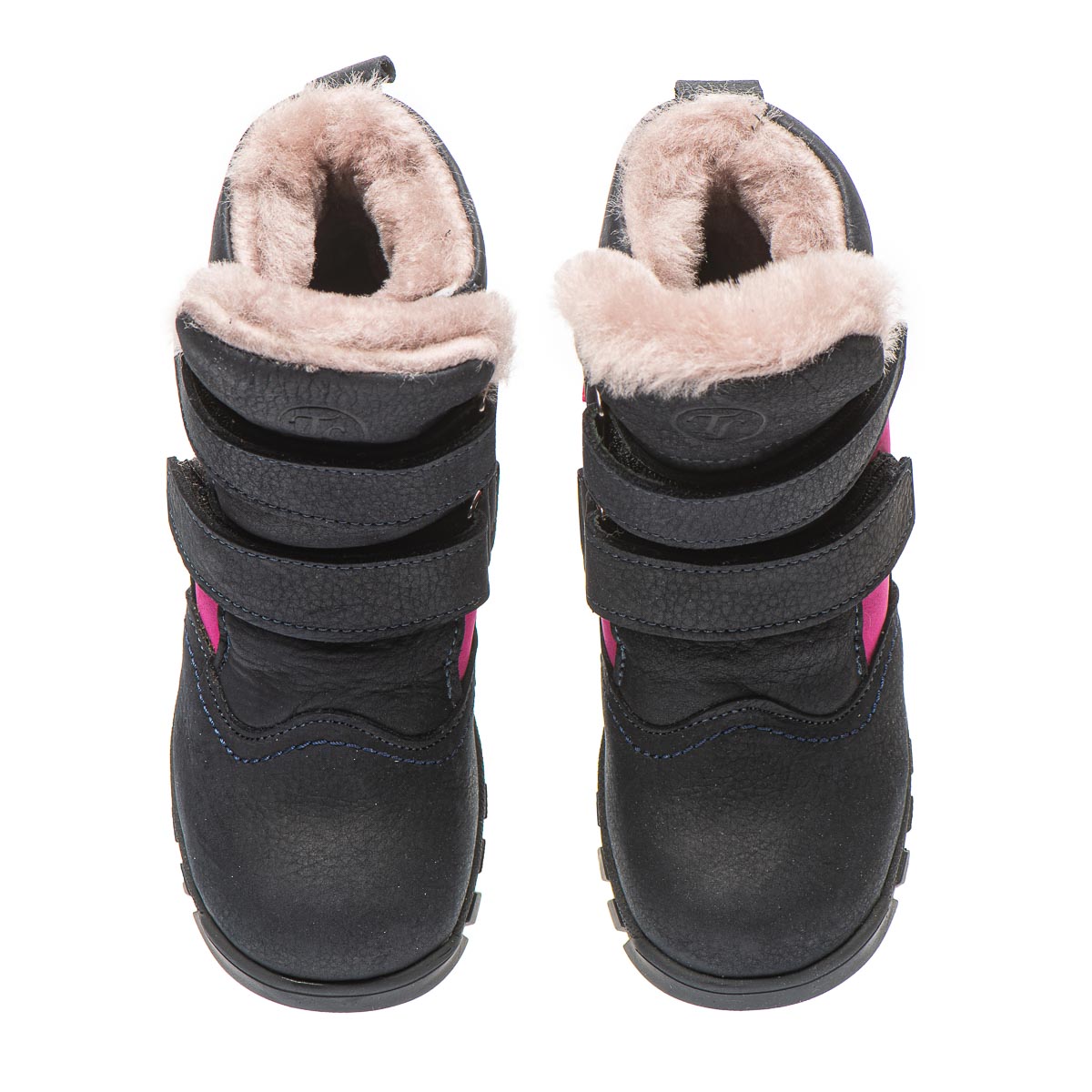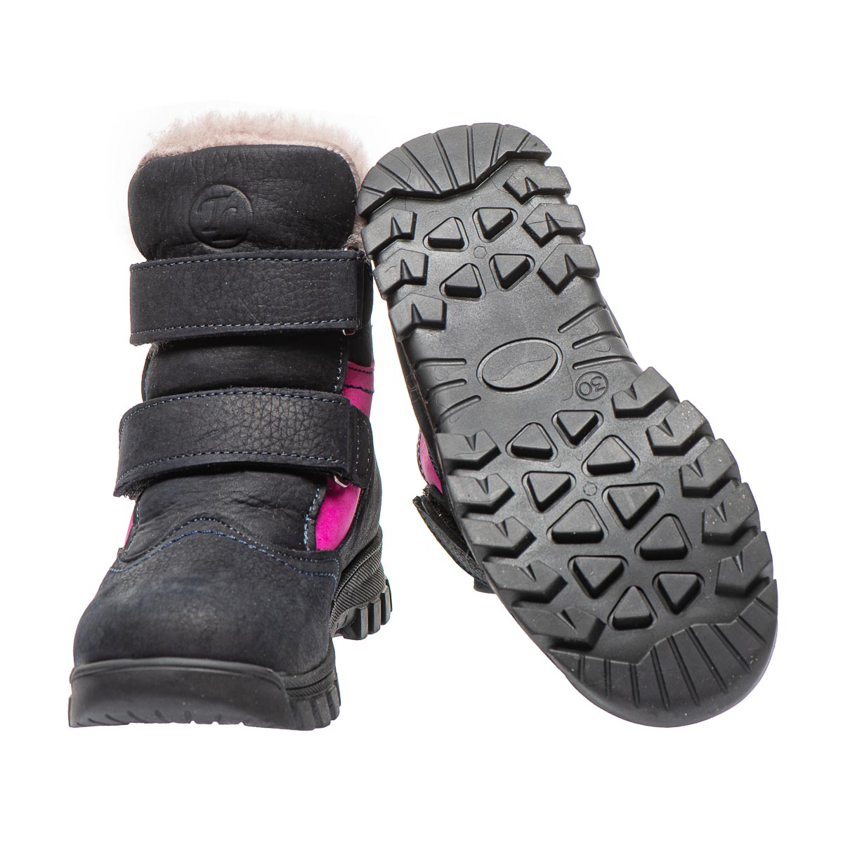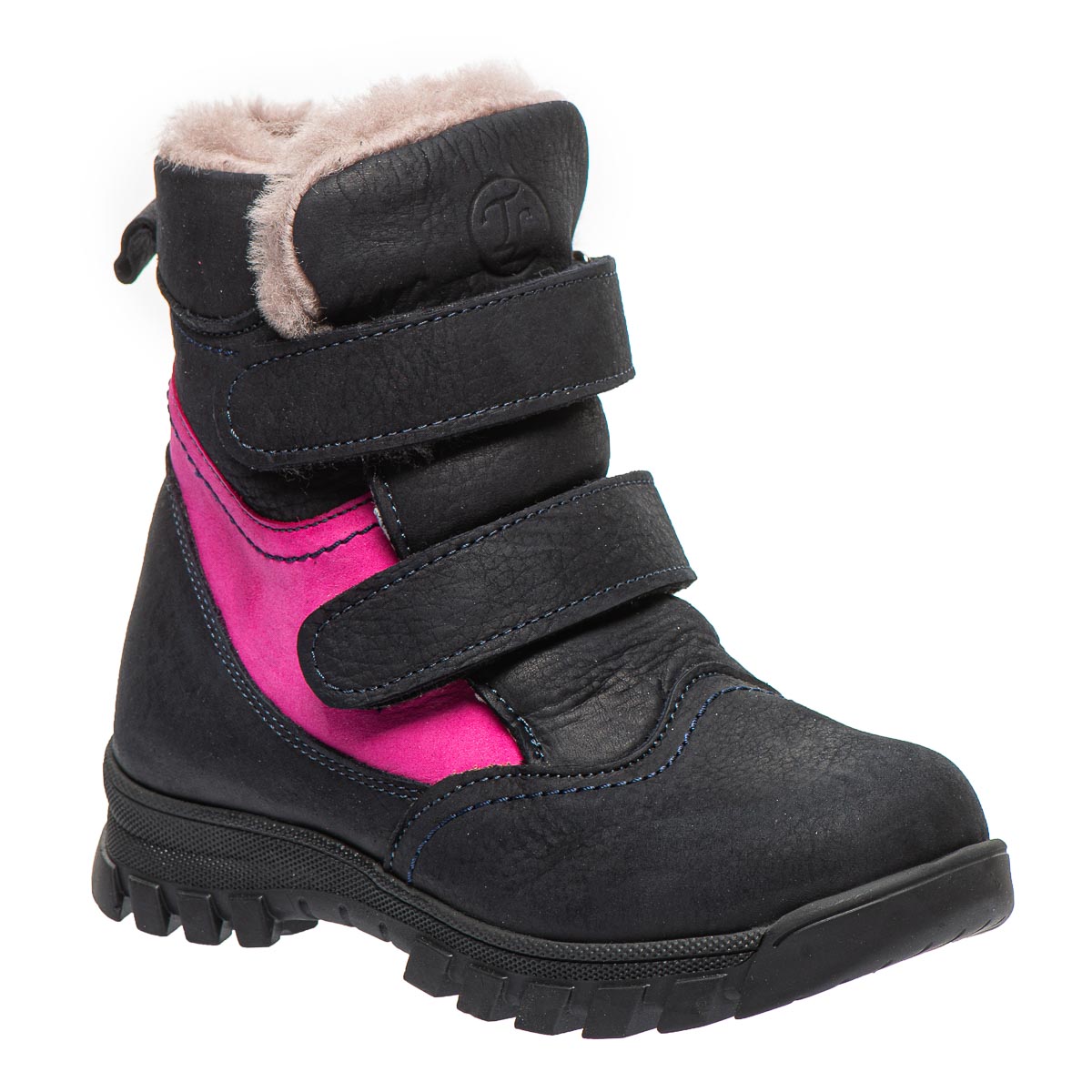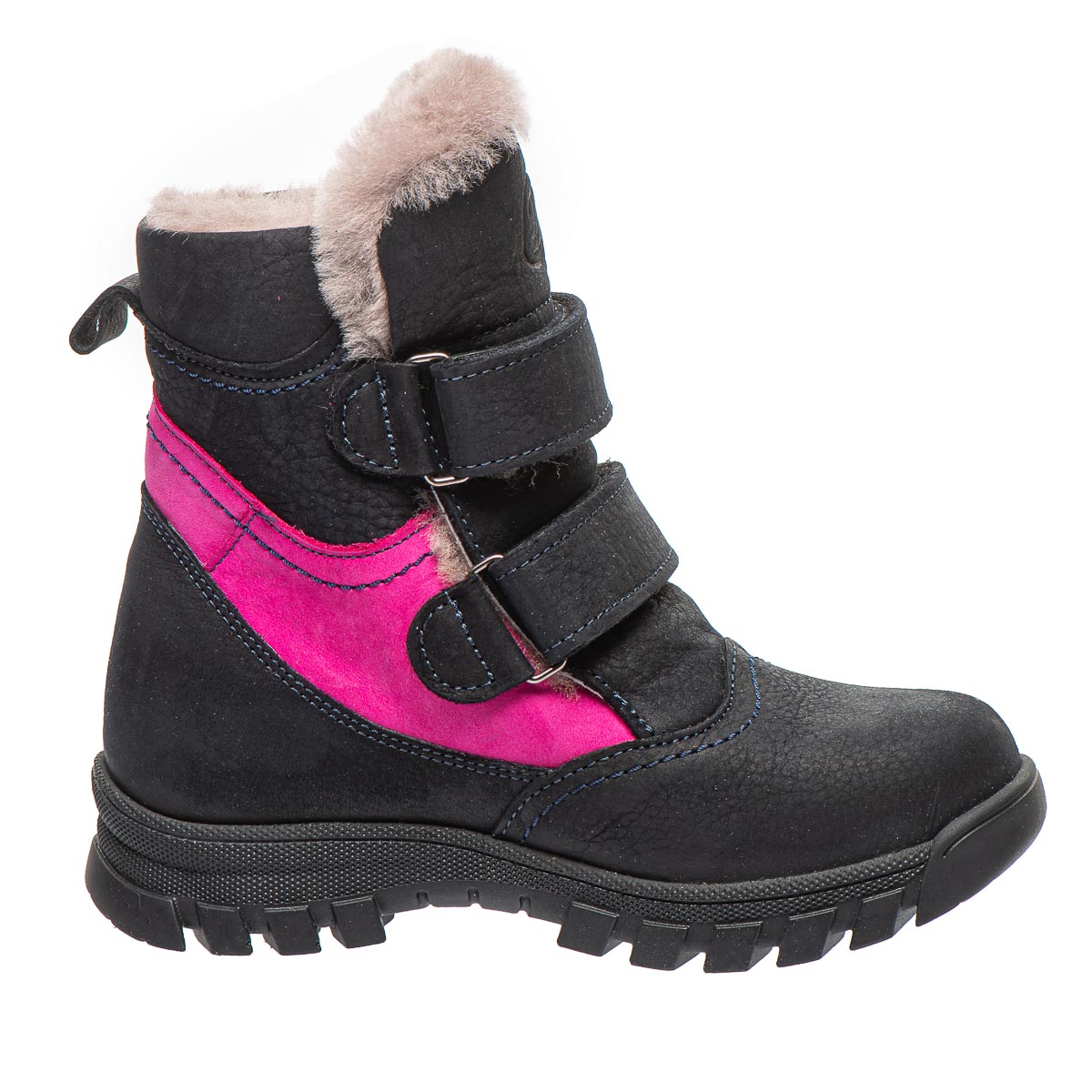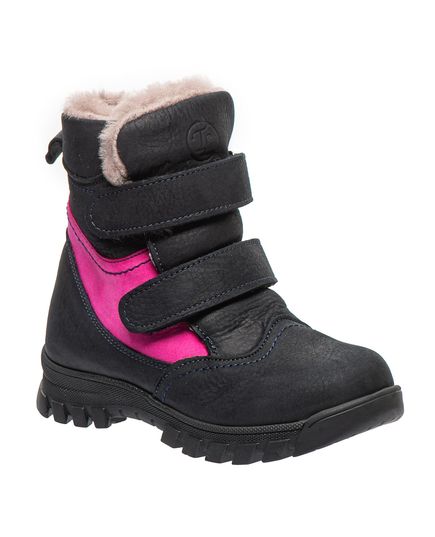 Дитячі зимові черевики для дівчинки, виготовлені з натуральної шкіри, внутрішня підкладка з 100% натурального хутра ніжного і м'якого на дотик, що забезпечує затишок і тепло, навіть у найсуворішу зимову погоду. Контрастне поєднання темно-синього з яскравими рожевими - додає оригінальності та робить черевики стильним елементом зимового гардеробу вашої дитини. Практичні липучки дозволяють швидко підігнати взуття під індивідуальні особливості ніжки. Устілка ортопедична з анатомічним супінатором. Підошва з термопластичної гуми, та з протектором. Ці черевики не просто стильне доповнення до зимового образу, а й надійний захист від холоду.