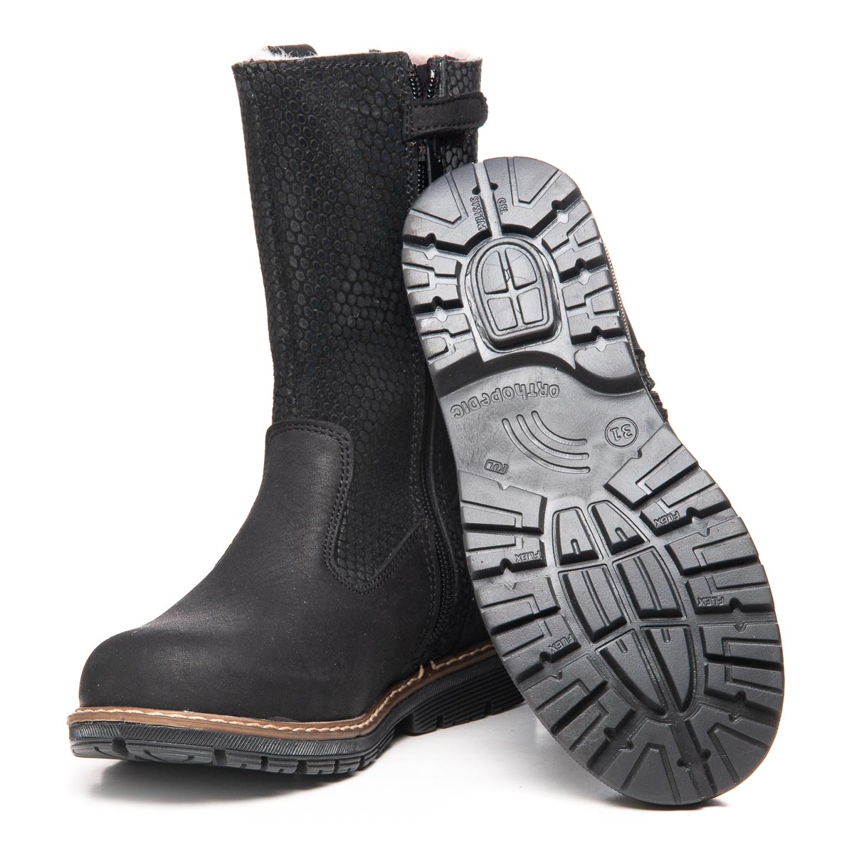 Наші зимові шкіряні чоботи для дівчат поєднують в собі класичну елегантність та теплий комфорт. Виготовлені з високоякісної шкіри та м'якого хутра, дозволяють вашій дитині почувати себе комфортно в холодну пору року. Чорний колір доповнює цю модель універсальністю, легко поєднуючись з будь яким стилем одягу. Ортопедична устілка з хутра забезпечує комфорт та тепло.
