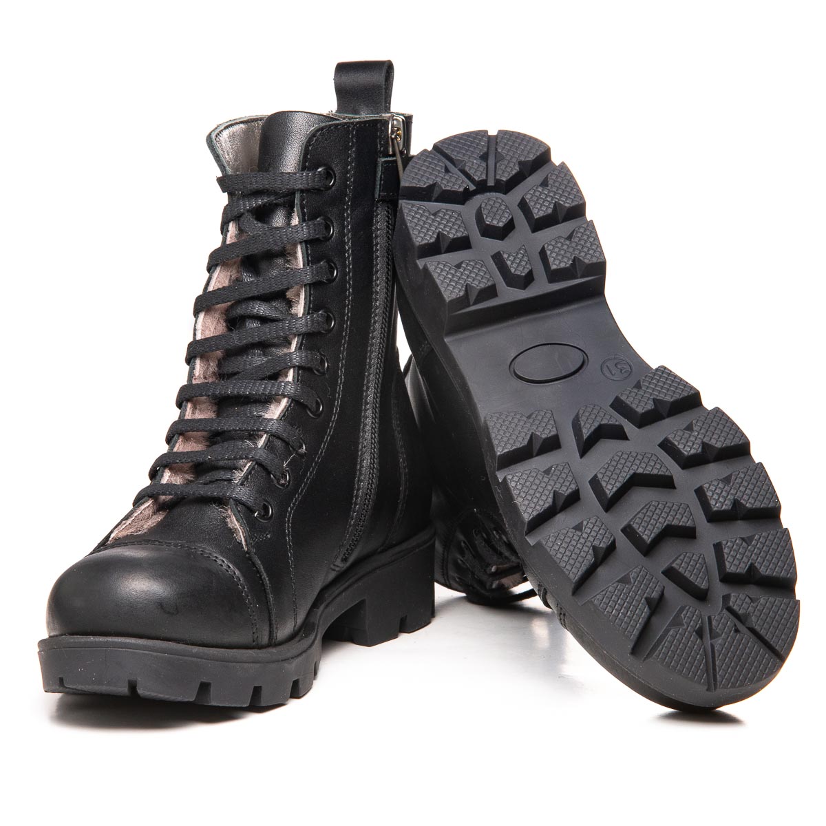 Зимние ботинки для девочки созданы из натуральной кожи. Модель имеет удобную молнию для быстрого обувания, декоративную шнуровку для стиля и адаптации. Внутренняя часть из натурального меха сохраняет тепло, а анатомическая стелька с супинатором поддерживает правильное формирование стопы. Подошва из термопластиковой резины гарантирует надежное сцепление и предотвращает скольжение. Идеальное сочетание стиля, комфорта и функциональности.