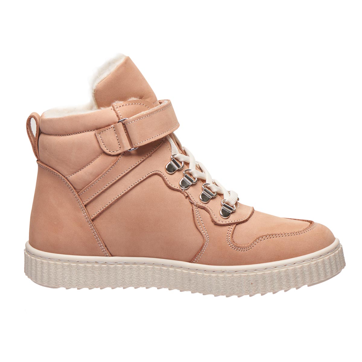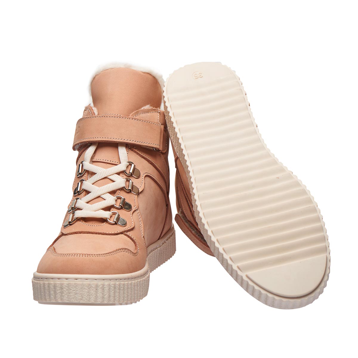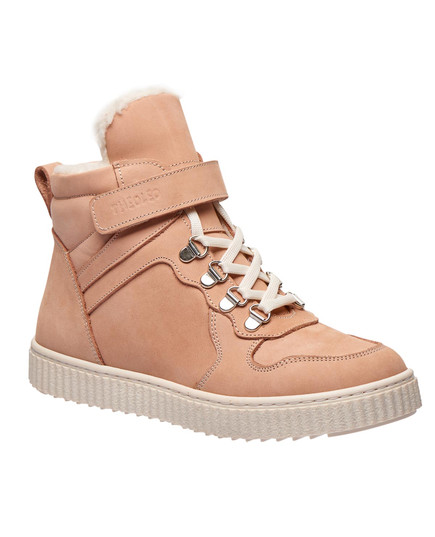 Зимние ботинки спортивного стиля для девочек в изысканном пудровом оттенке. Изготовленные из натурального нубука, они дарят максимальное тепло благодаря утеплению из натуральной шерсти. Модель имеет твердый задник и стельку с анатомическим супинатором. Благодаря шнуровке и липучке легко регулируется полнота и обеспечивается надежная фиксация ножки. Прекрасный выбор для юных модниц, которые стремятся сочетать удобство с модным видом.